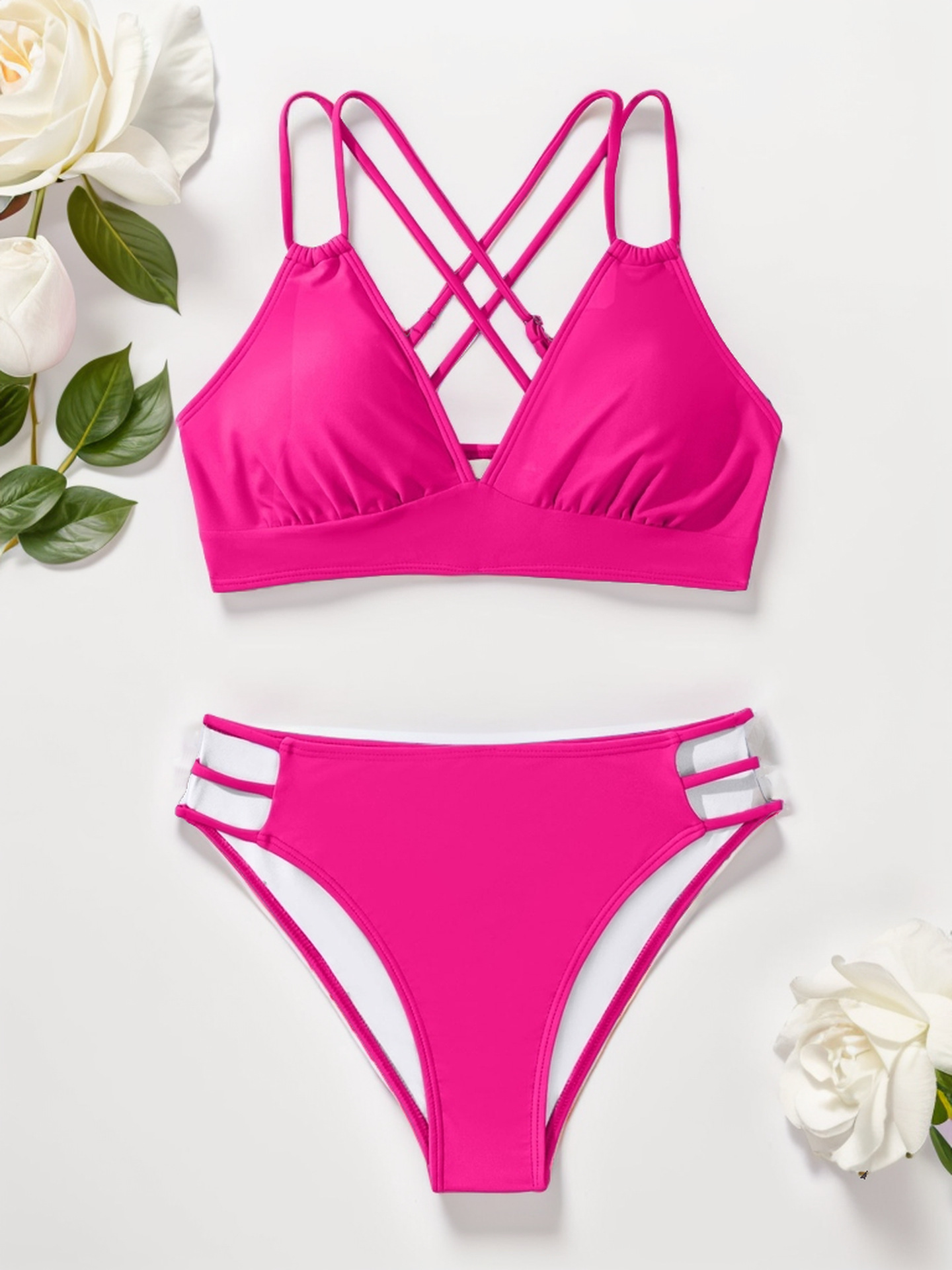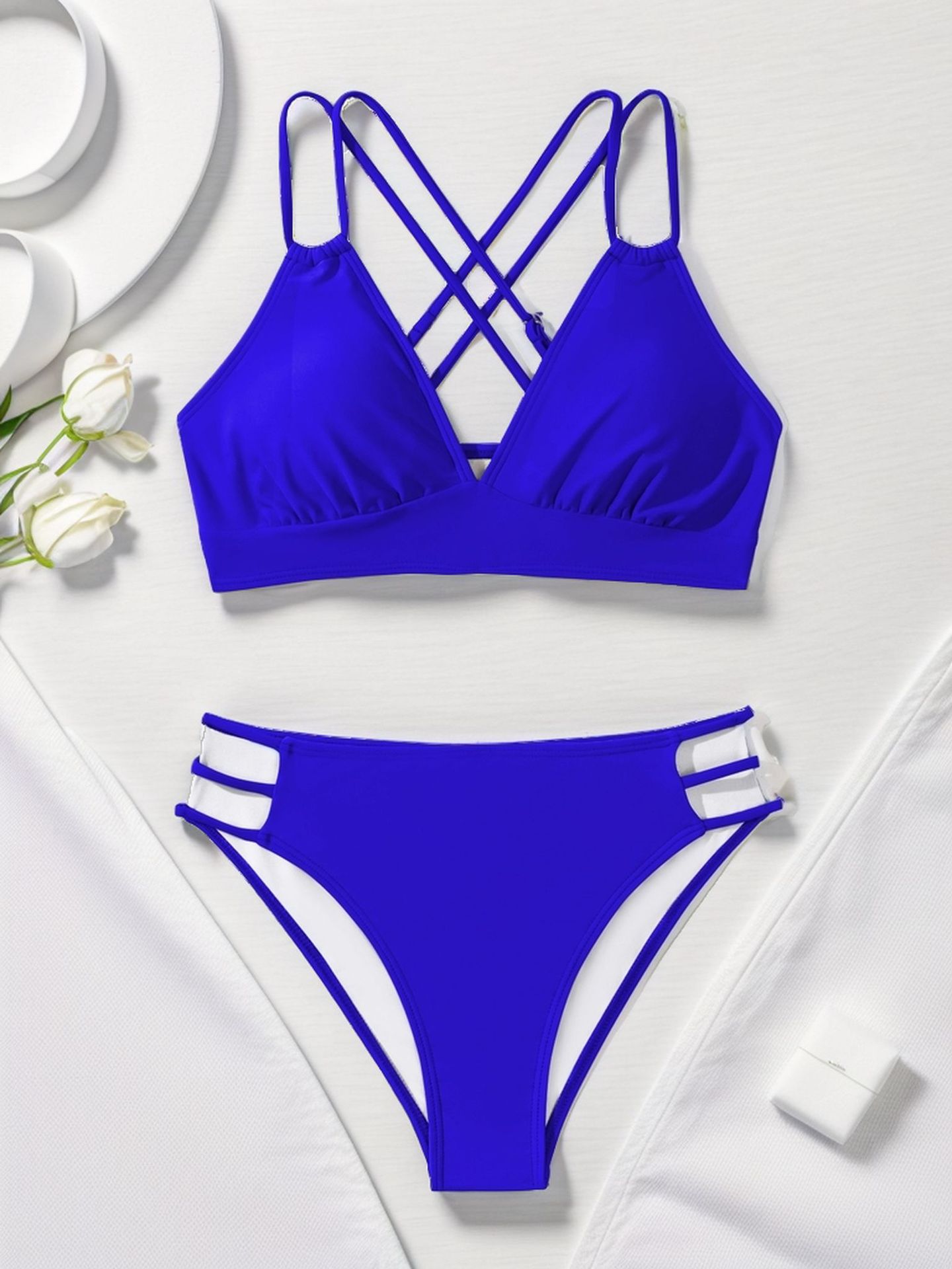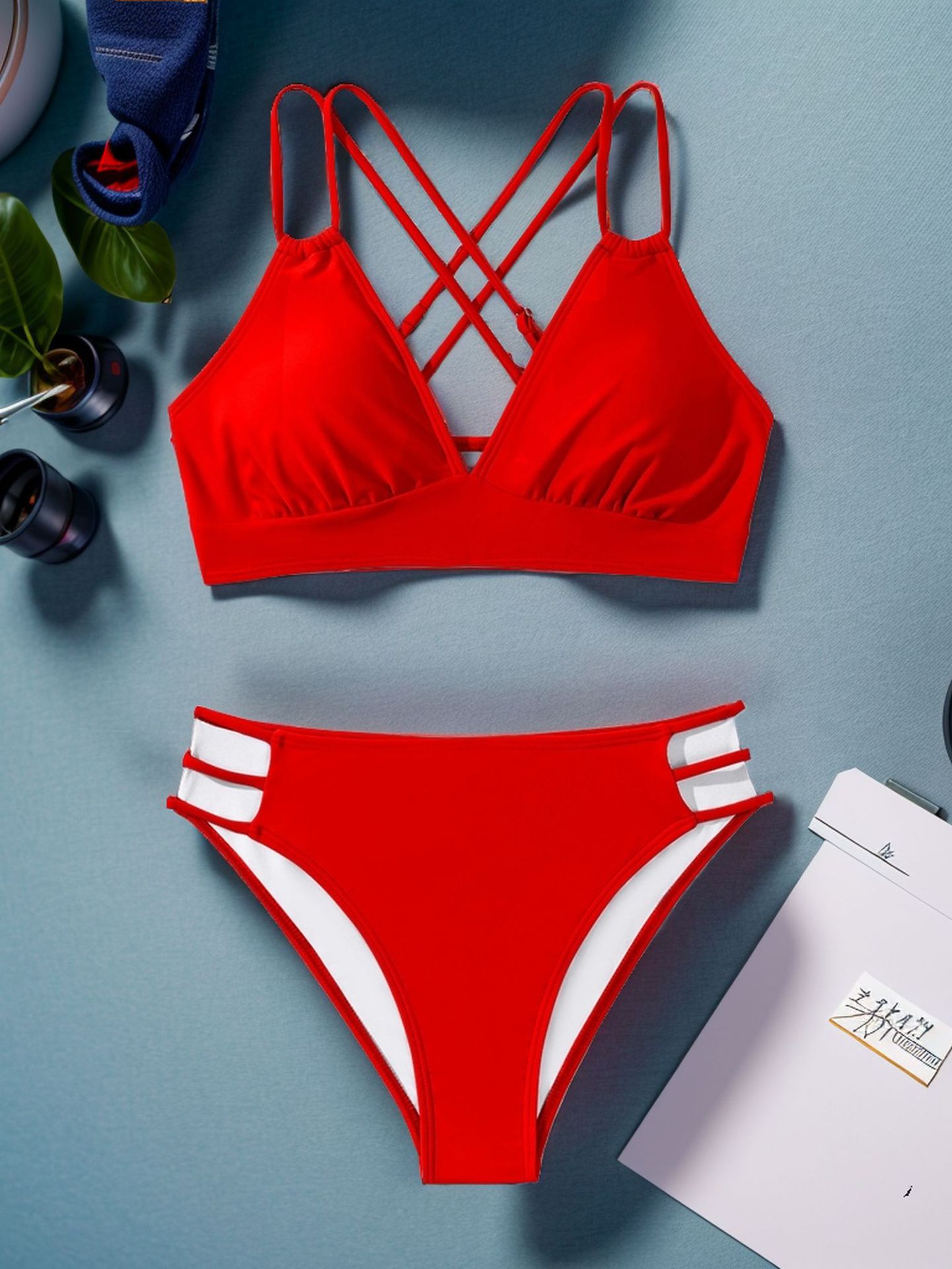 2024 국경 유럽 및 미국 대외 무역 새로운 비키니 단색 V 넥 섹시 비키니 분할 여성 수영복 수영복