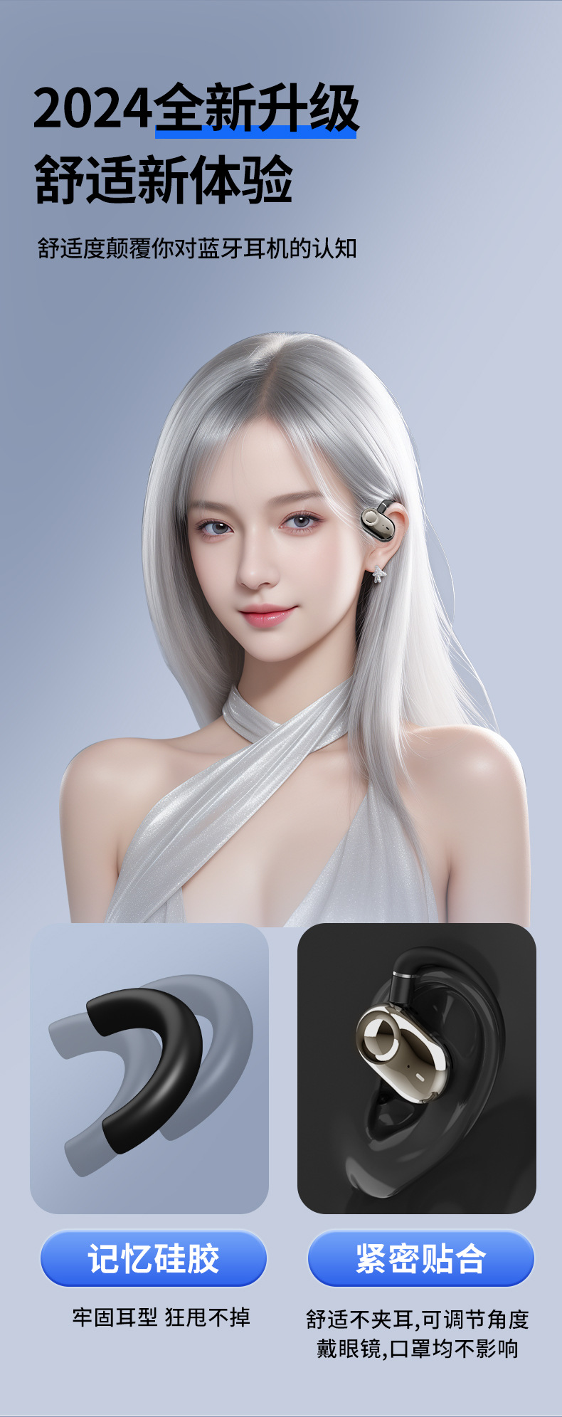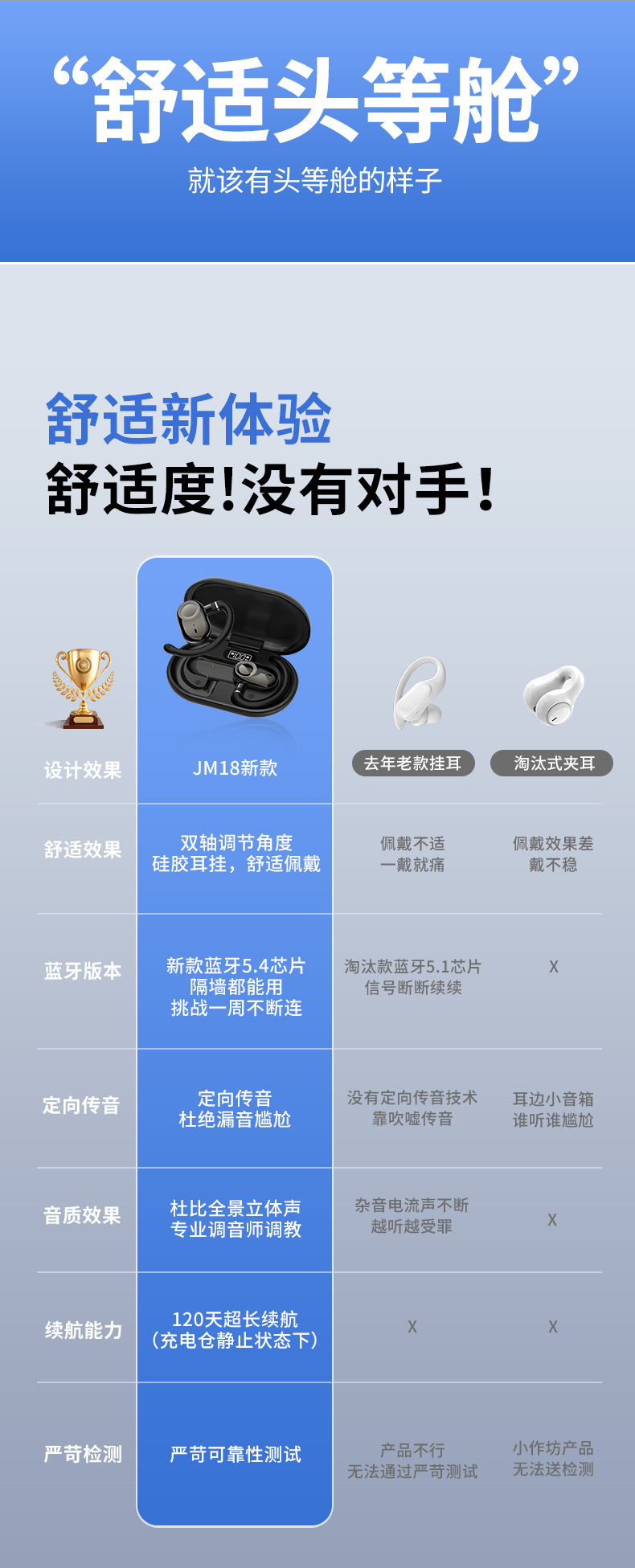새로운 JM18 OWS 블루투스 헤드셋 왼쪽과 오른쪽 착용 회전 무선 스포츠 오픈 이어 교수형 귀 소음 감소스토어 가기