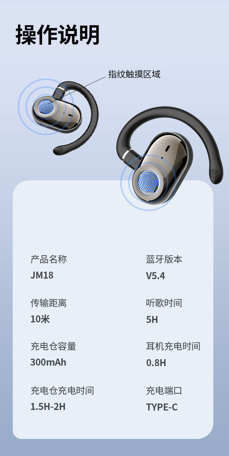 새로운 JM18 OWS 블루투스 헤드셋 왼쪽과 오른쪽 착용 회전 무선 스포츠 오픈 이어 교수형 귀 소음 감소
