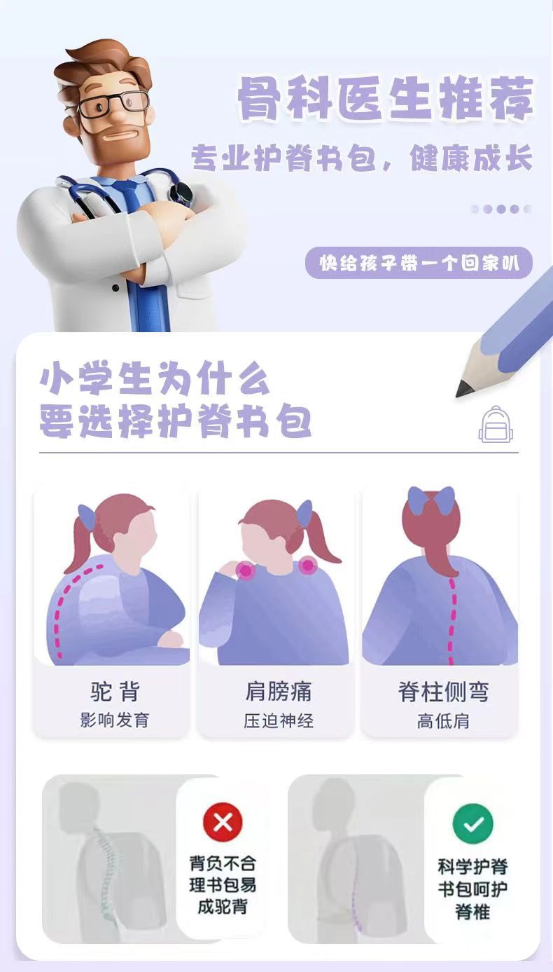 옥향견 척추보호 여아 책가방 초등학생 1~6학년 어린이 남아 백팩 야간 반사 기능