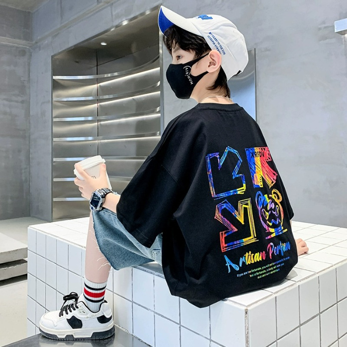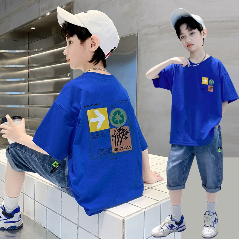 남아 반팔 티셔츠 아동 여름옷 패션 2025 여름 신상 남아 순면 트렌디 반팔 중대형 아동용스토어 가기