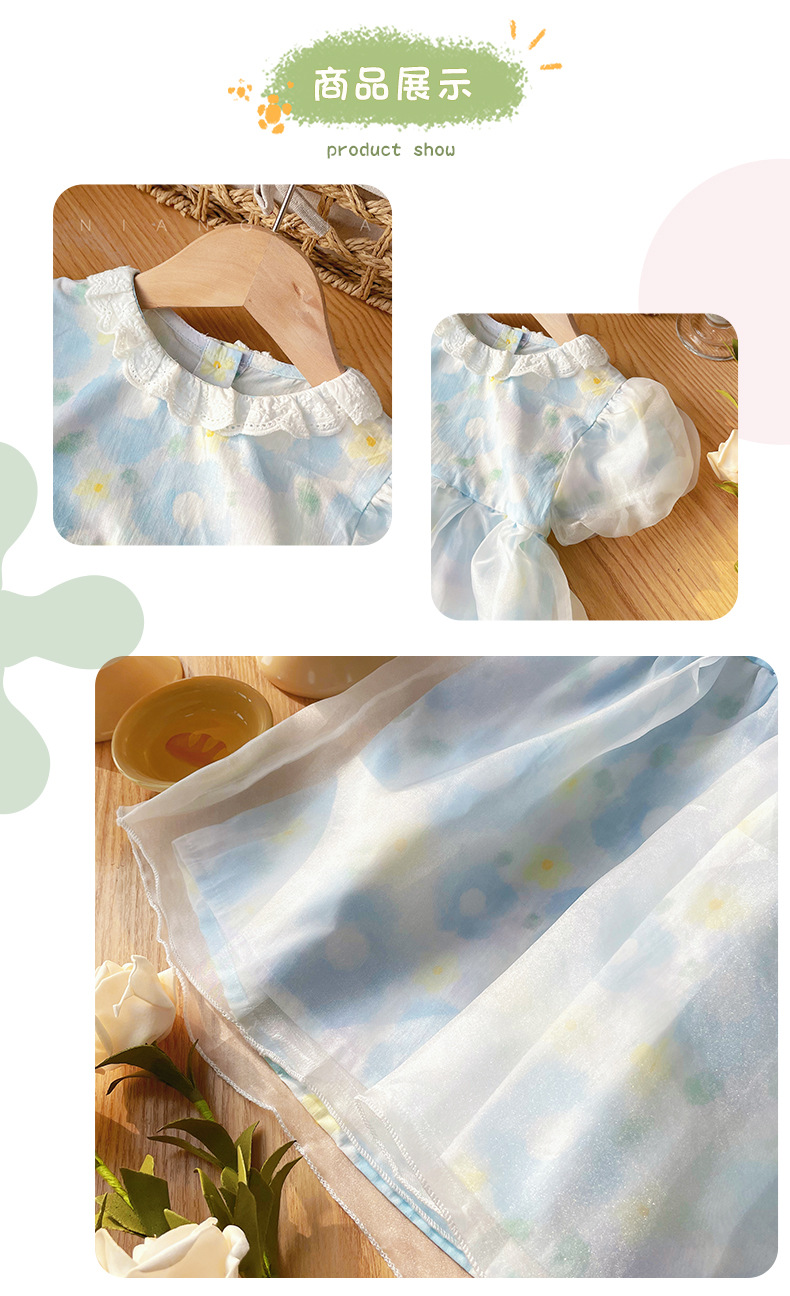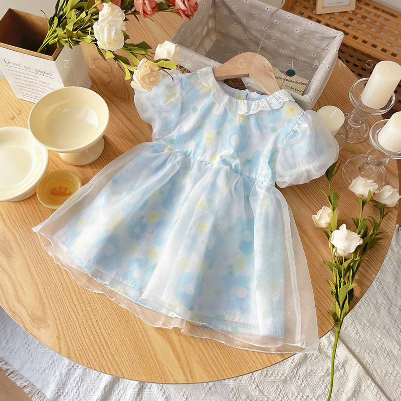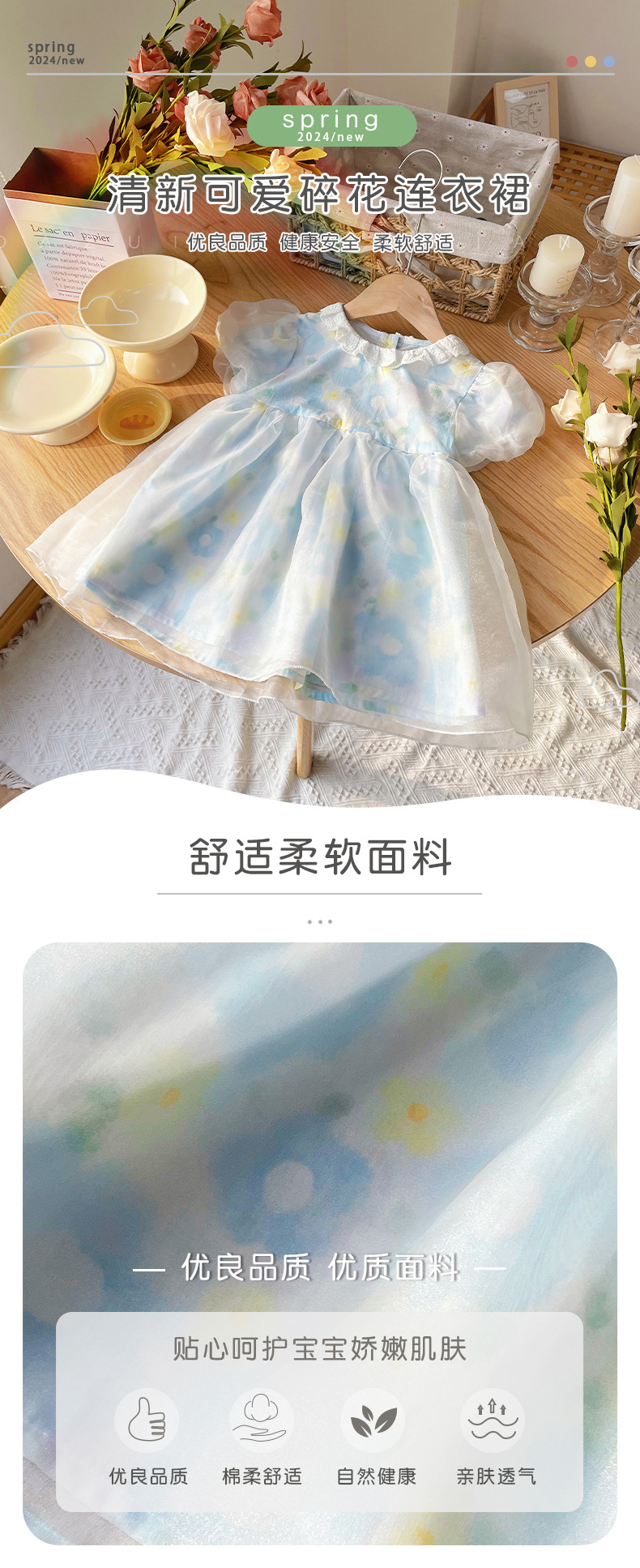여자 원피스 2024 여름 새로운 어린이 공주 원피스 달콤한 레이스 아기 메쉬 원피스 꽃 원피스스토어 가기