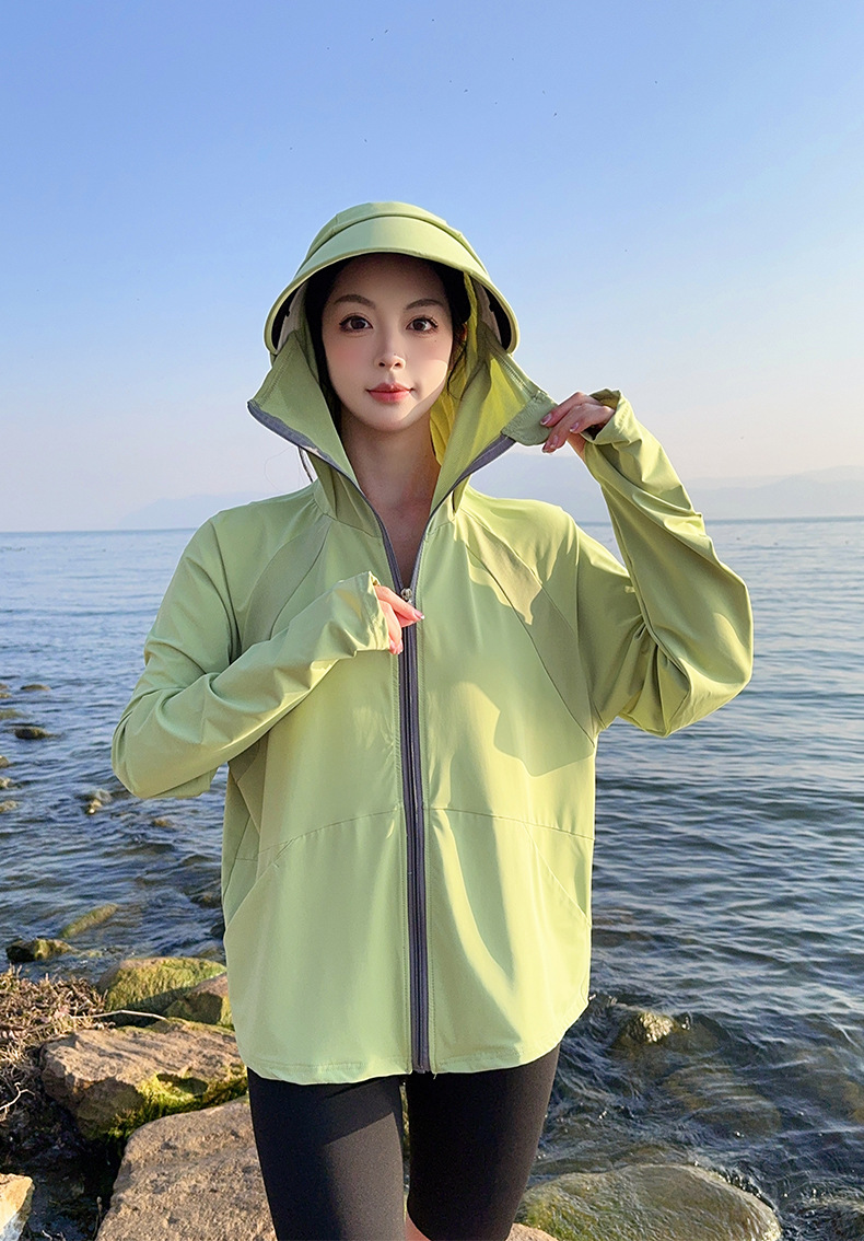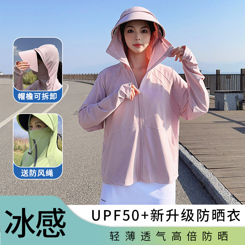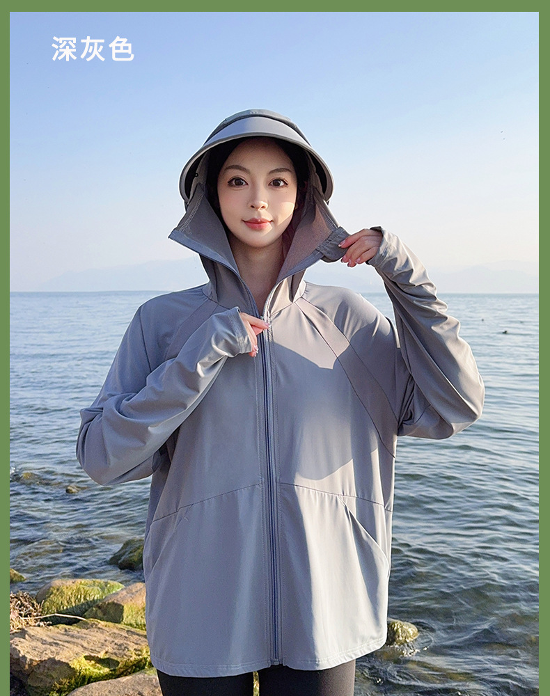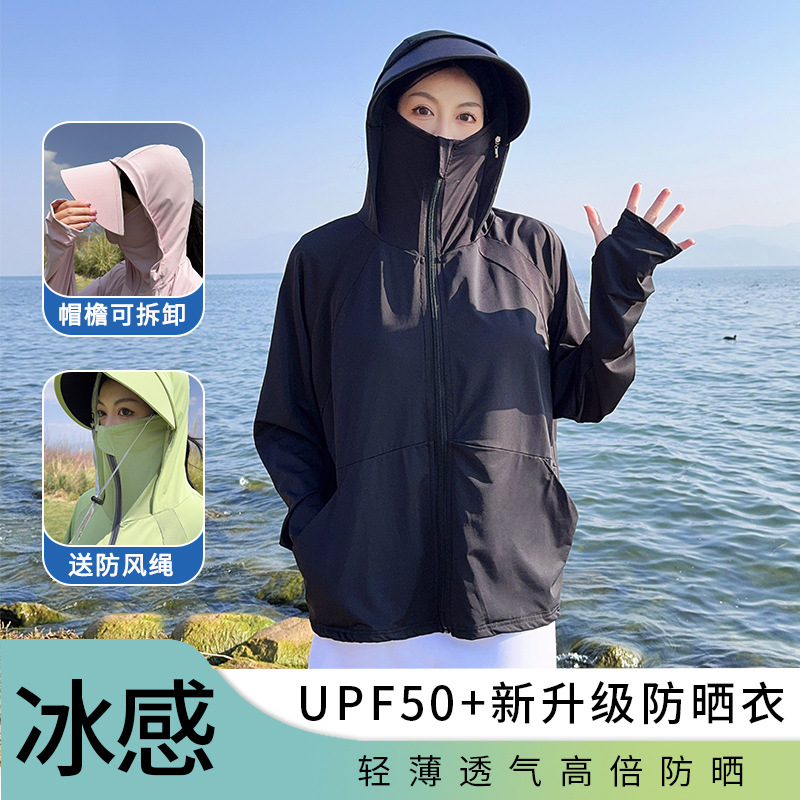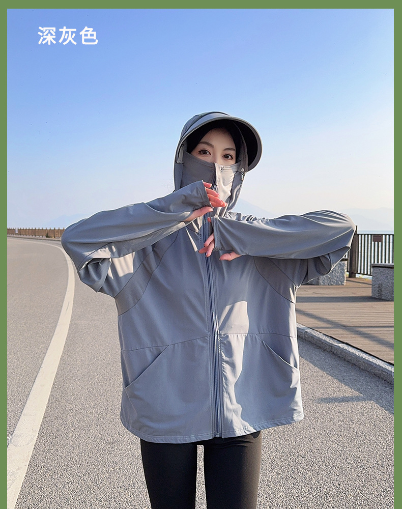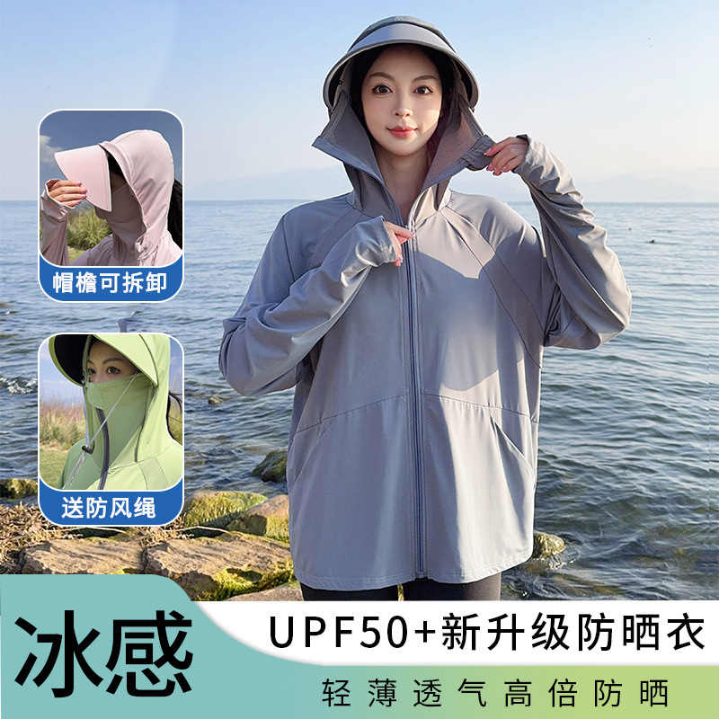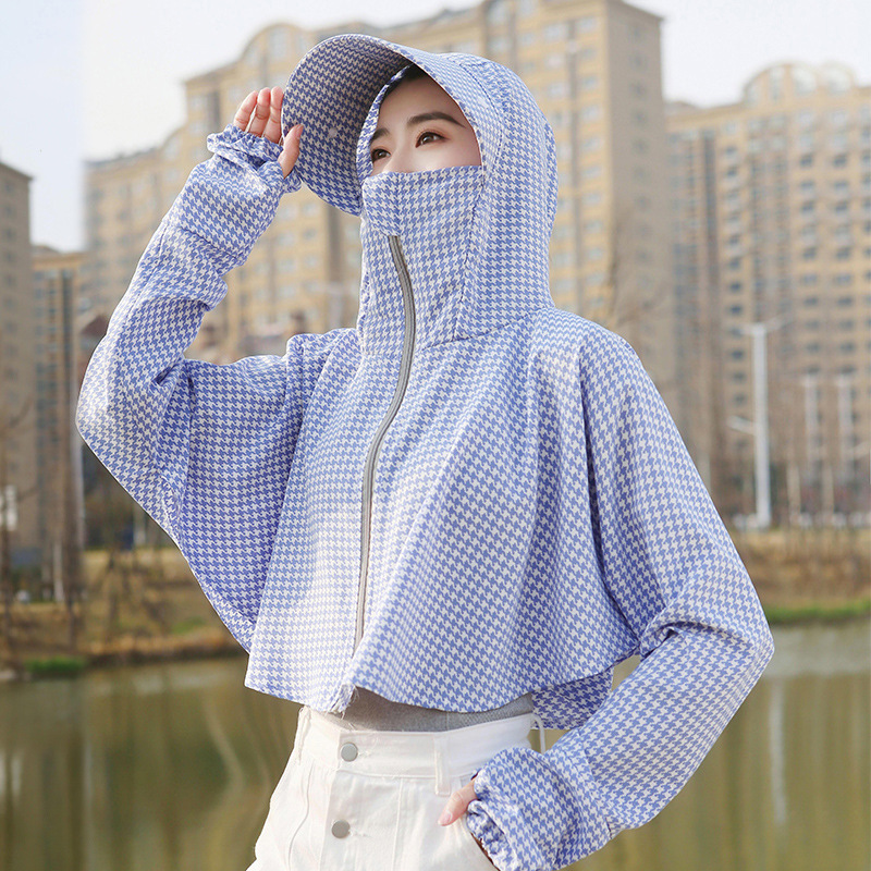 목도리 태양 보호 옷 여성의 봄과 여름 코트 UV 보호 피부 옷 느슨한 짧은 2024 새로운 사이클링 운전