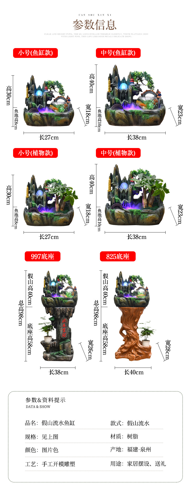 물고기 탱크 거실 바위 물놀이 장식품 고산 순환 흐름 운을 만드는 풍수 바퀴 작은 물바퀴 회전 공 운을 만드는 분수