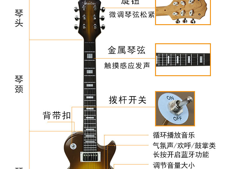 • 시뮬레이션 일렉트릭 기타 [블루투스] 터치 스트링 유도 음악/블루투스와 다기능