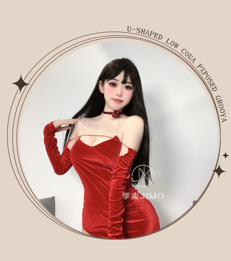 새로운 벨벳 레드 체인 백리스 스플릿 힙합 스커트 순수 섹스 언더웨어 여성을위한 고급 스플릿 슬립 스커트