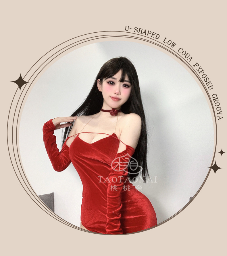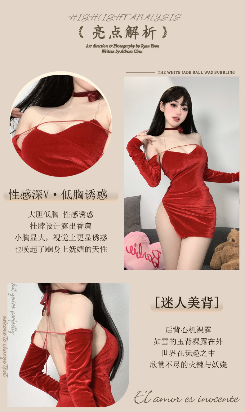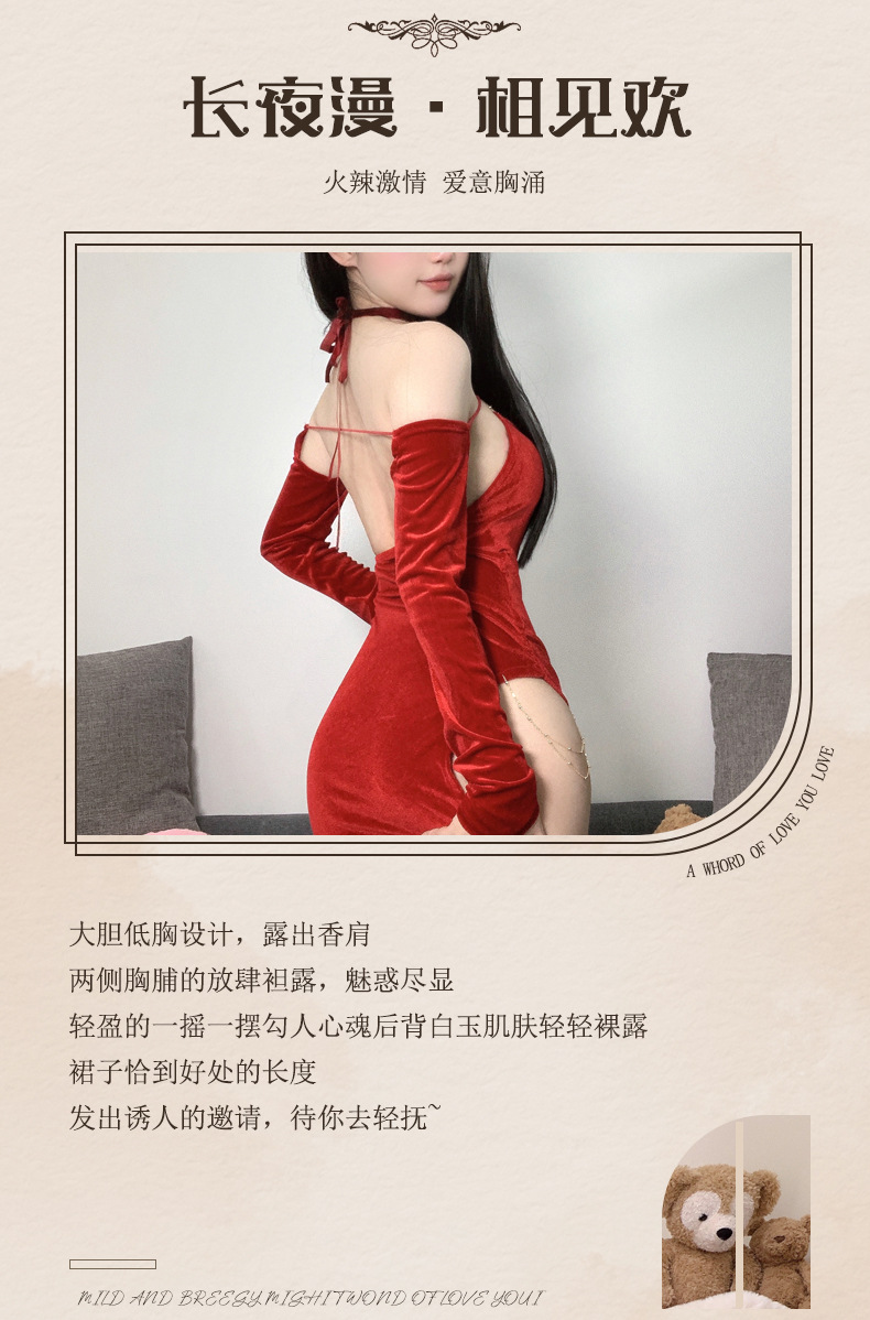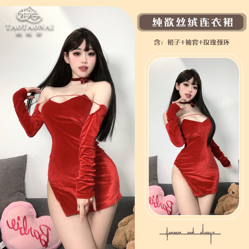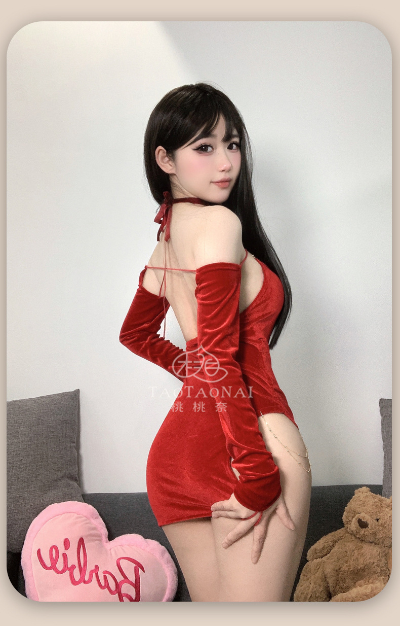 Taitao Nai 새로운 레드 벨벳 원피스 여성용 백리스 스플릿 퓨어 섹시 란제리 세트스토어 가기