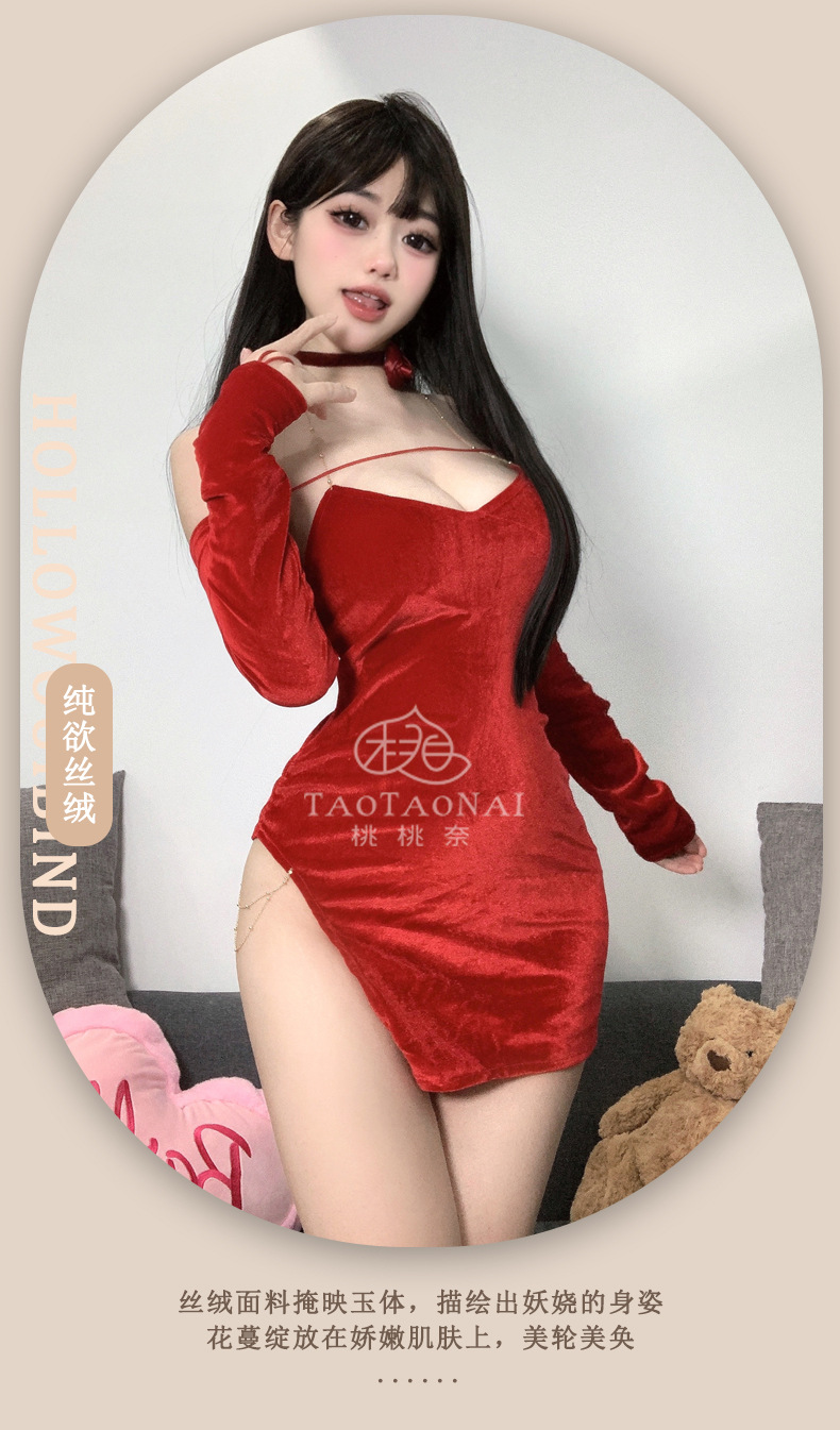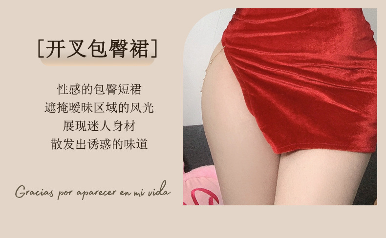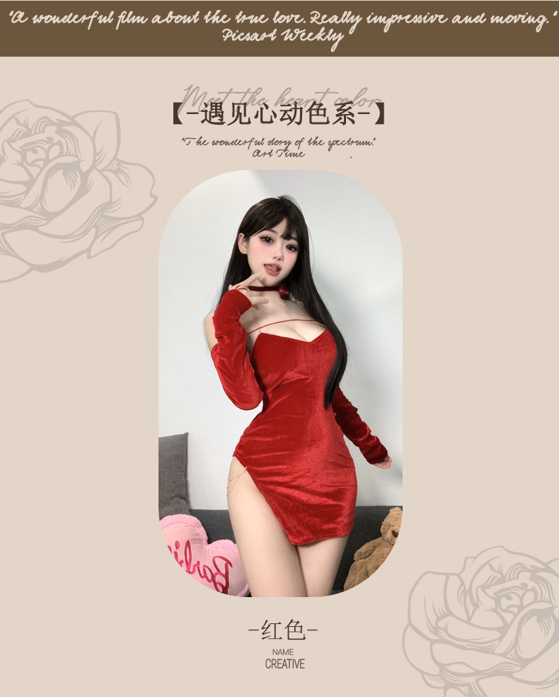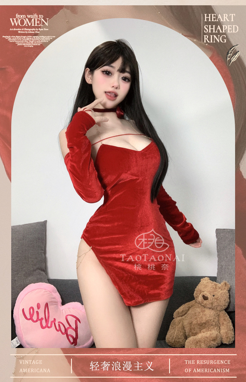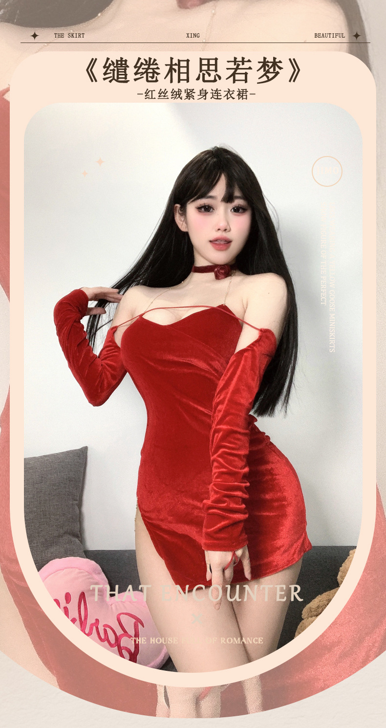 Taitao Nai 새로운 레드 벨벳 원피스 여성용 백리스 스플릿 퓨어 섹시 란제리 세트스토어 가기