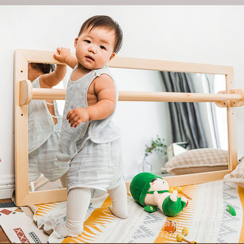 나무인지 거울 어린이 탐사 거울 조정 가능한 높이 아기 몬테소리 유치원 조기 교육 유아 거울스토어 가기