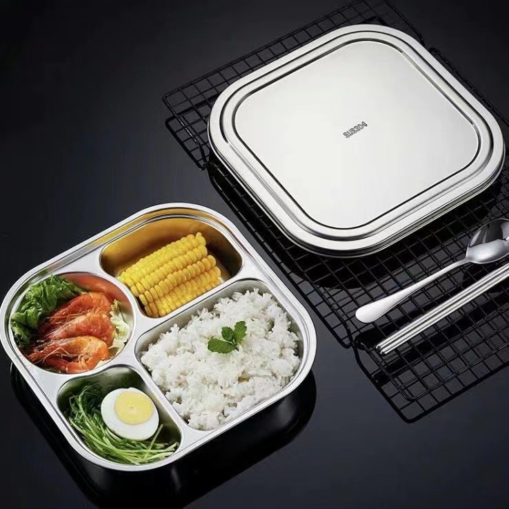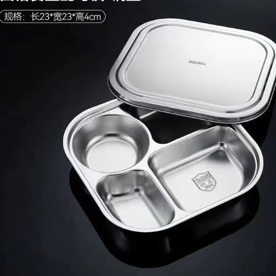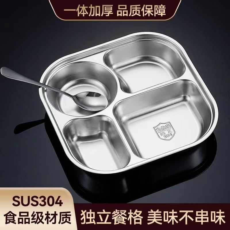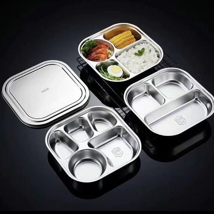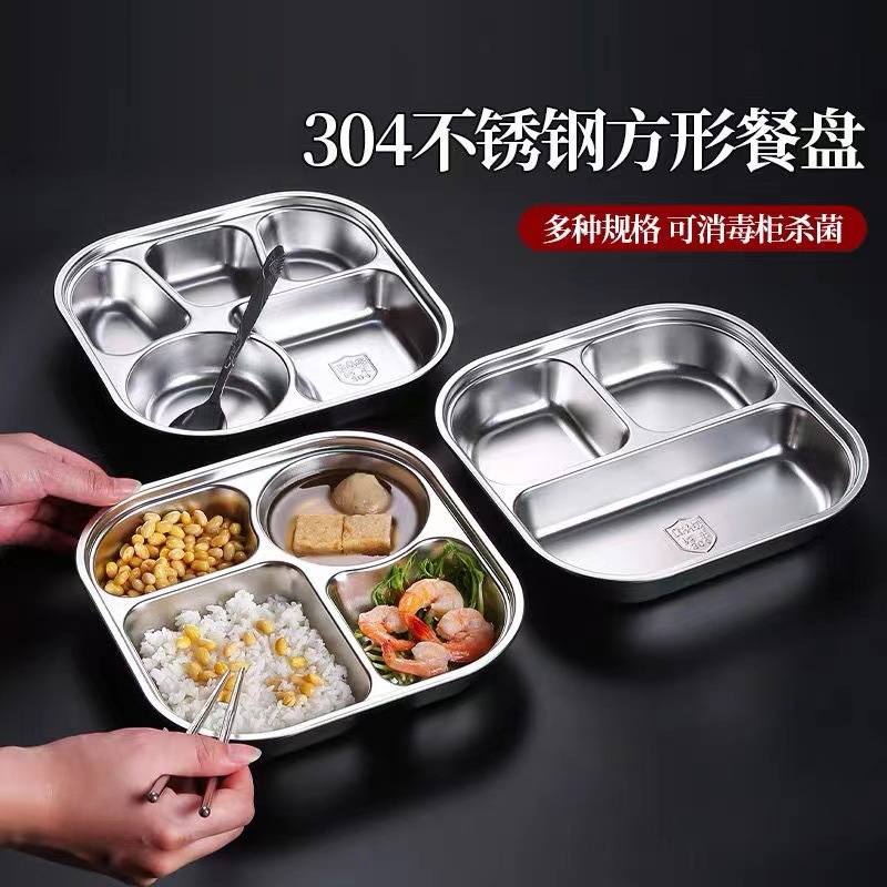 304 식품 학년 스테인레스 스틸 디너 플레이트 성인 3 칸 직원 도시락 학교 학생을위한 음식 접시 패스트 푸드 플레이트스토어 가기