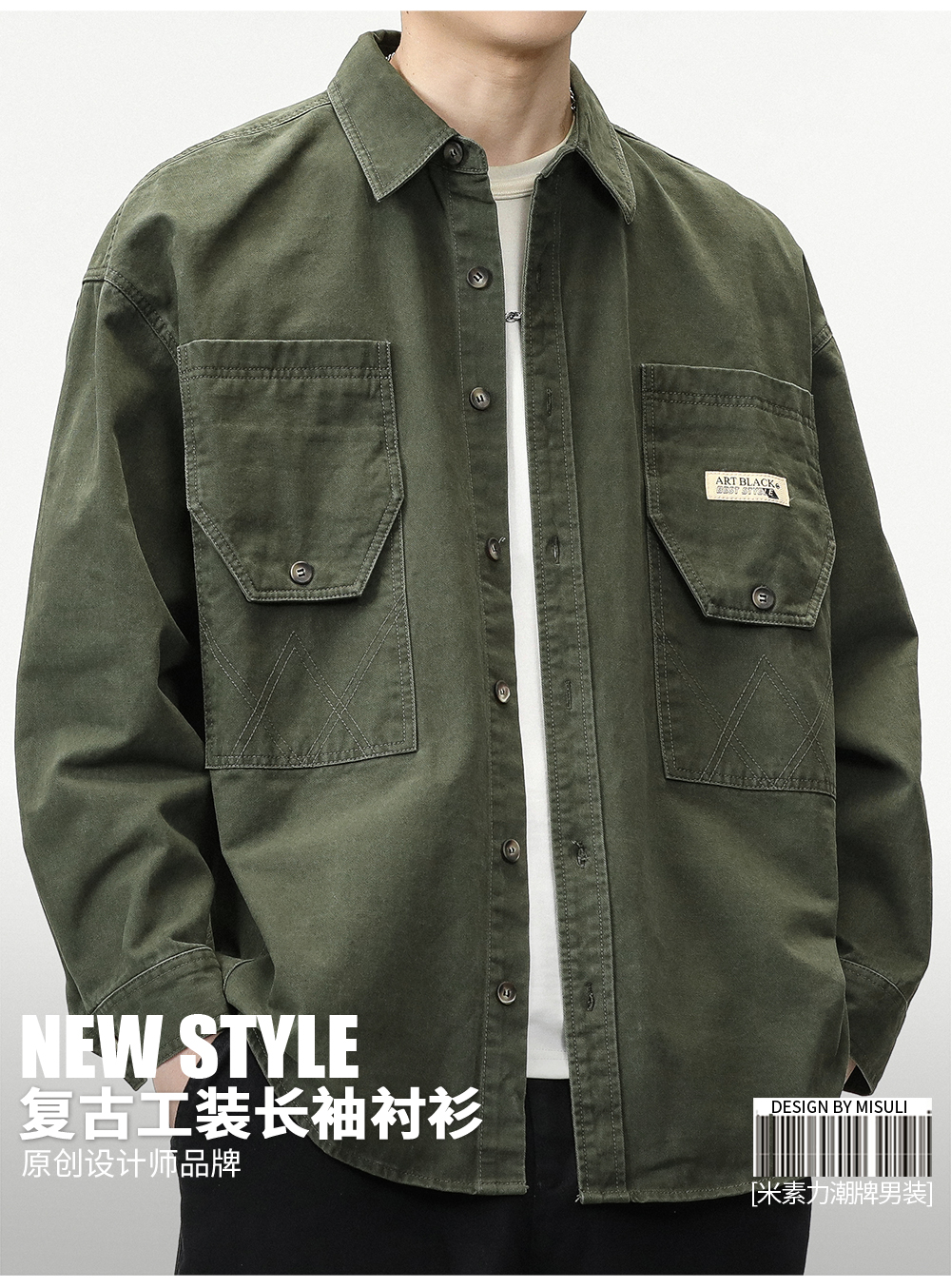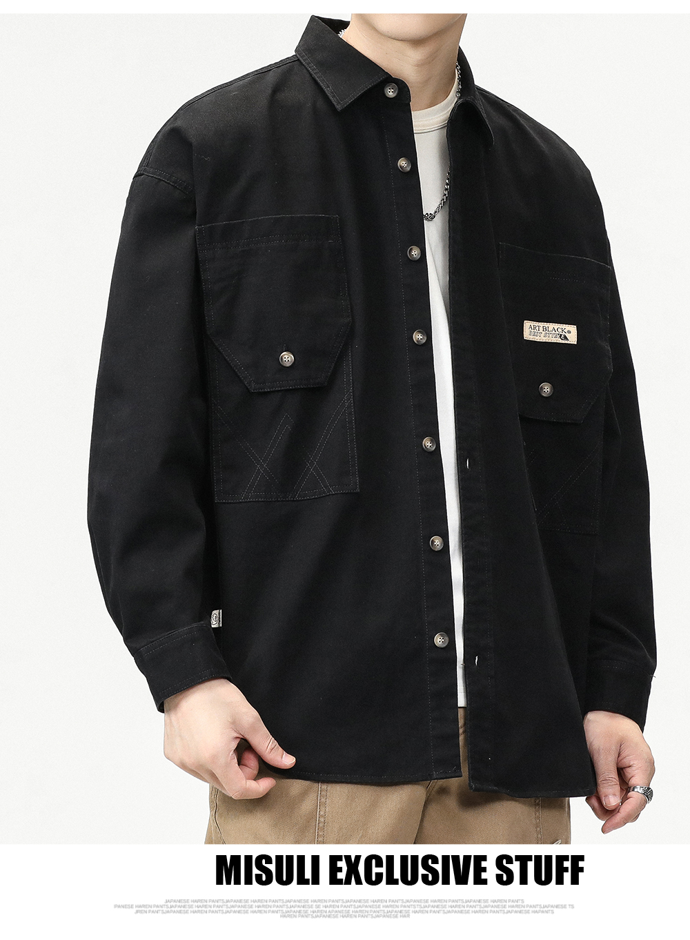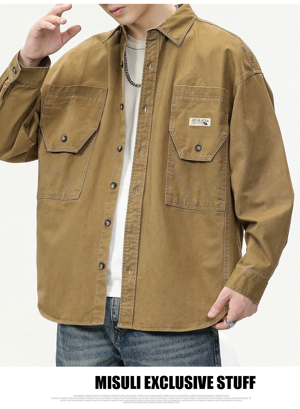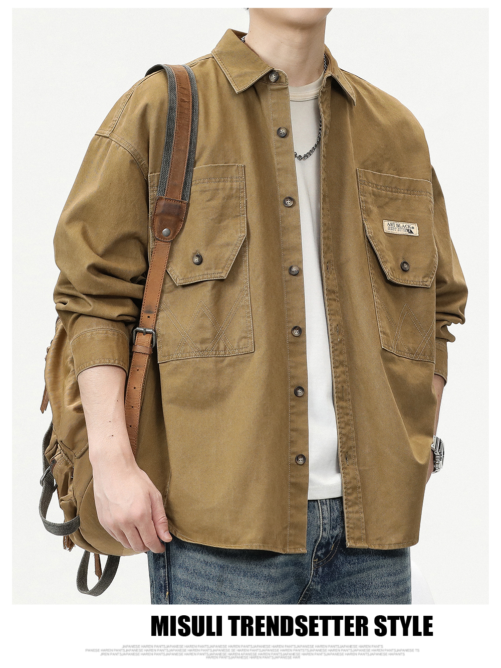 트렌디 한 브랜드 크록 셔츠 남자의 가을 새로운 스타일 유행 잘 생긴 캐주얼 느슨한 재킷 코트 일본 스타일 옷깃 빈티지 탑스토어 가기