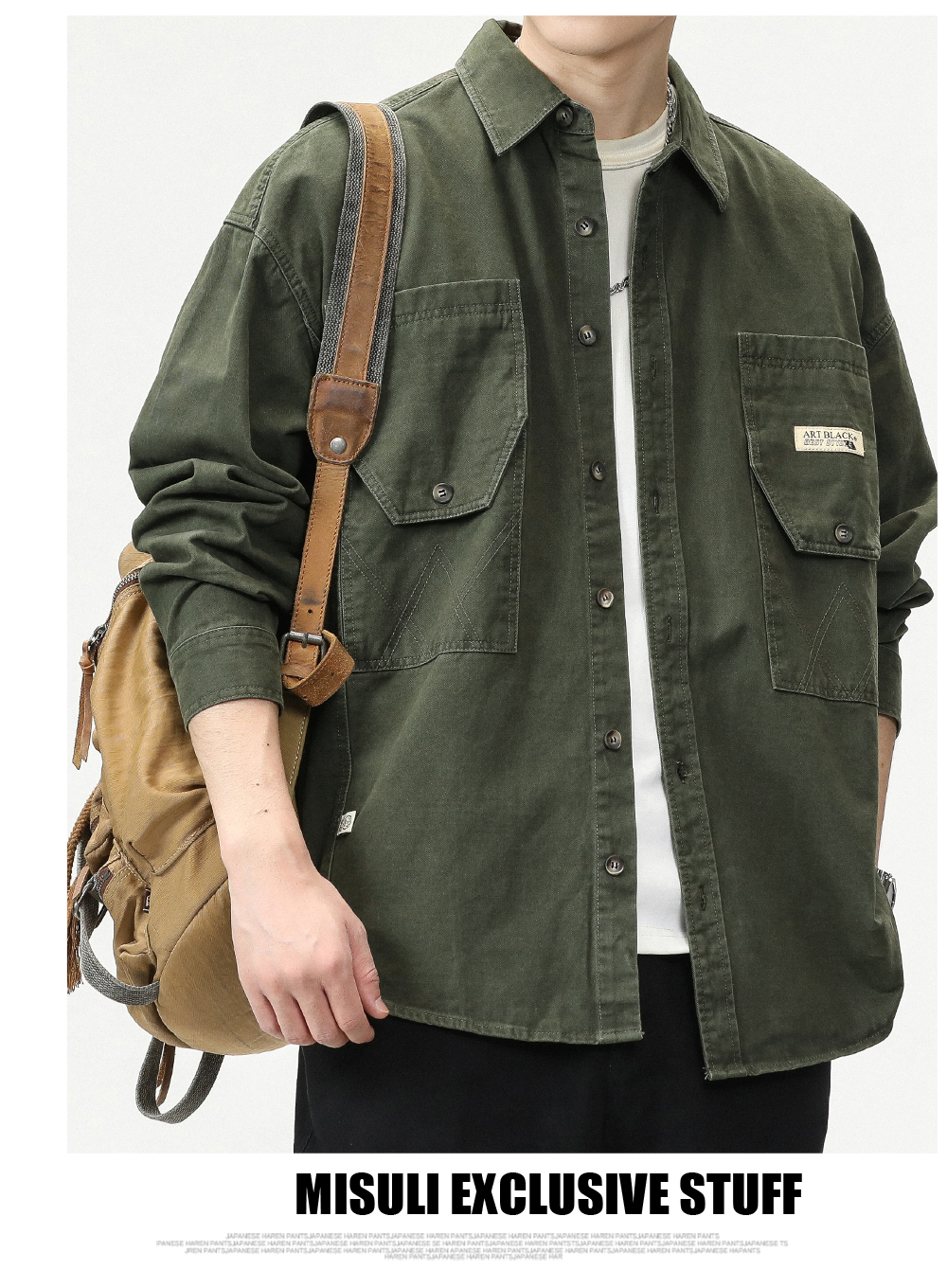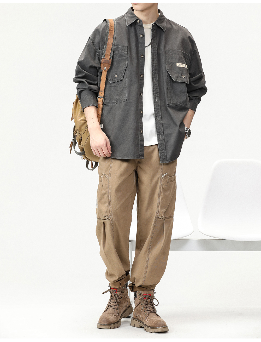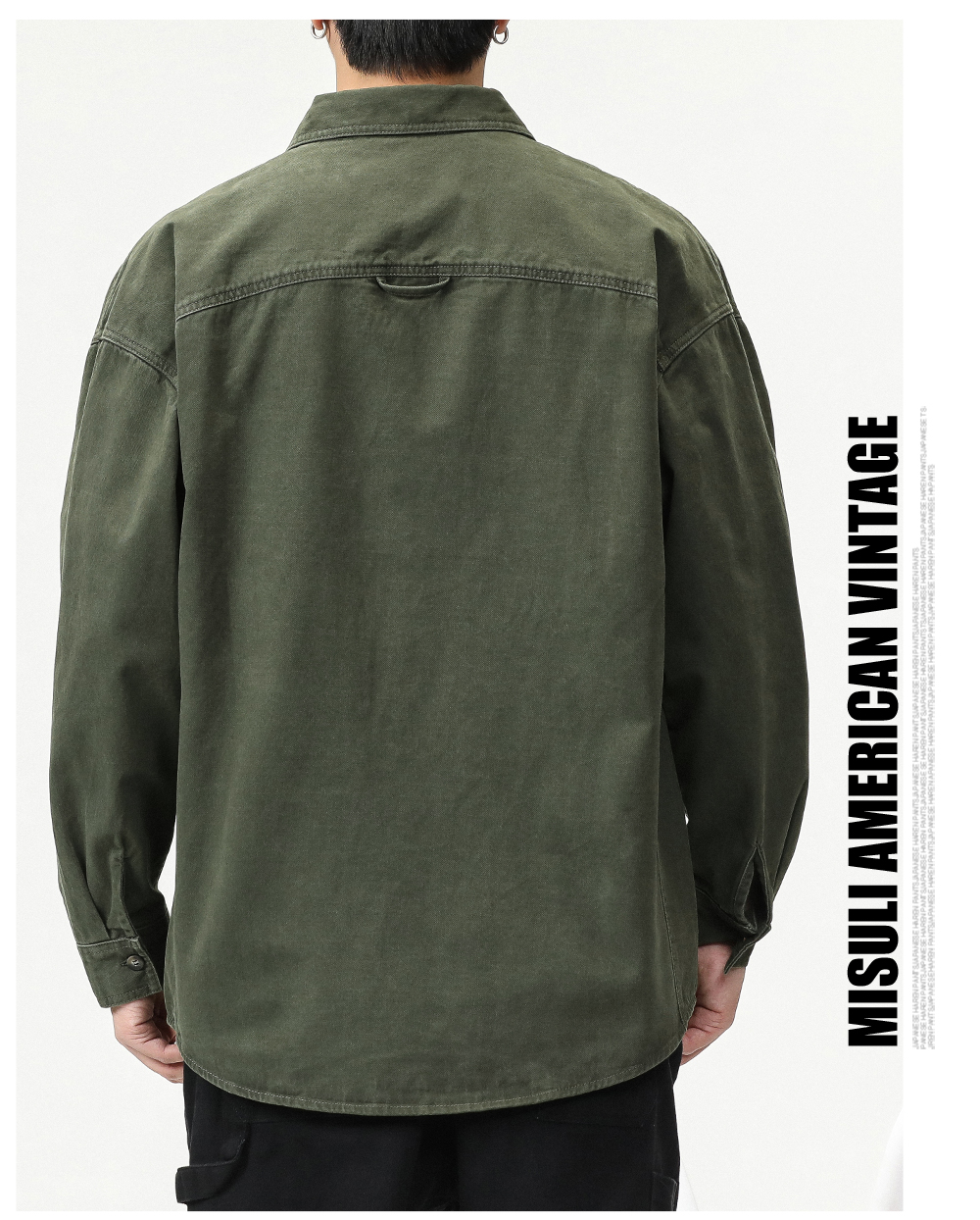 트렌디 한 브랜드 크록 셔츠 남자의 가을 새로운 스타일 유행 잘 생긴 캐주얼 느슨한 재킷 코트 일본 스타일 옷깃 빈티지 탑스토어 가기