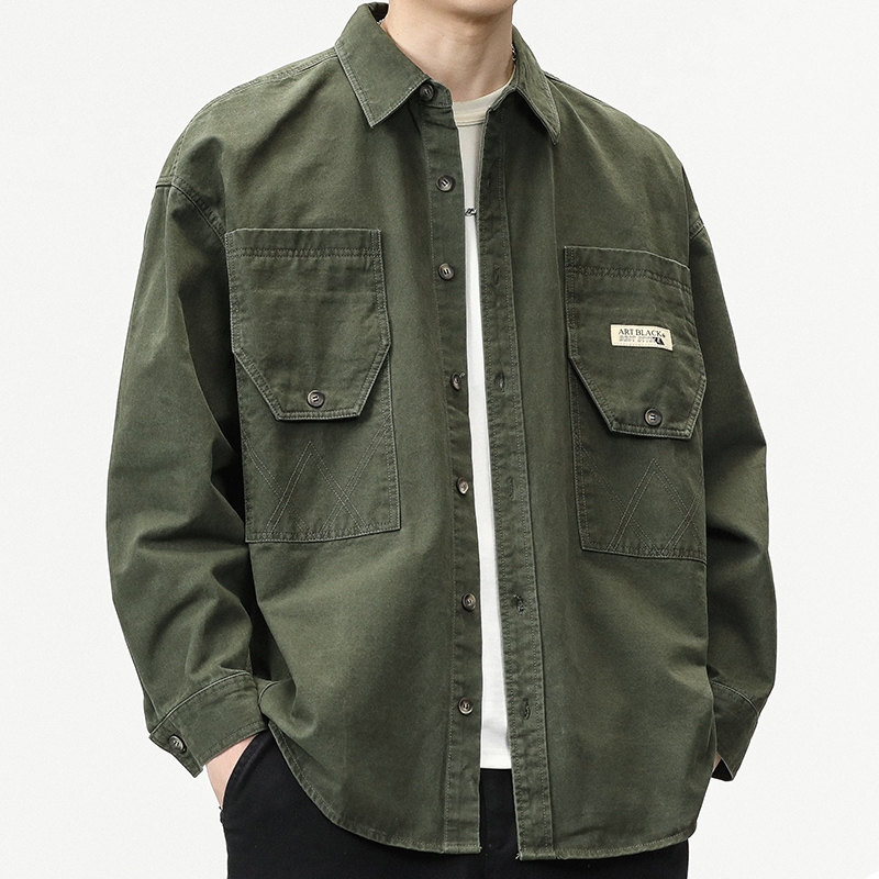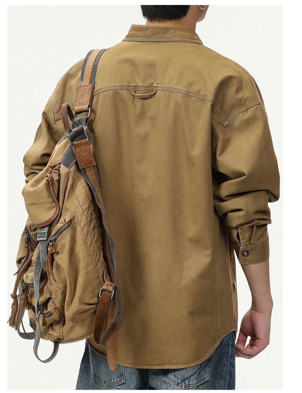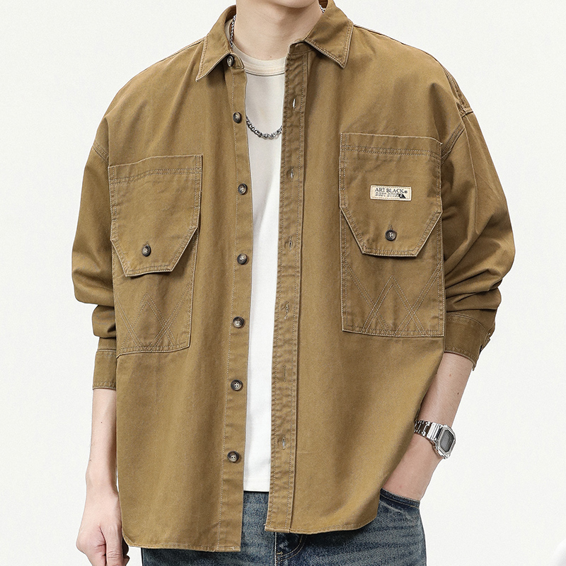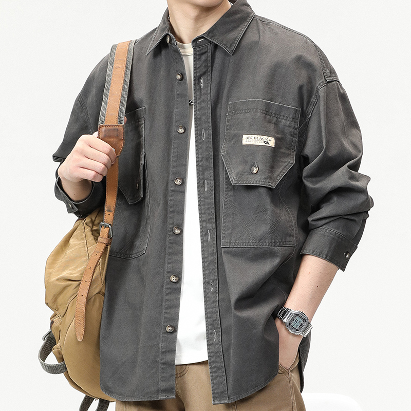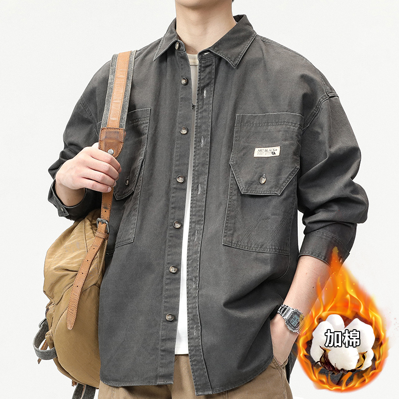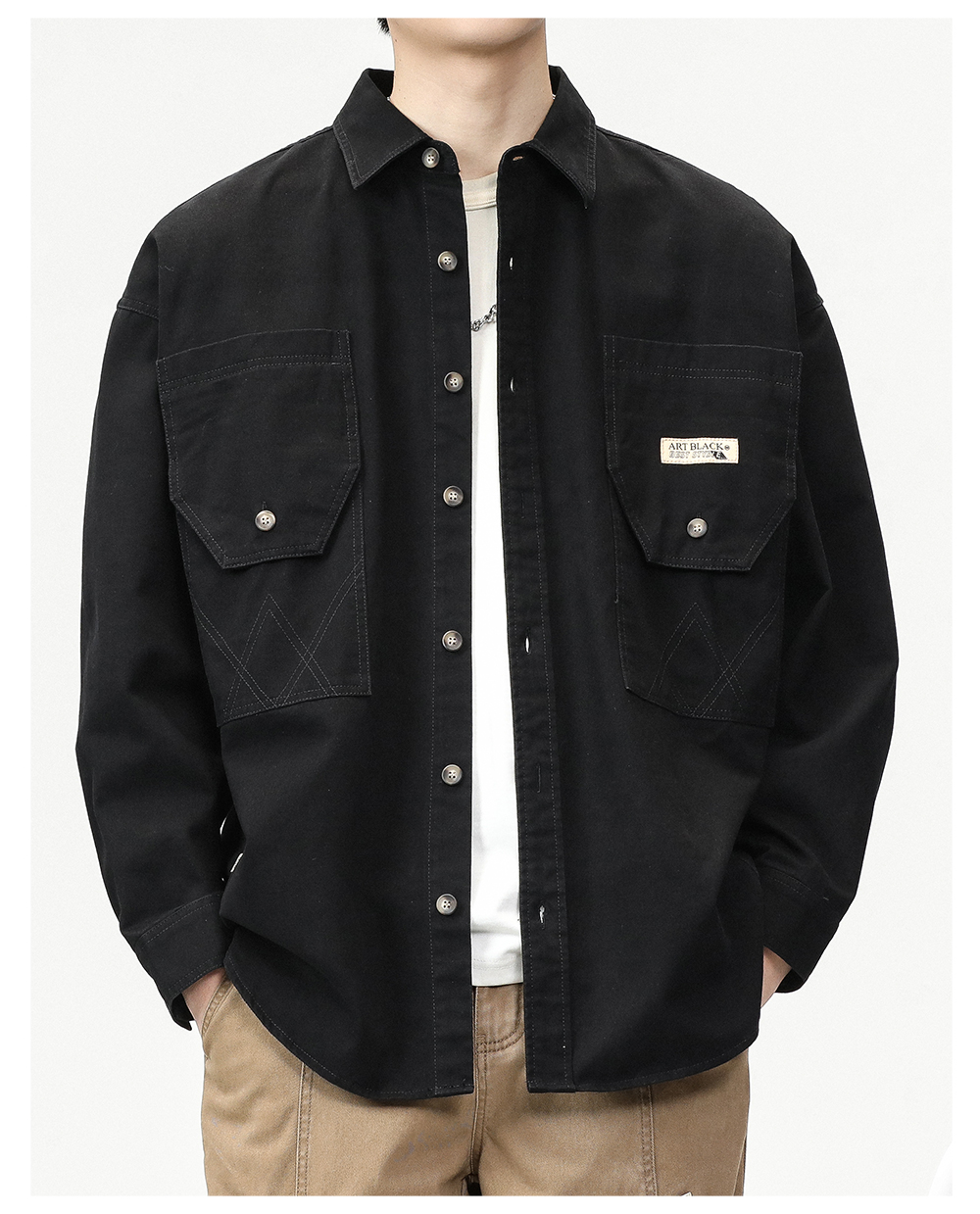 트렌디 한 브랜드 크록 셔츠 남자의 가을 새로운 스타일 유행 잘 생긴 캐주얼 느슨한 재킷 코트 일본 스타일 옷깃 빈티지 탑스토어 가기