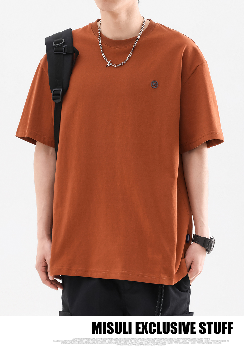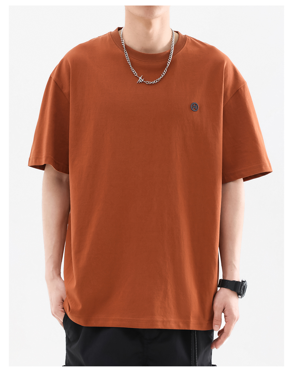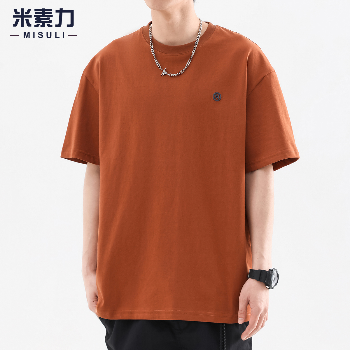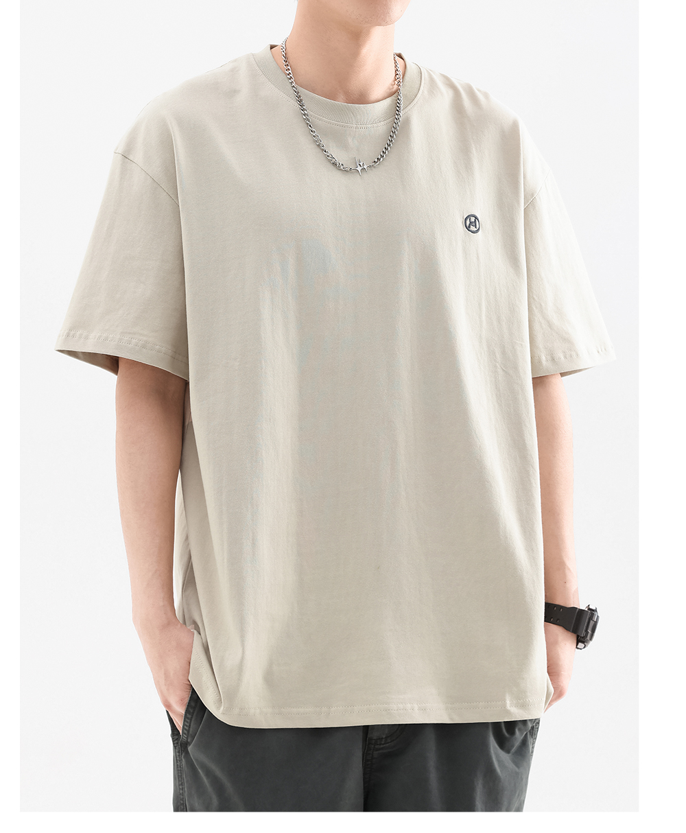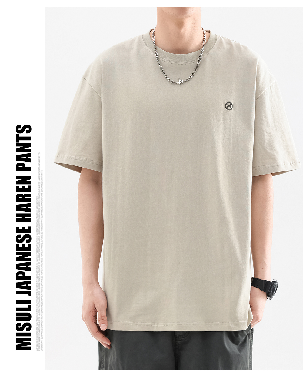단색 반팔 티셔츠 남성용 트렌디 브랜드 유행 여름 새로운 무거운 일본 스타일 심플베이스 셔츠 반팔 티셔츠스토어 가기