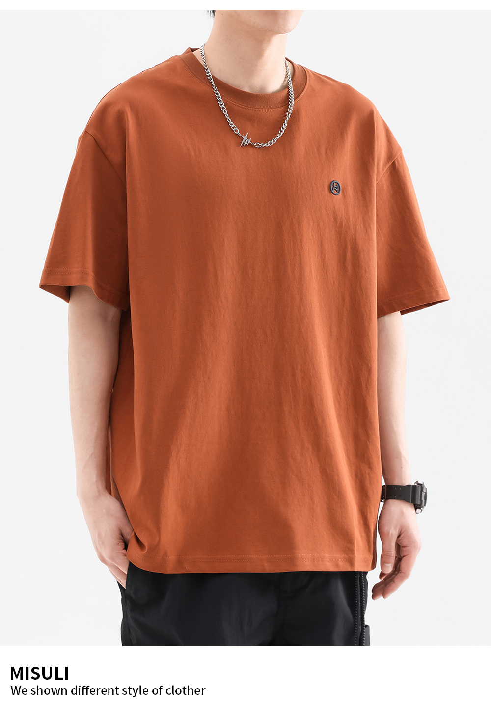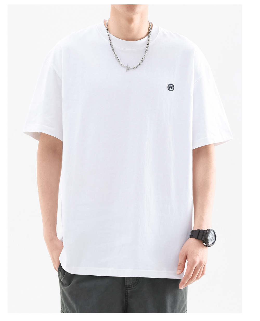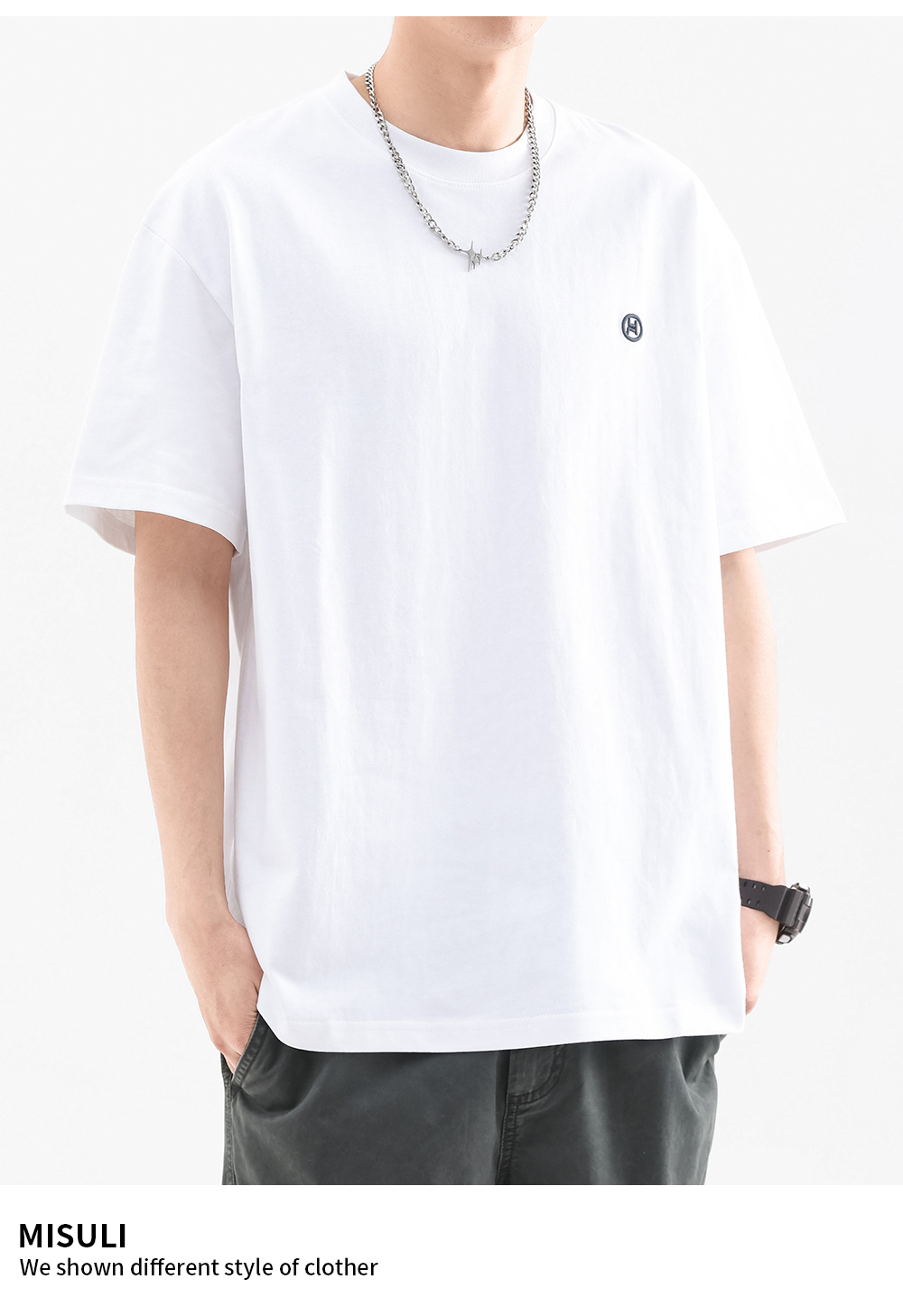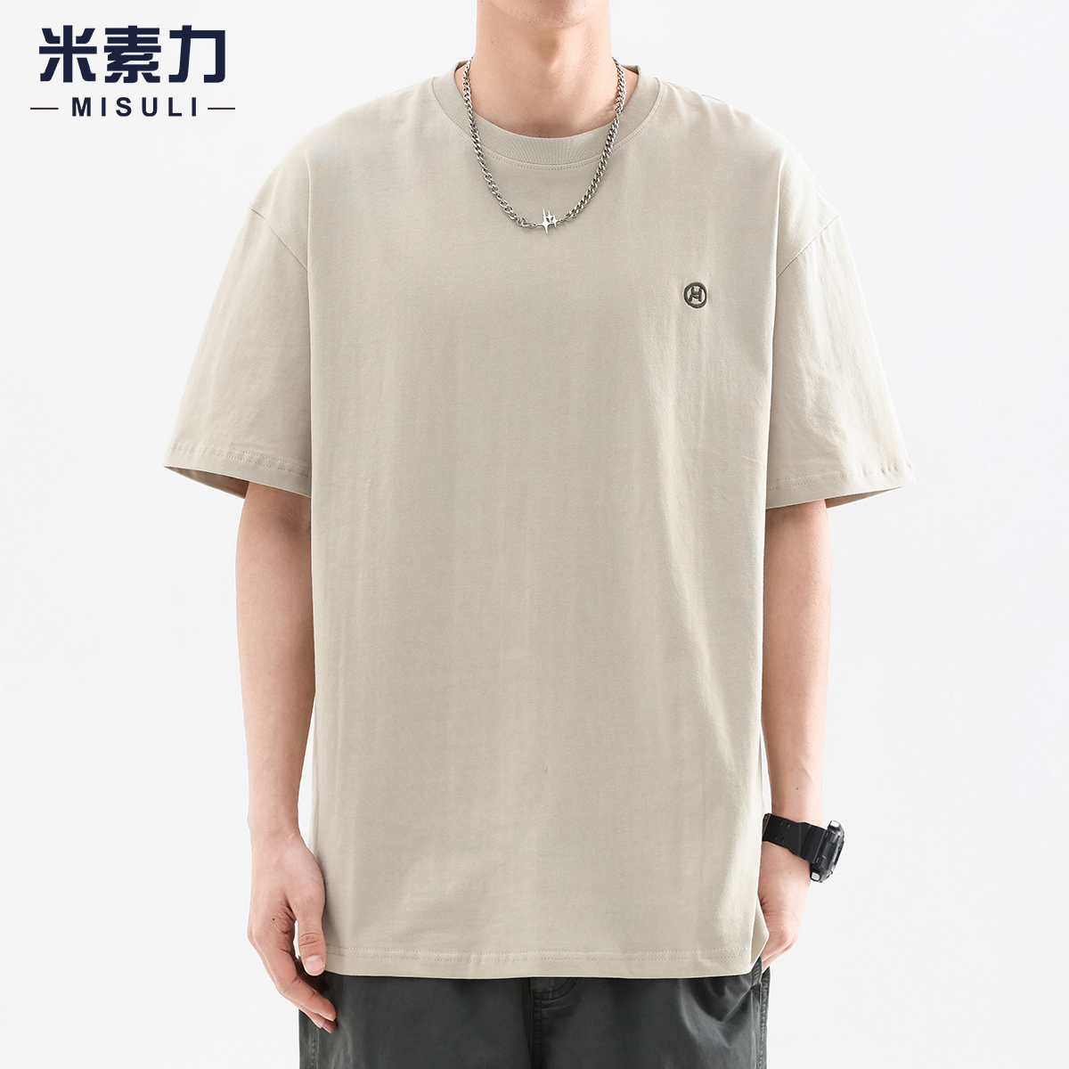 단색 반팔 티셔츠 남성용 트렌디 브랜드 유행 여름 새로운 무거운 일본 스타일 심플베이스 셔츠 반팔 티셔츠스토어 가기