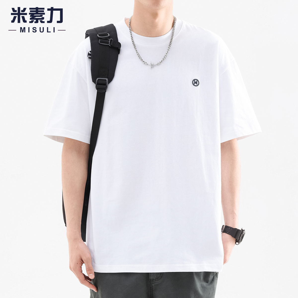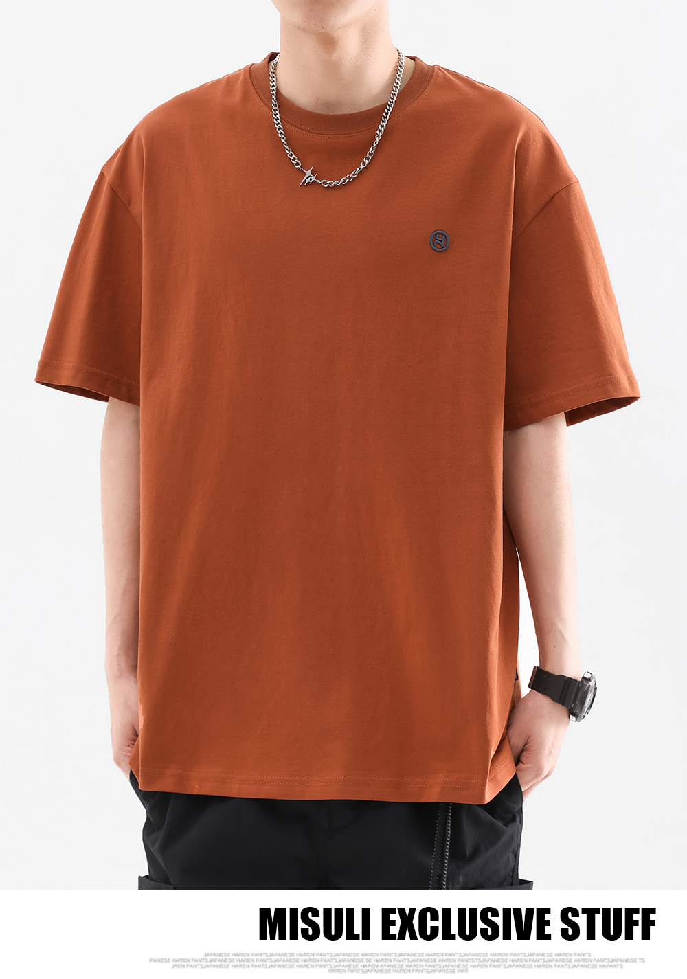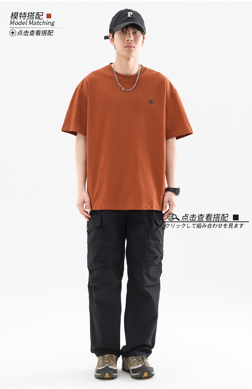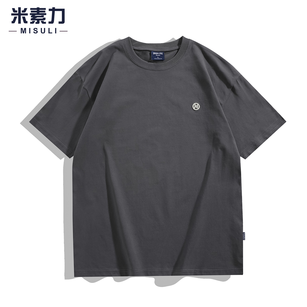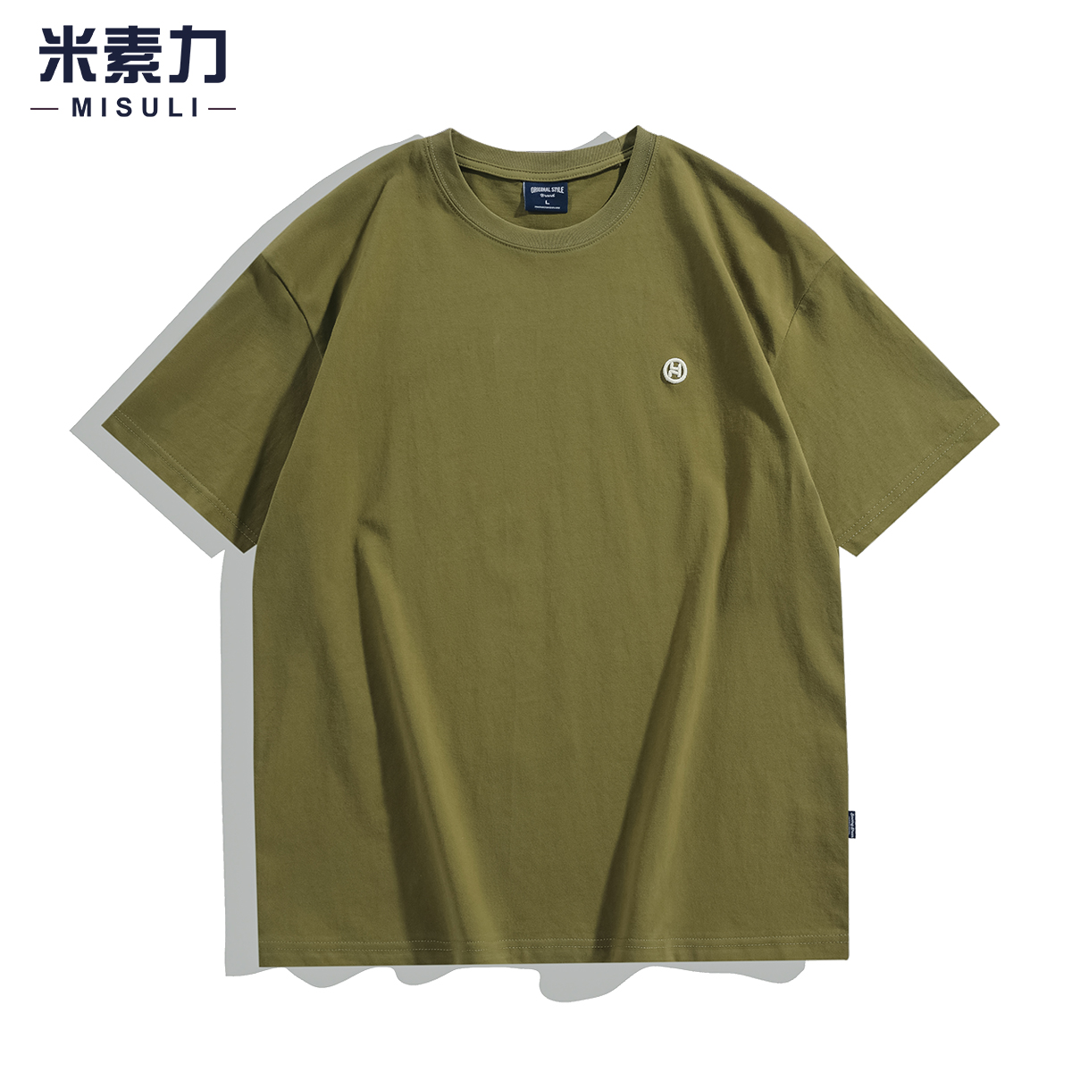단색 반팔 티셔츠 남성용 트렌디 브랜드 유행 여름 새로운 무거운 일본 스타일 심플베이스 셔츠 반팔 티셔츠스토어 가기