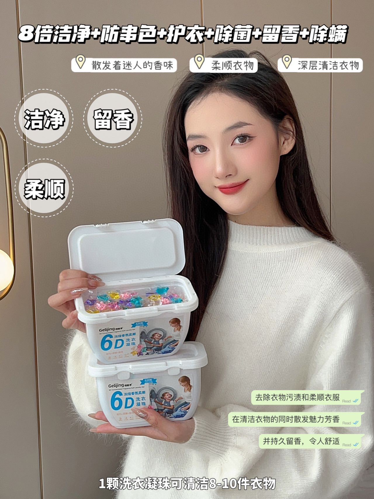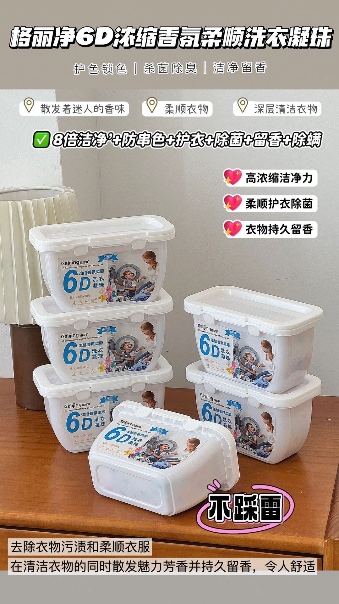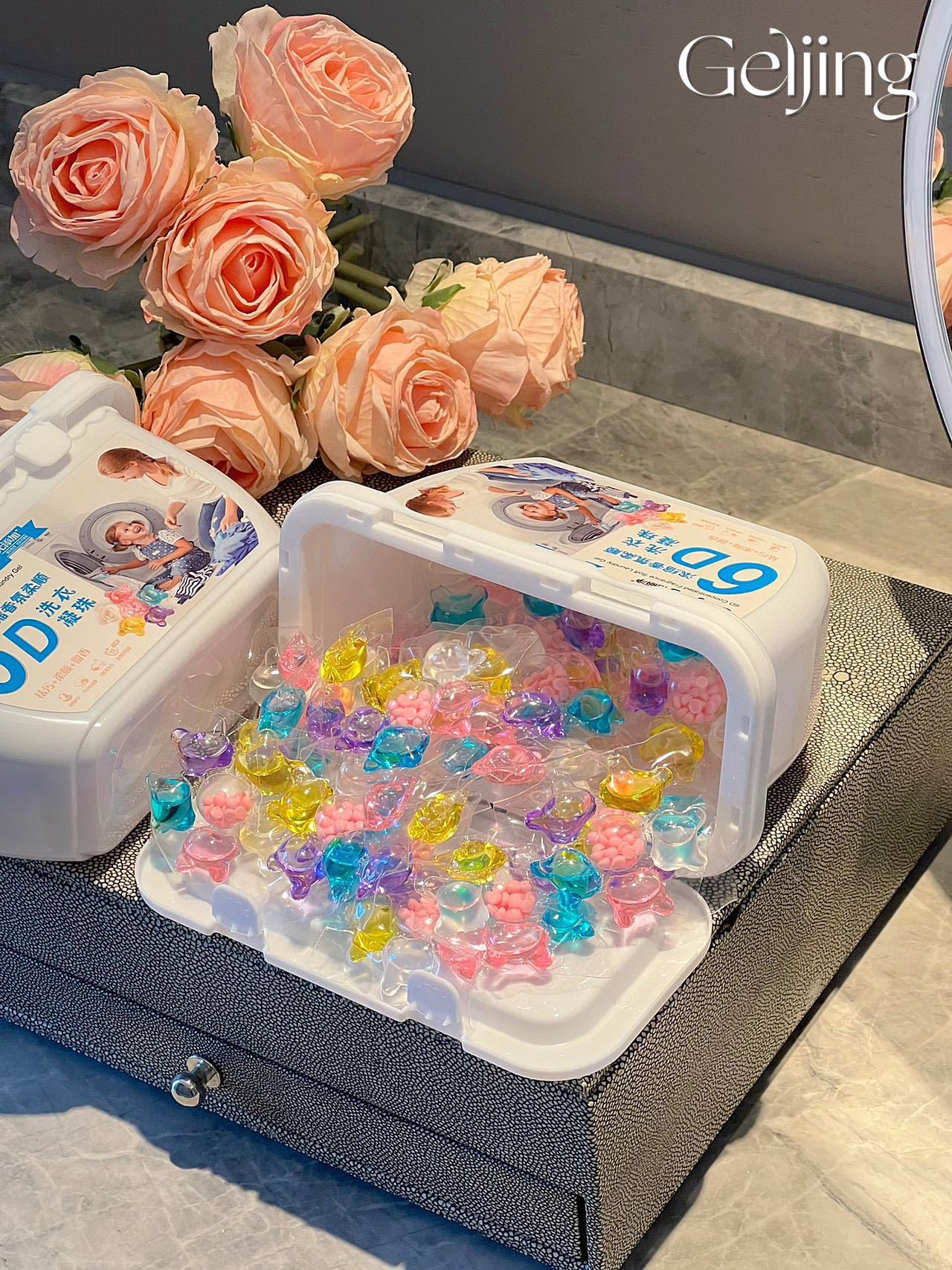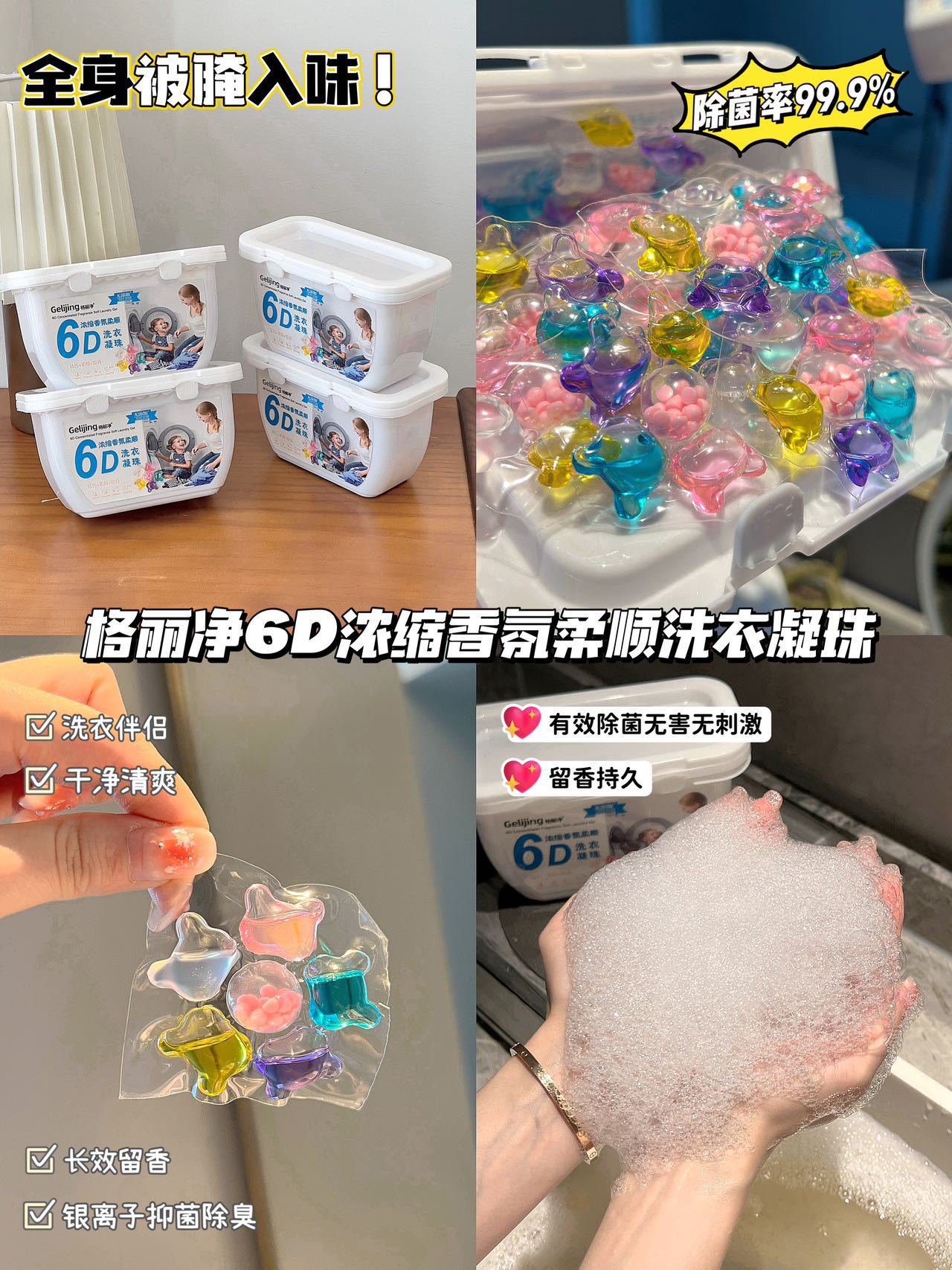 Geli Jing 6D 멀티 이펙트 세탁 비드 농축 및 컴플라이언스 세탁 액체 오염 제거 및 얼룩 제거 세탁 볼 지속 향기