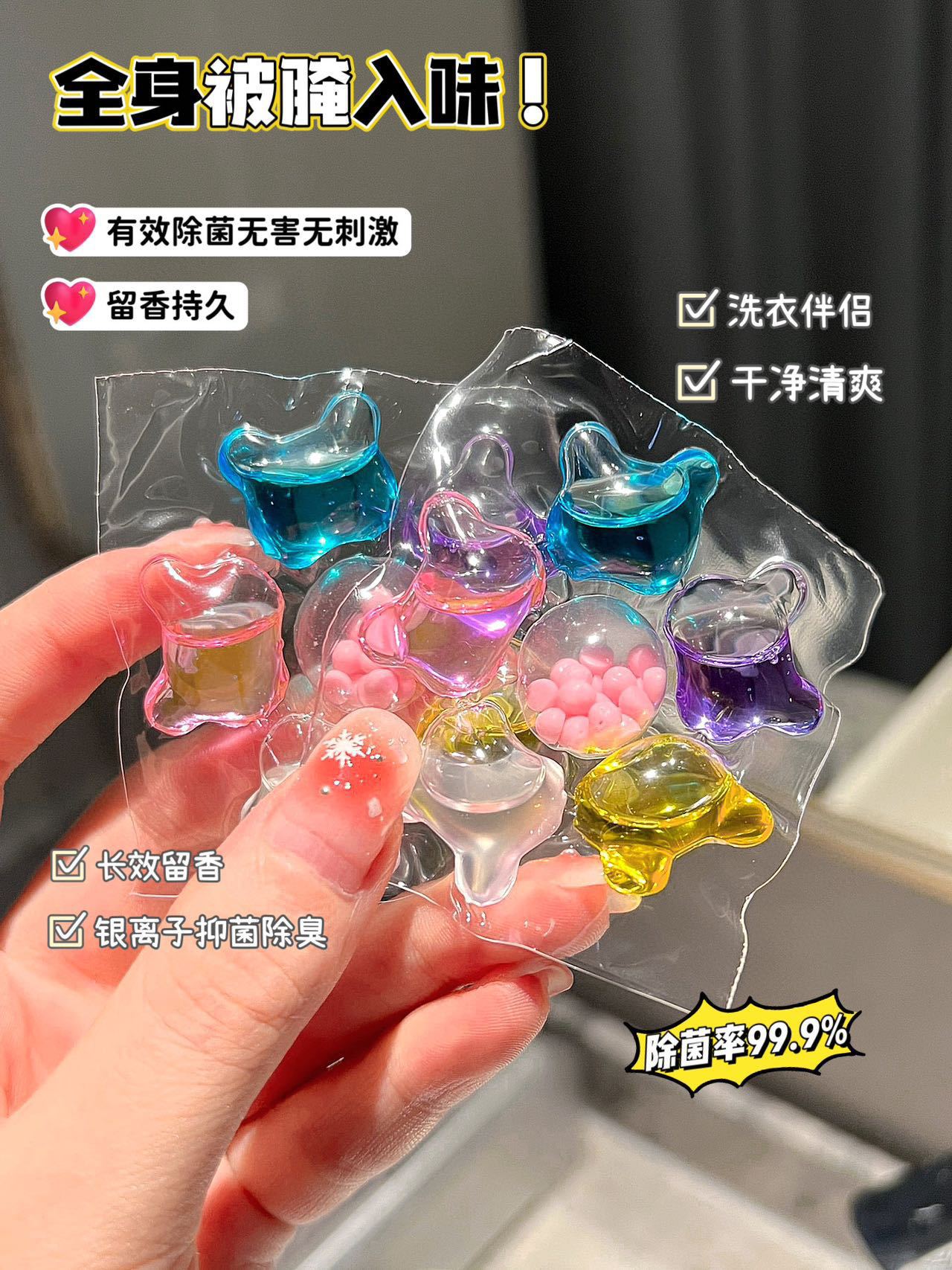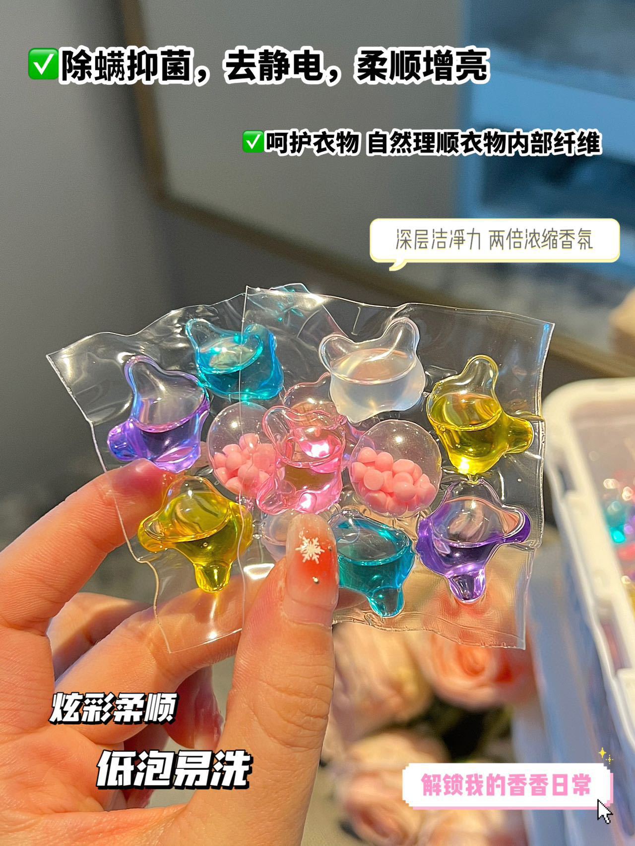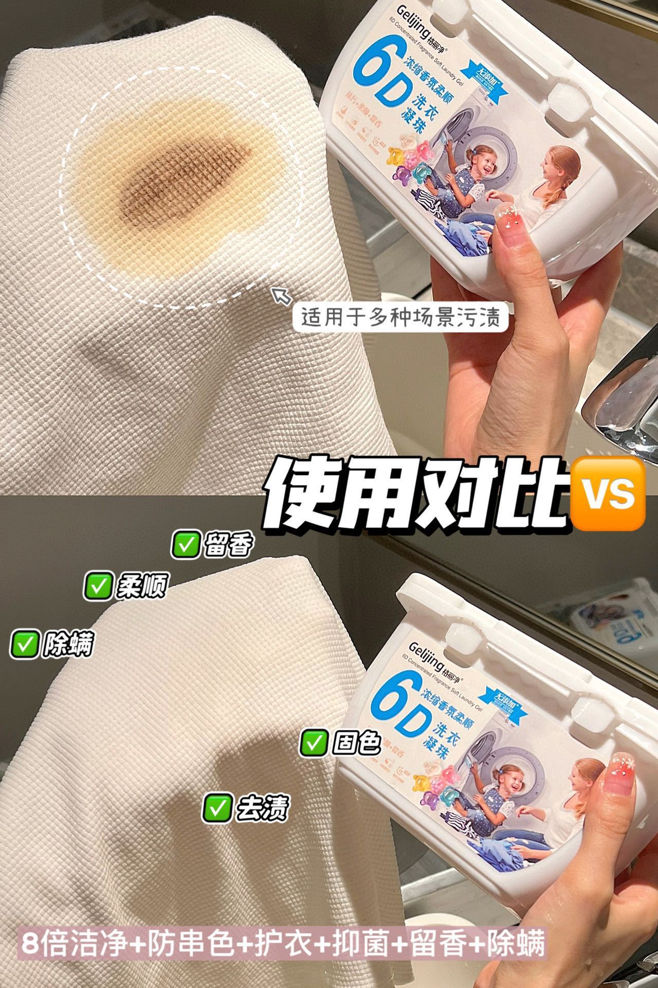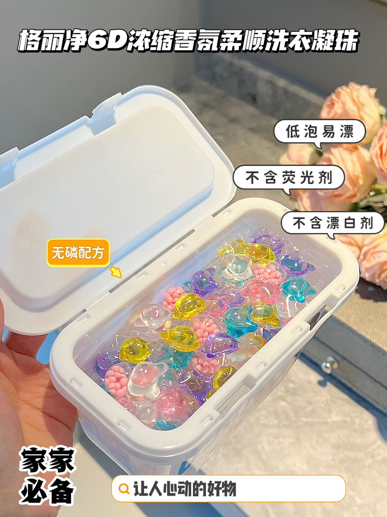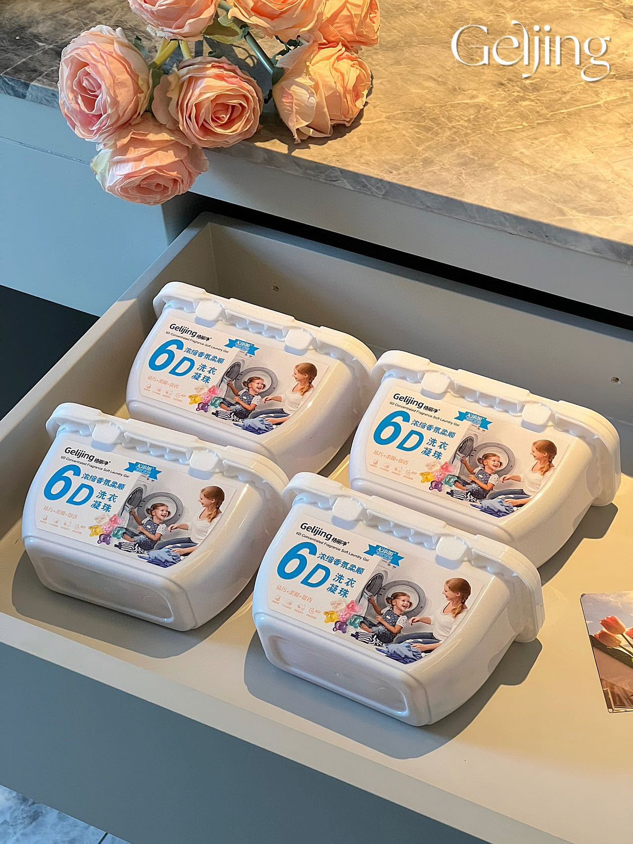 Geli Jing 6D 멀티 이펙트 세탁 비드 농축 및 컴플라이언스 세탁 액체 오염 제거 및 얼룩 제거 세탁 볼 지속 향기