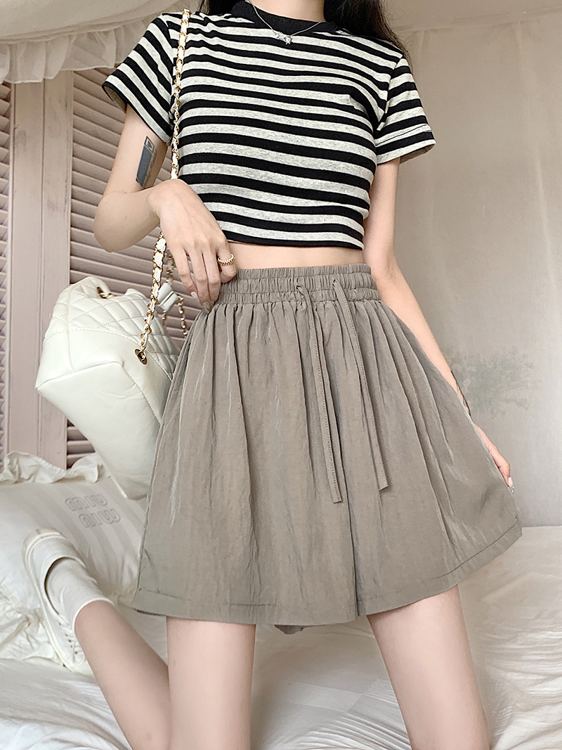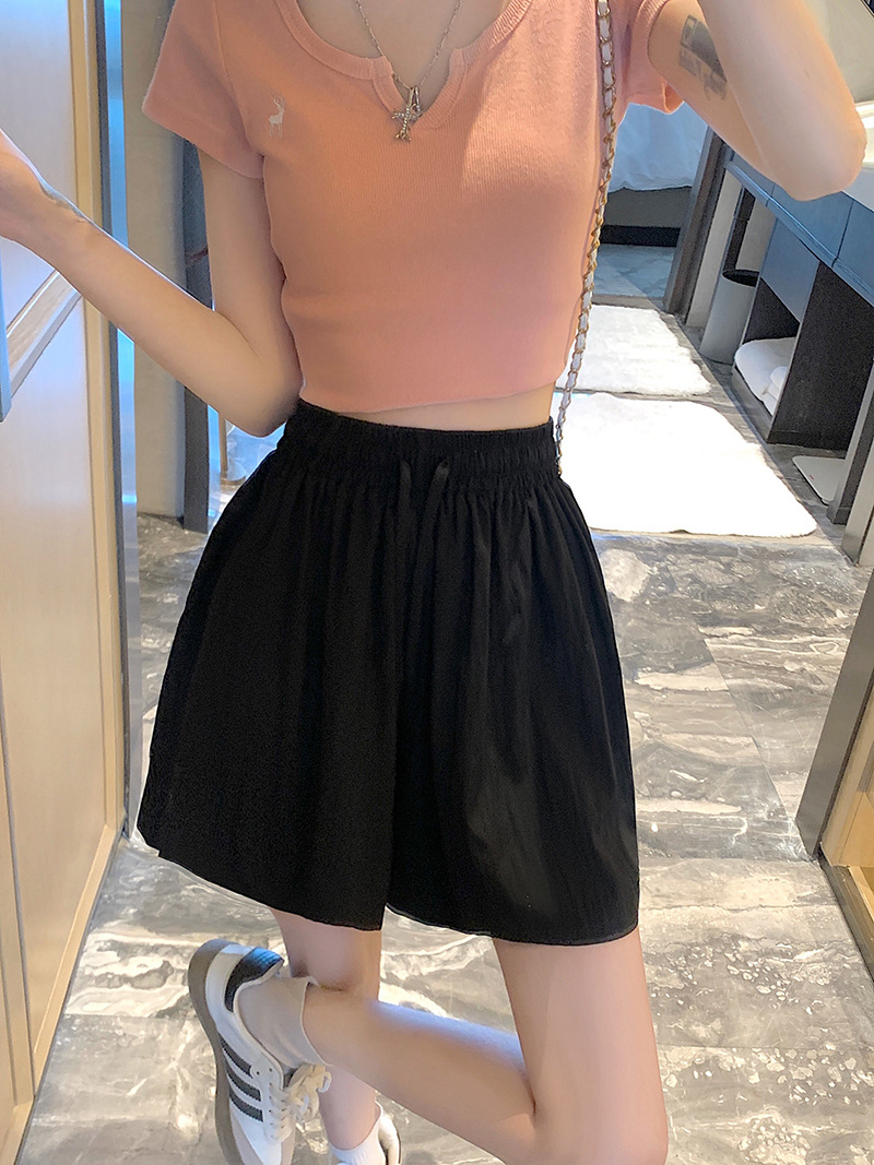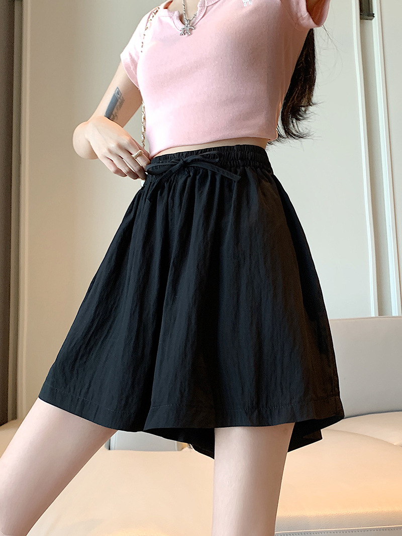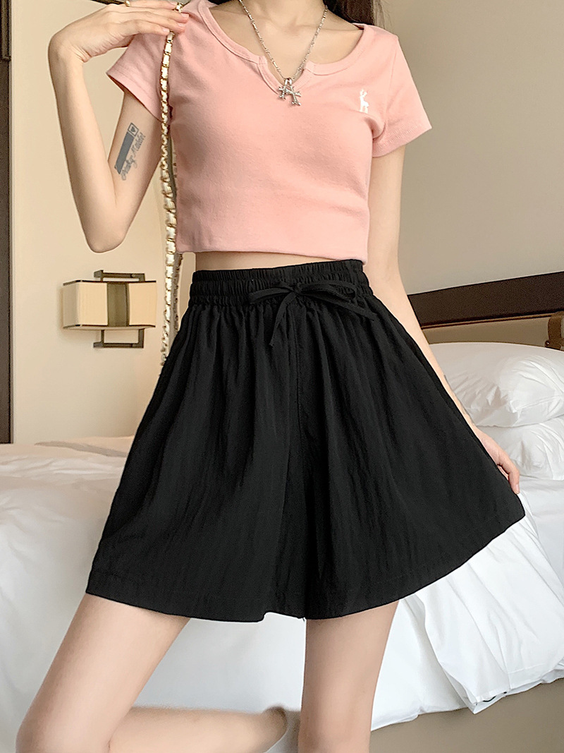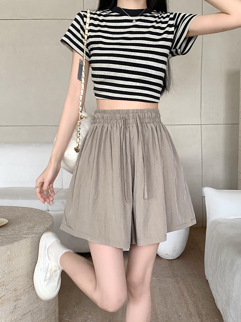 여름 높은 허리 5 점 바지 그리기 와이드 레그 여자 중간 길이 바지 대형 통통 여자 올 매치 하이 허리 핫 바지 캐주얼 새 바지스토어 가기