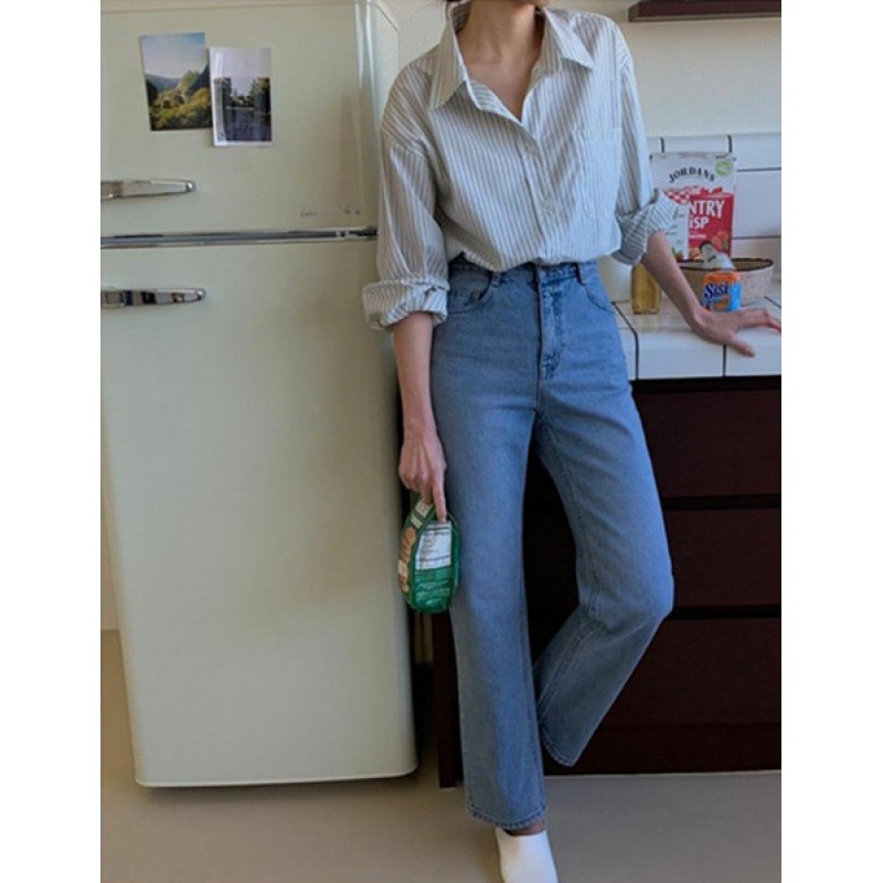 봄 줄무늬 기본 고급 감각 느슨한 긴팔 줄무늬 셔츠 여성 디자인 센스 틈새 내부 탑 재킷스토어 가기