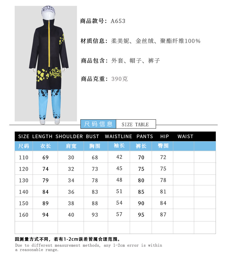원피스 cos 의류 어린이 트라팔가로 애니메이션 캐릭터 코스프레 의류 국경 간 공급 공장스토어 가기