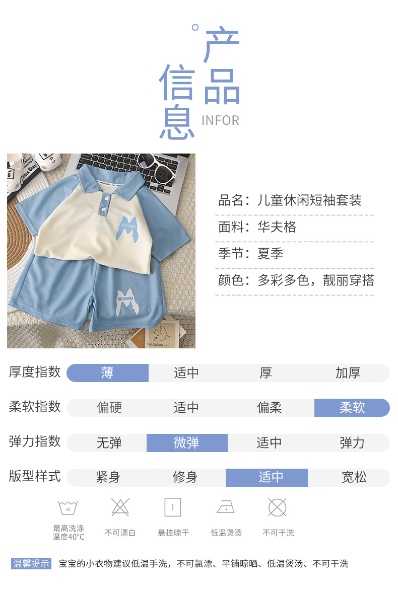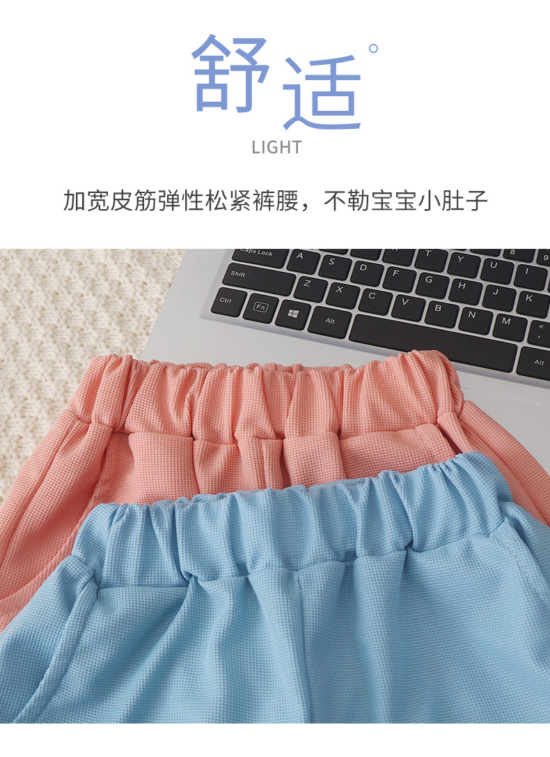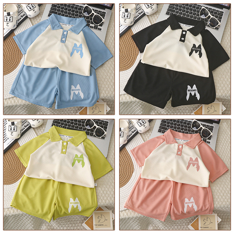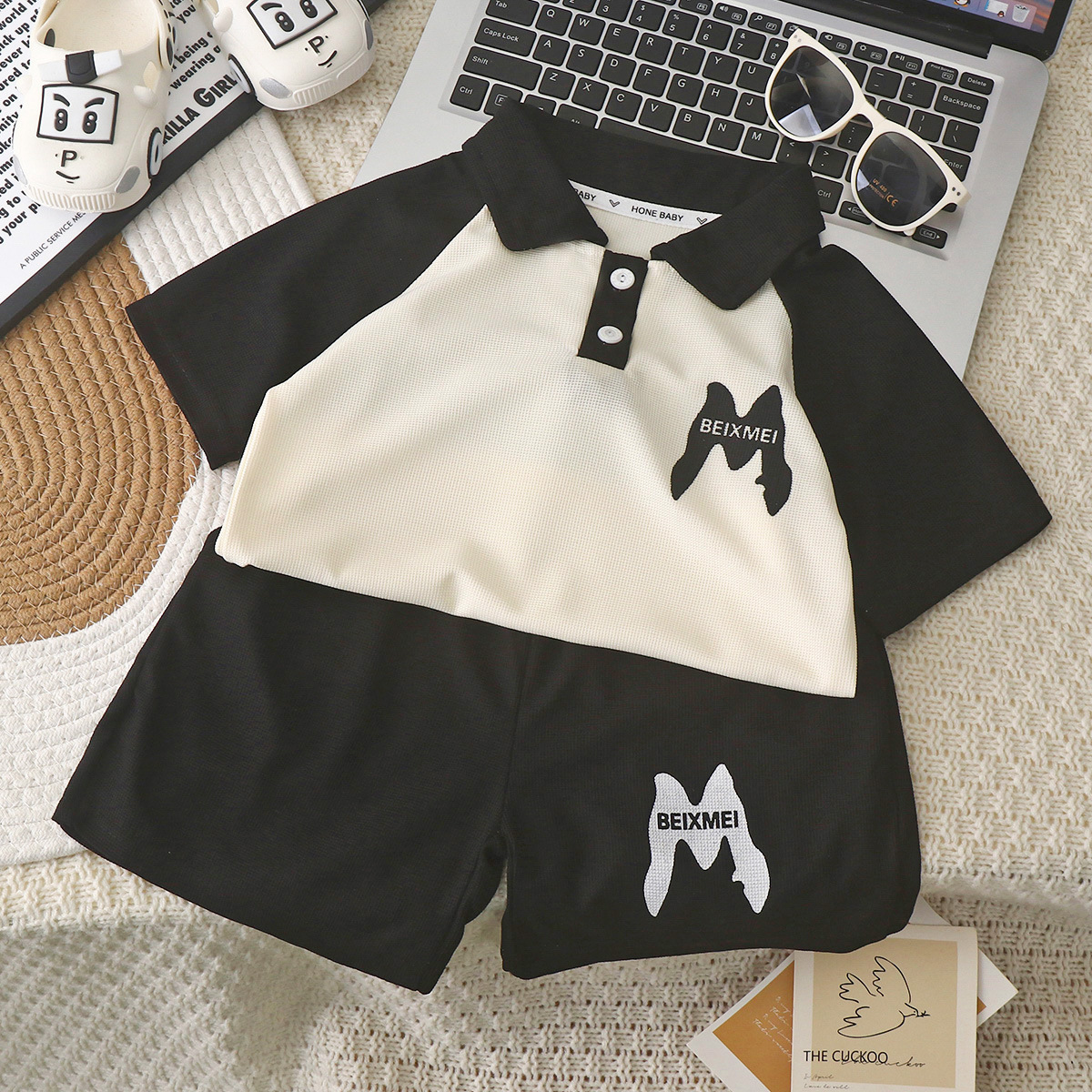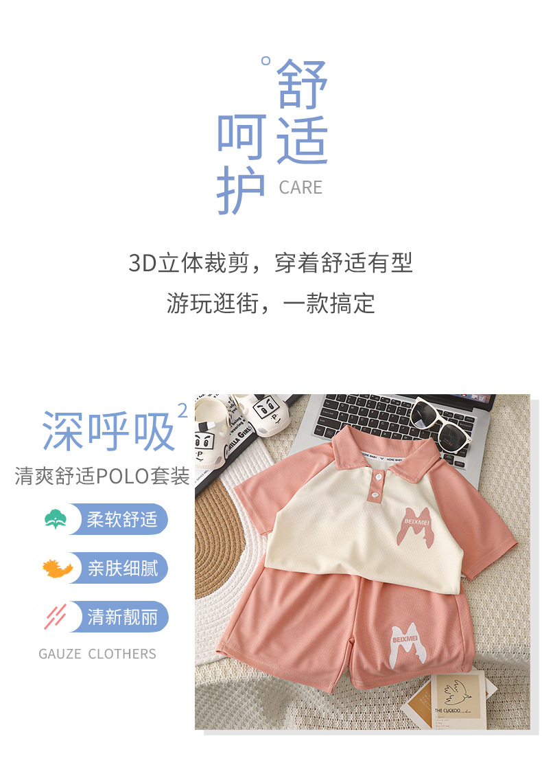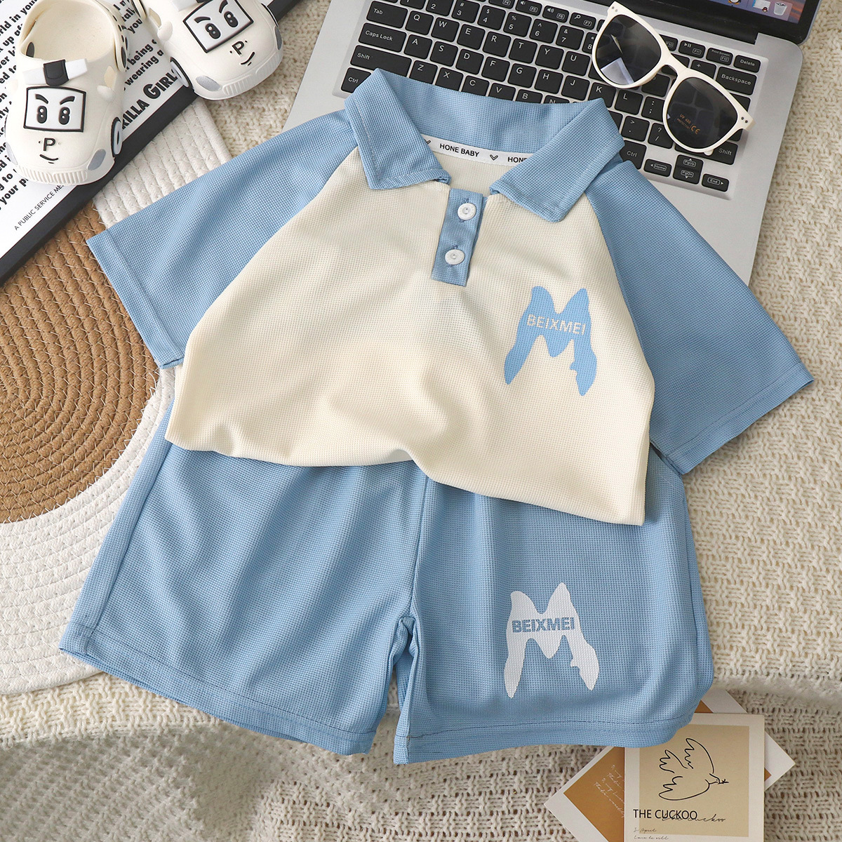 어린이 와플 폴로 셔츠 세트 소년과 소녀 레이저 캐주얼 스포츠 한국 스타일 서양식 홈 의류 세트