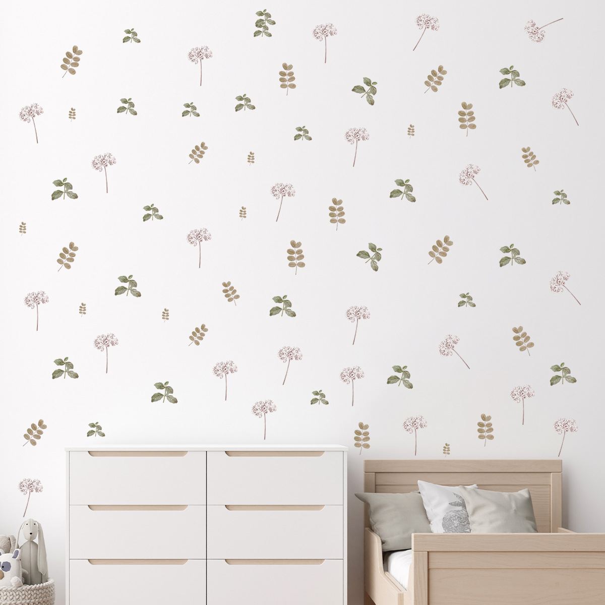 BR0152C 만화 Ins 스타일 미모사 민들레 자기 접착 벽 스티커 거실 침실 어린이 방 장식 스티커