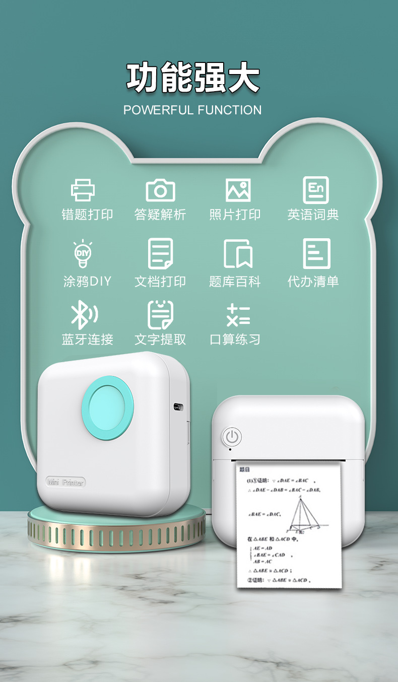 라벨 작은 휴대용 무선 열 사진 블루투스 프린터 포켓 학생 미니 잘못된 라벨 인쇄