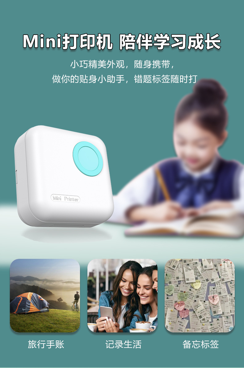 라벨 작은 휴대용 무선 열 사진 블루투스 프린터 포켓 학생 미니 잘못된 라벨 인쇄스토어 가기