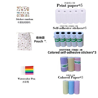 • 5 열 종이 5 라벨 종이 5 자체 접착 3 컬러 종이 3 컬러 스티커 6 컬러 펜 스티커 보관 가방