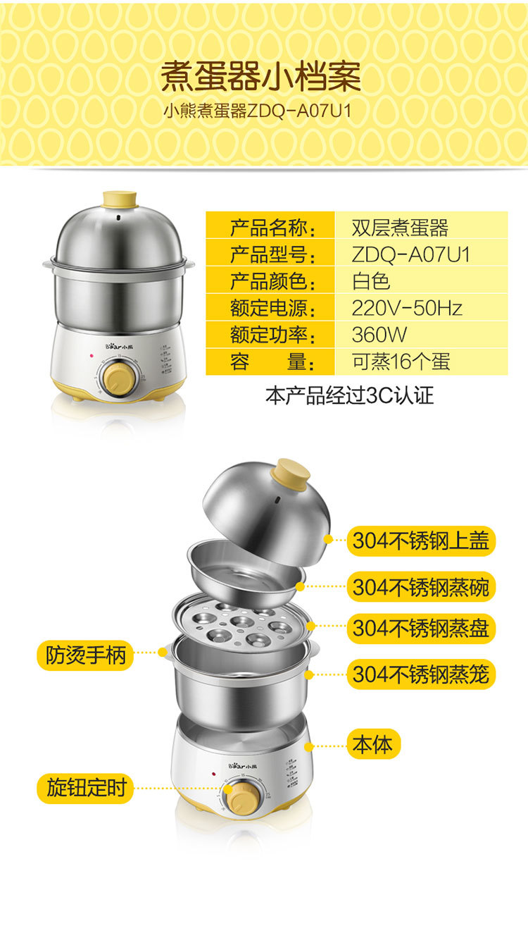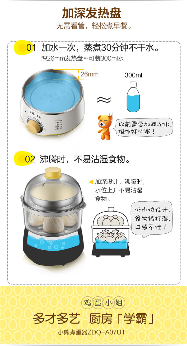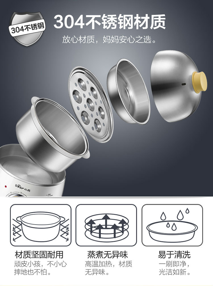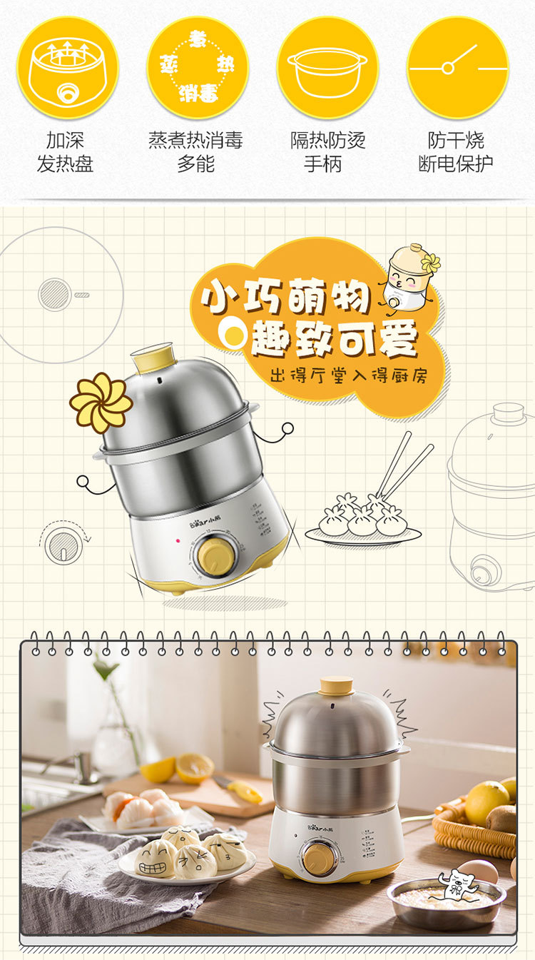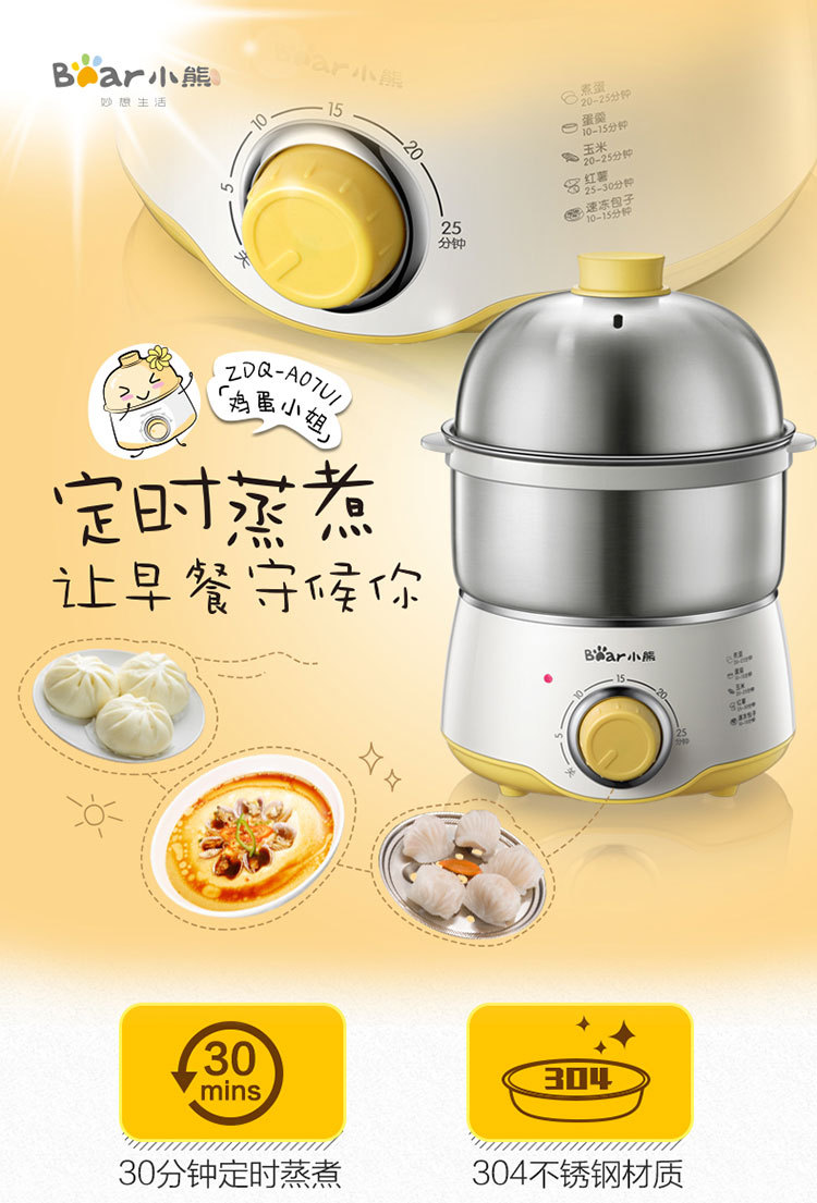 곰 ZDQ-A07U1 스테인레스 스틸 계란 보일러 계란 기선 심화 가열 플레이트 더블 레이어 용량 김이 그릇스토어 가기