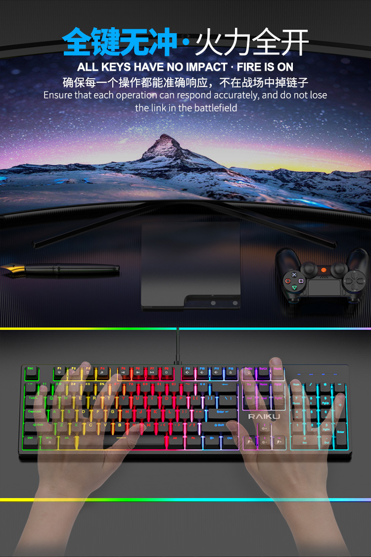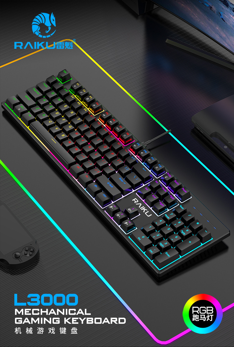 RAIKU Lei Kui L3000 실제 기계 키보드 녹색 축 RGB E 스포츠 게임 키보드 키 라인 분리 104 키 키보드스토어 가기