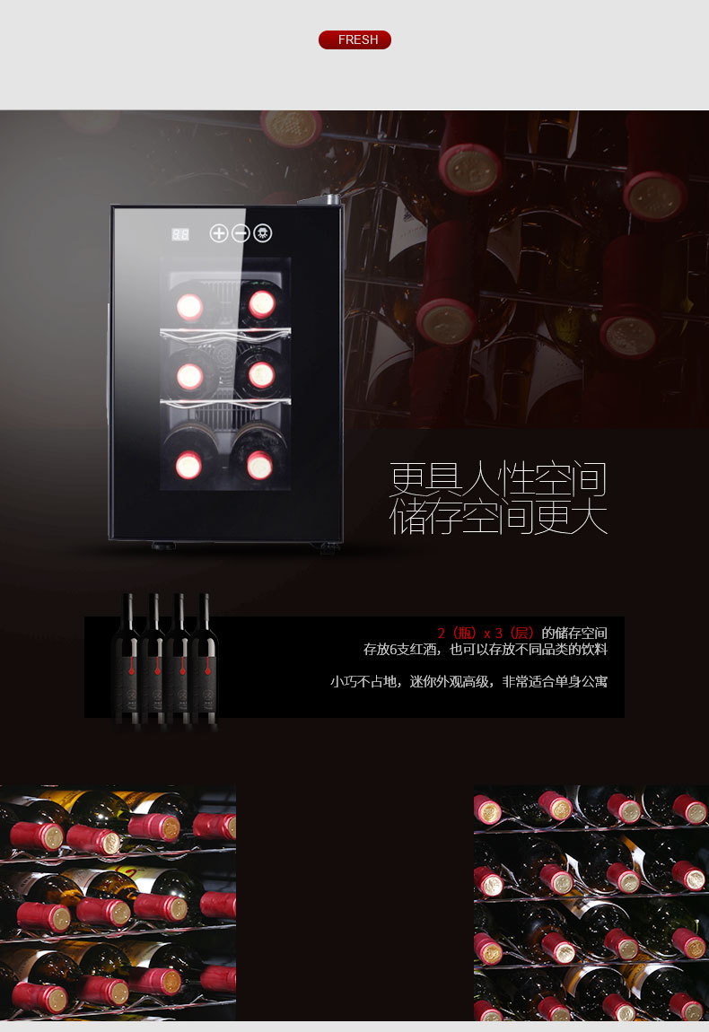 JC-16 소형 반도체 온도조절 와인 캐비닛 6병 미니 소형 와인 캐비닛 수출용 110V스토어 가기