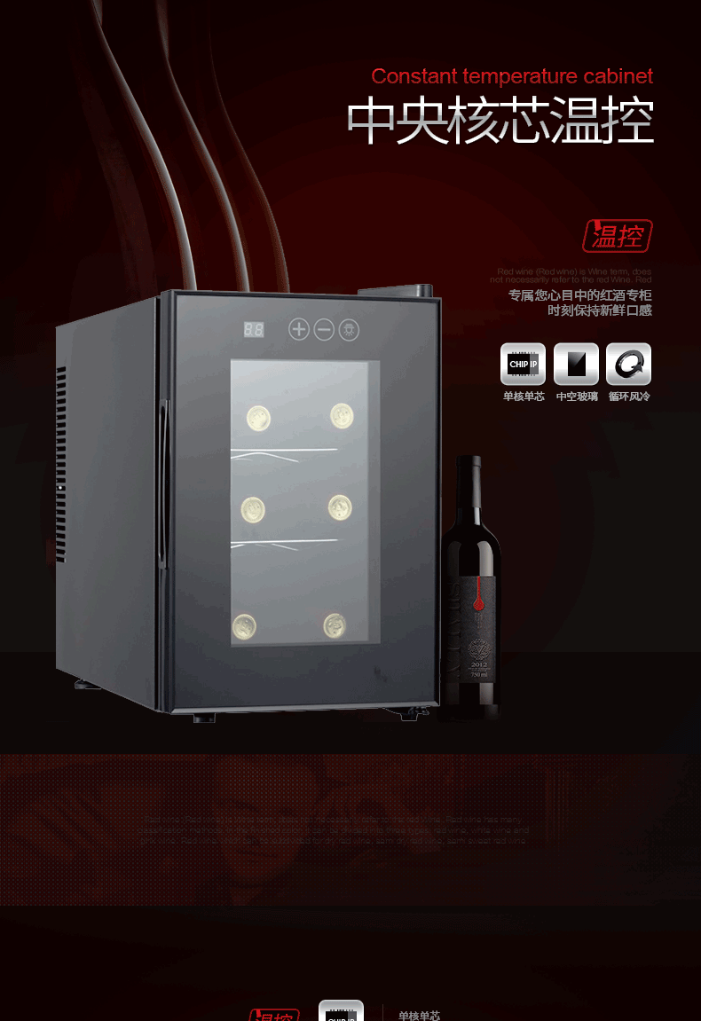 JC-16 소형 반도체 온도조절 와인 캐비닛 6병 미니 소형 와인 캐비닛 수출용 110V