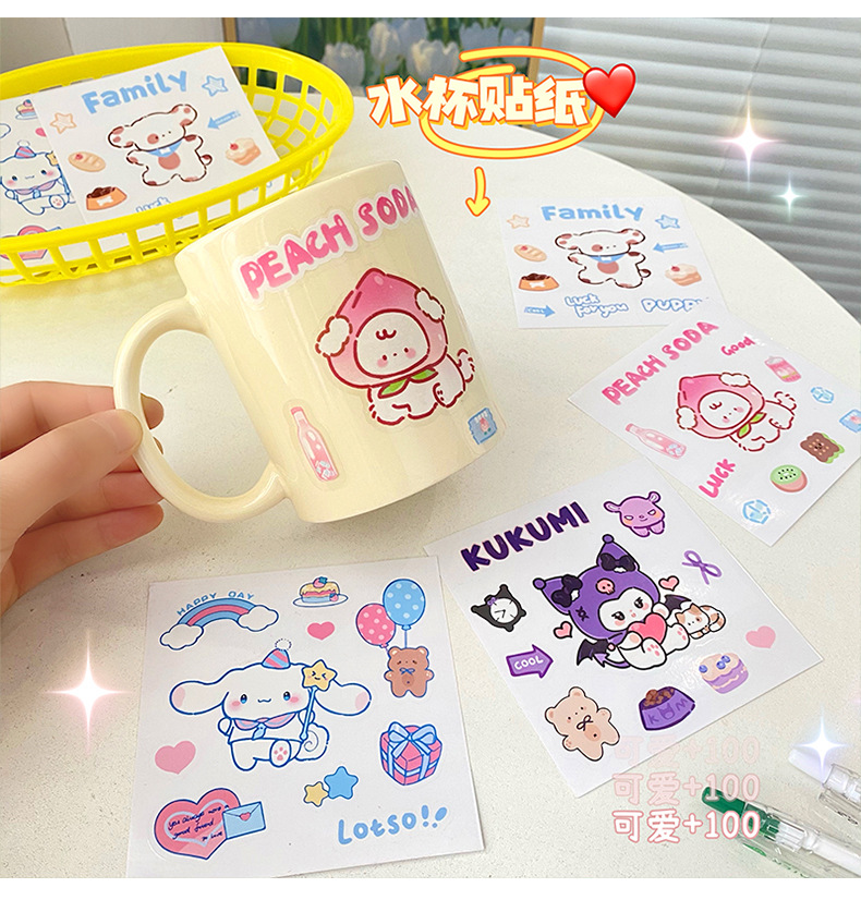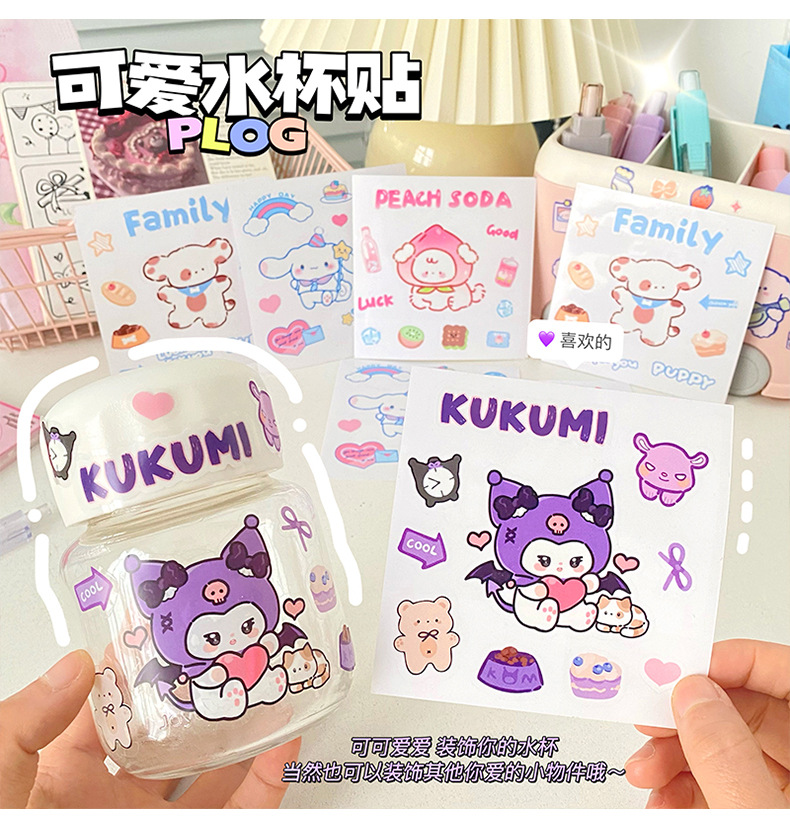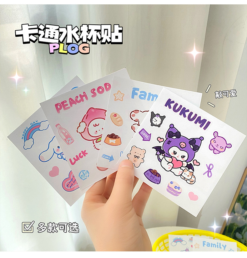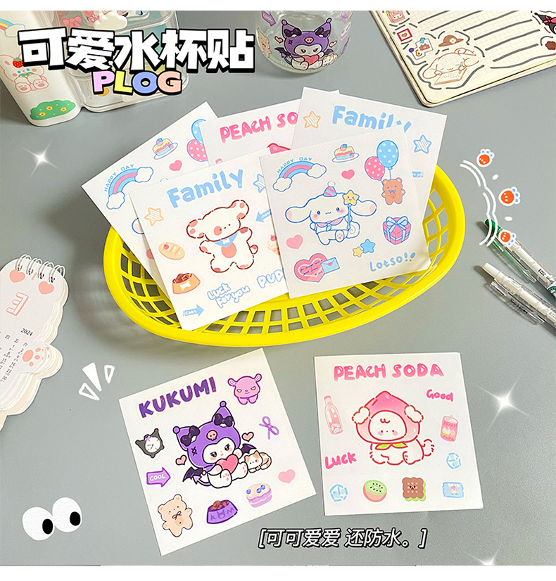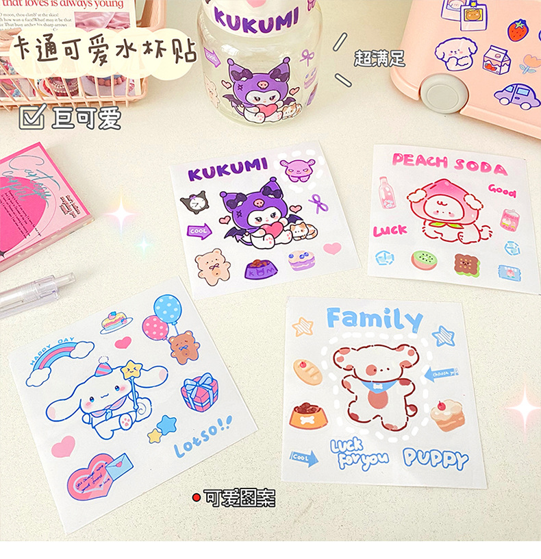 새로운 귀여운 만화 추적없는 스티커 보온병 컵 주전자 휴대 전화 물 컵 장식 스티커 방수 수하물 스티커
