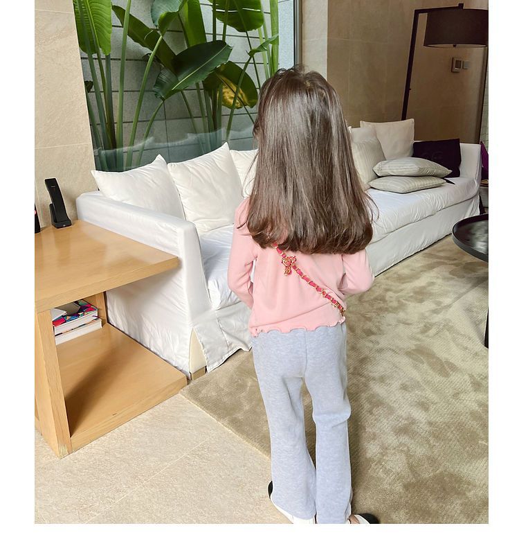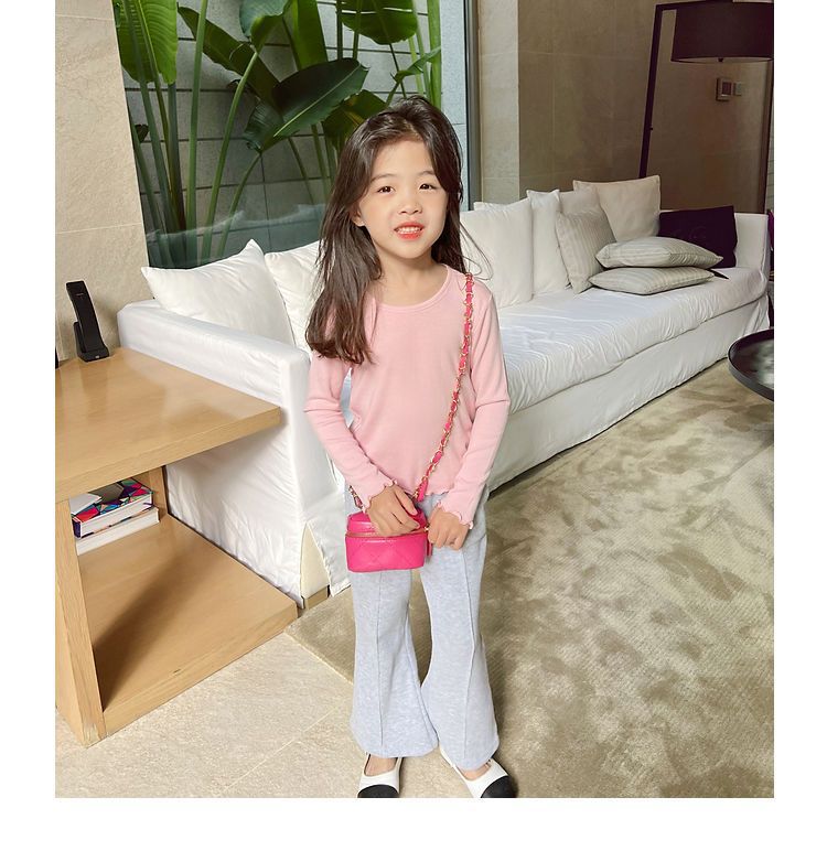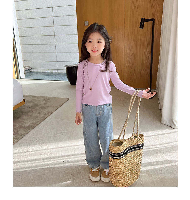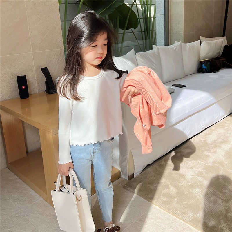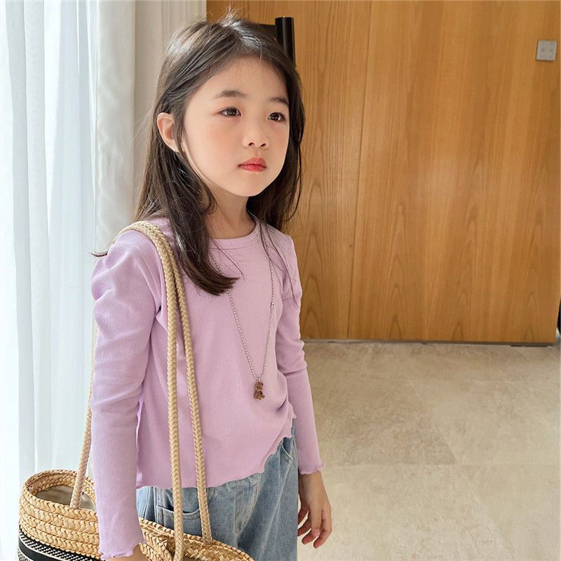소녀베이스 셔츠 봄과 가을 2024 봄 새로운 도착 아기 스타일 긴팔 티셔츠 올 매치 슬림 핏 크루 넥 탑 트렌디