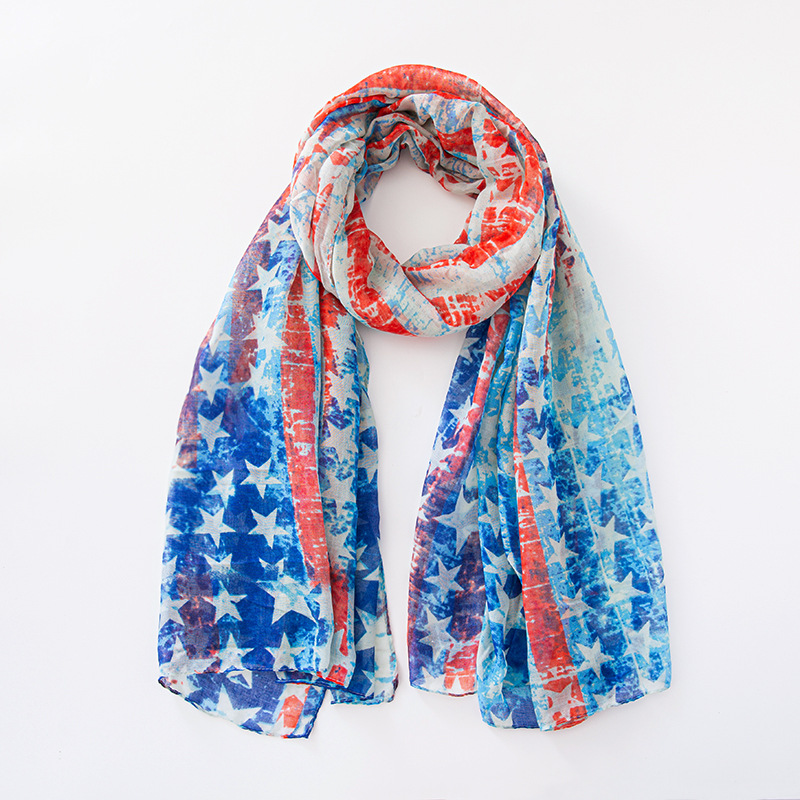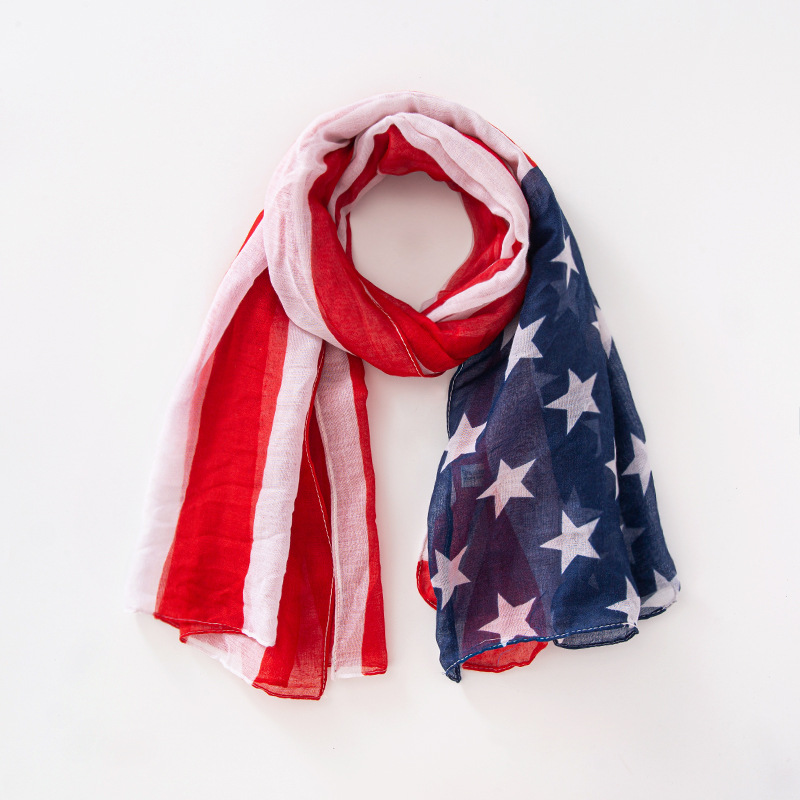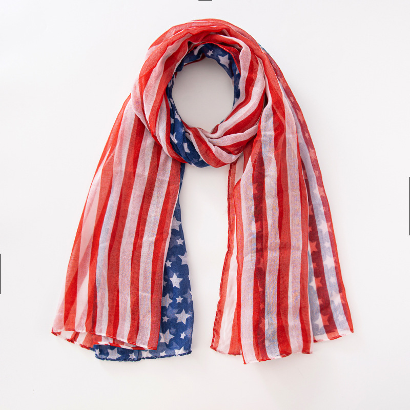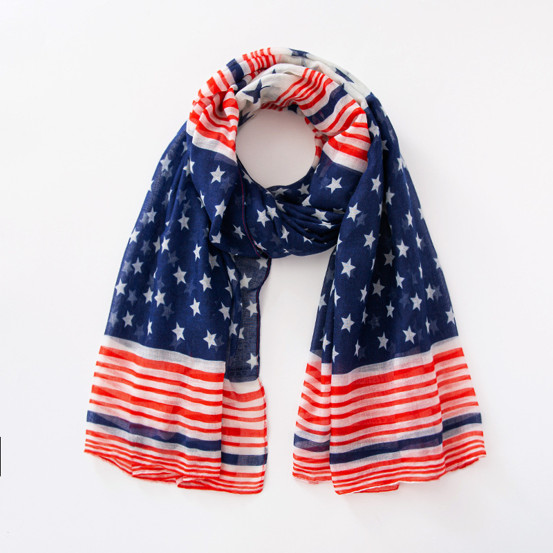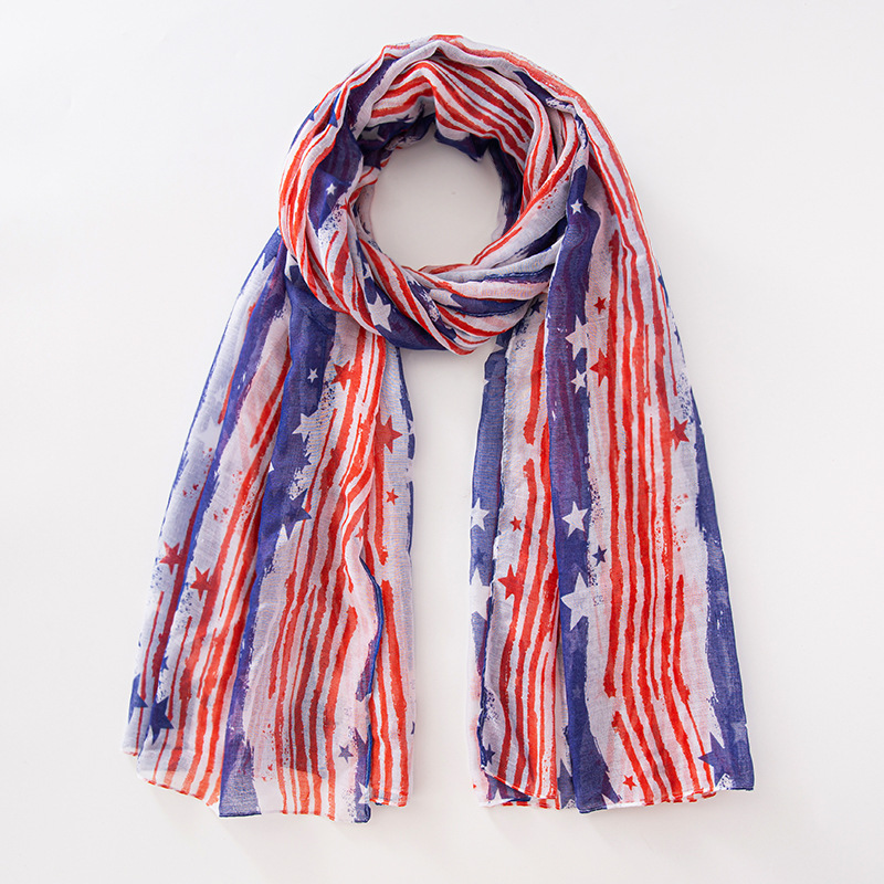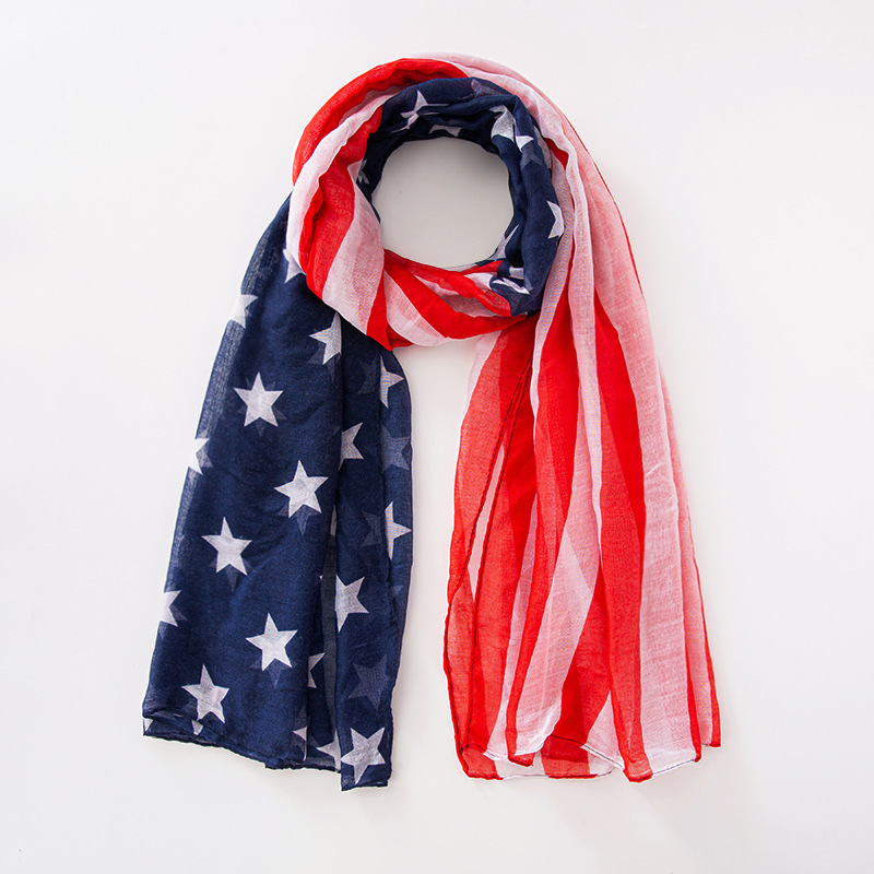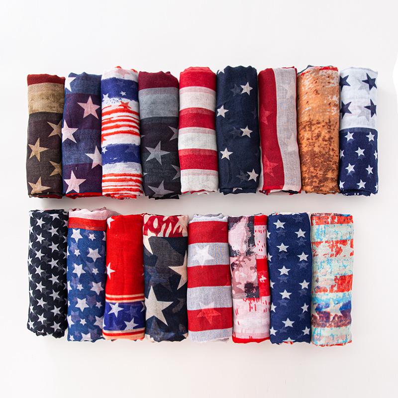 크로스 국경 복고풍 독립 기념일 스타 줄무늬 스카프 여성 포지셔닝 미국 국기 인쇄 발리 원사 스카프 도매스토어 가기
