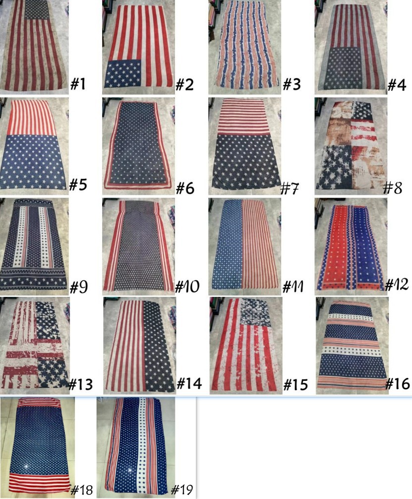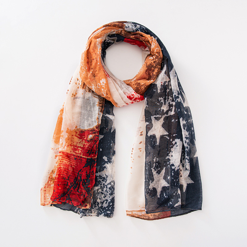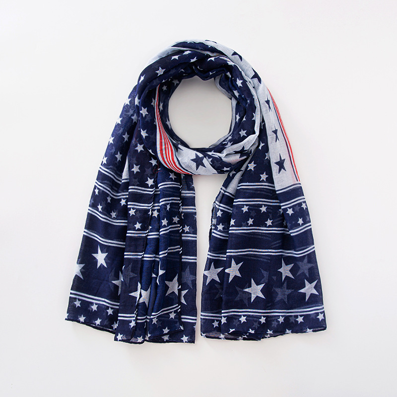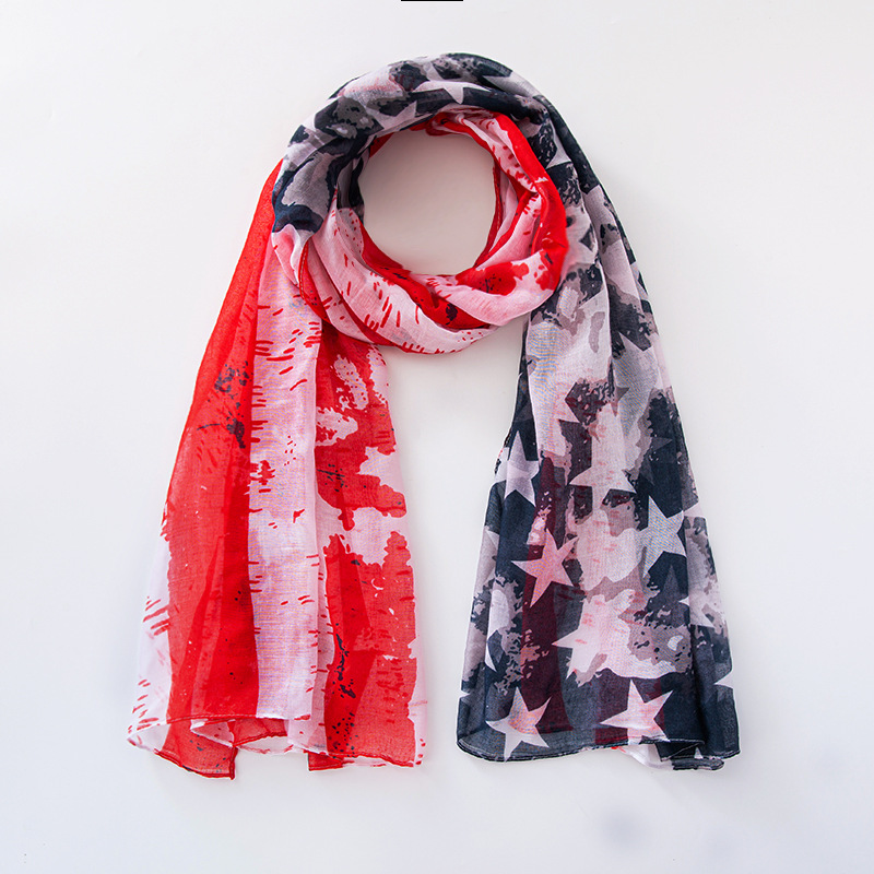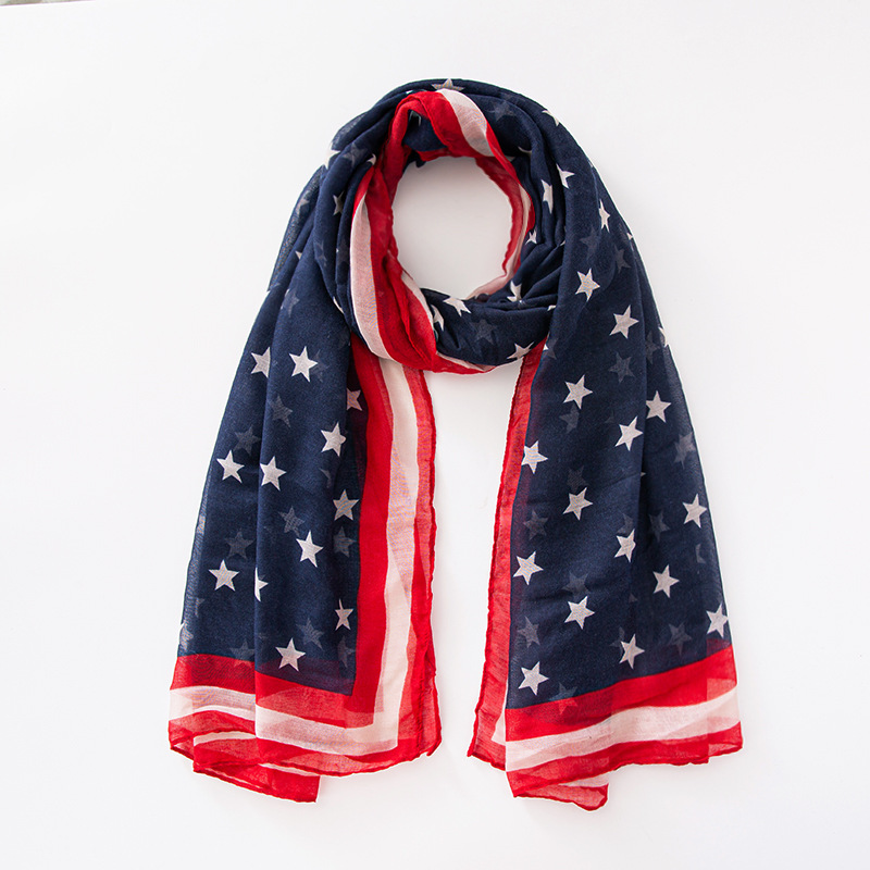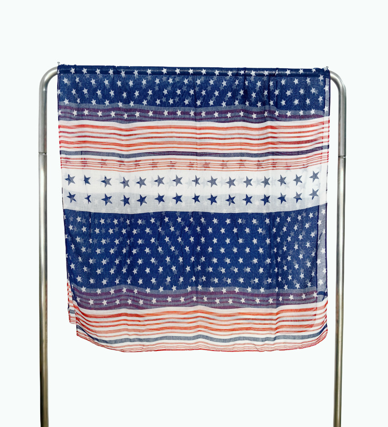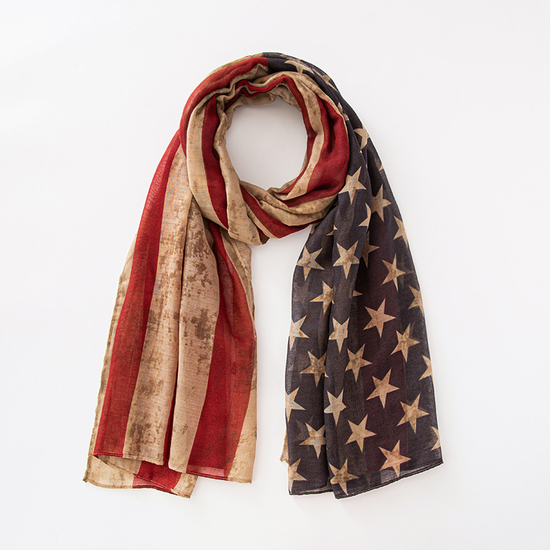 크로스 국경 복고풍 독립 기념일 스타 줄무늬 스카프 여성 포지셔닝 미국 국기 인쇄 발리 원사 스카프 도매스토어 가기