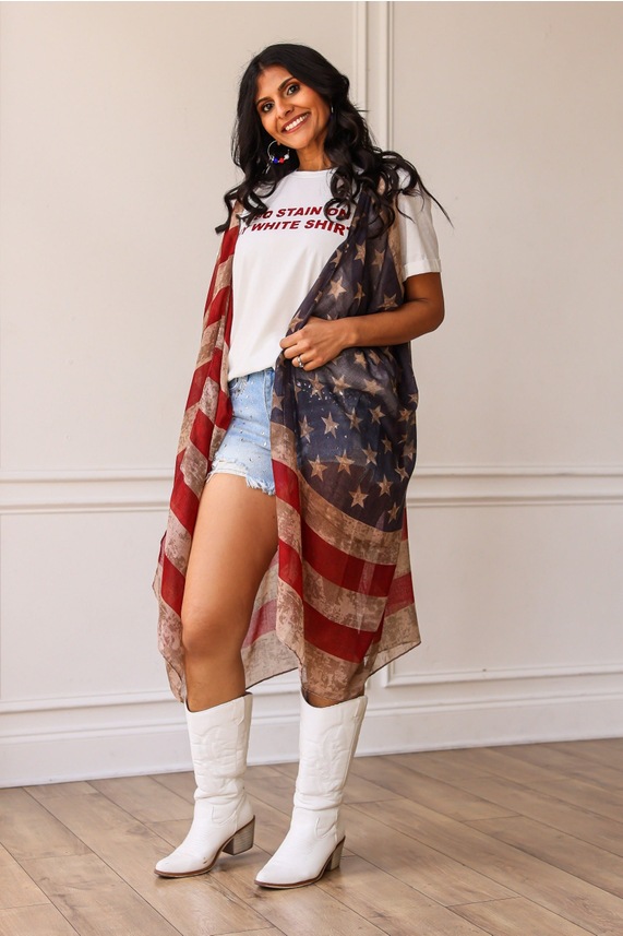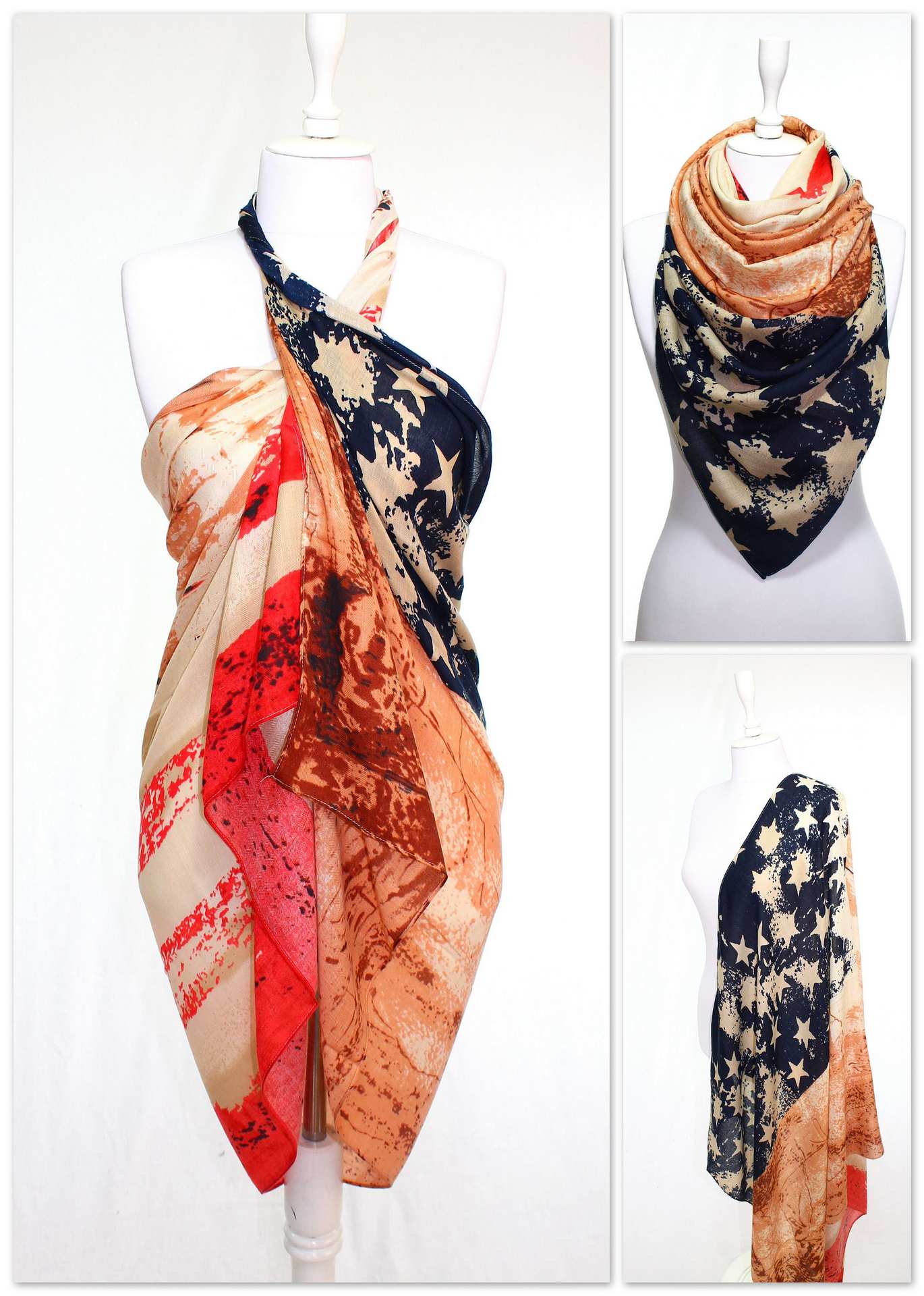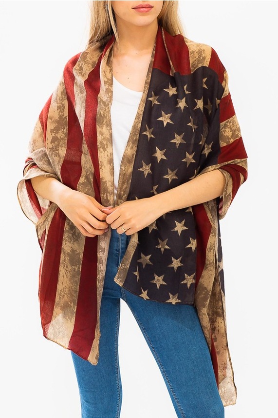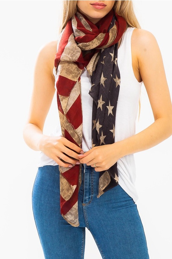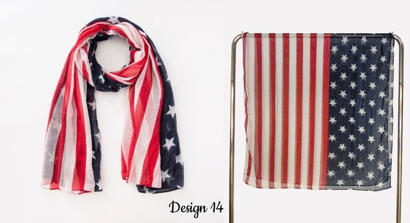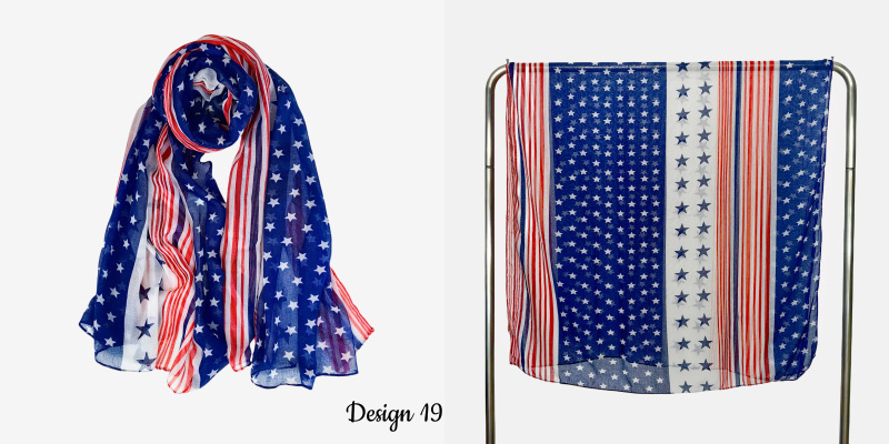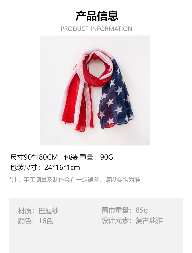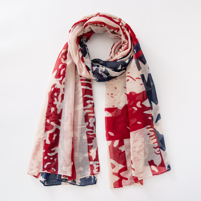 크로스 국경 복고풍 독립 기념일 스타 줄무늬 스카프 여성 포지셔닝 미국 국기 인쇄 발리 원사 스카프 도매스토어 가기