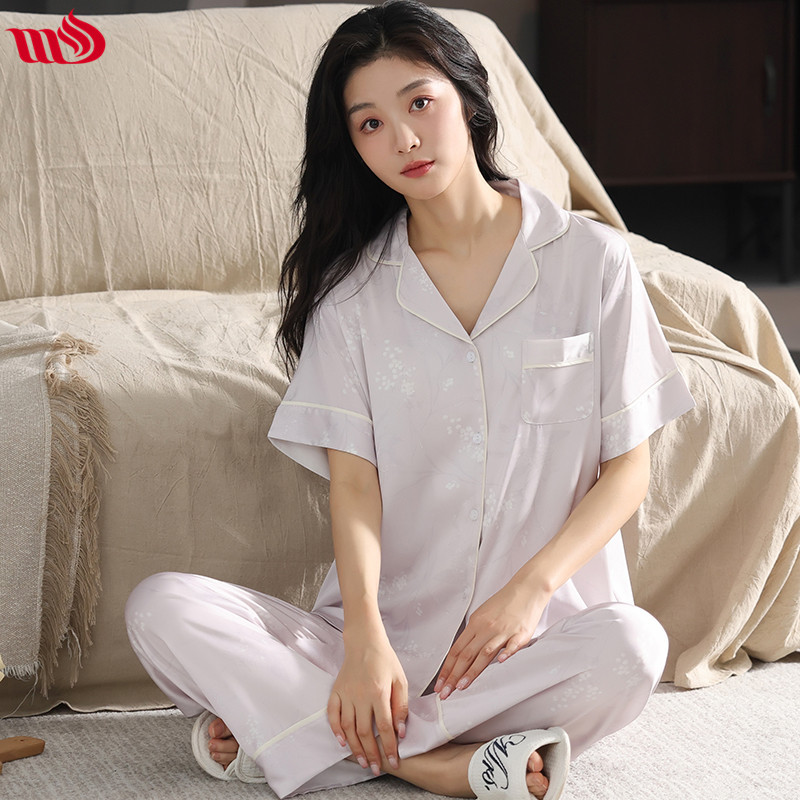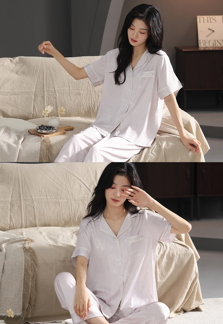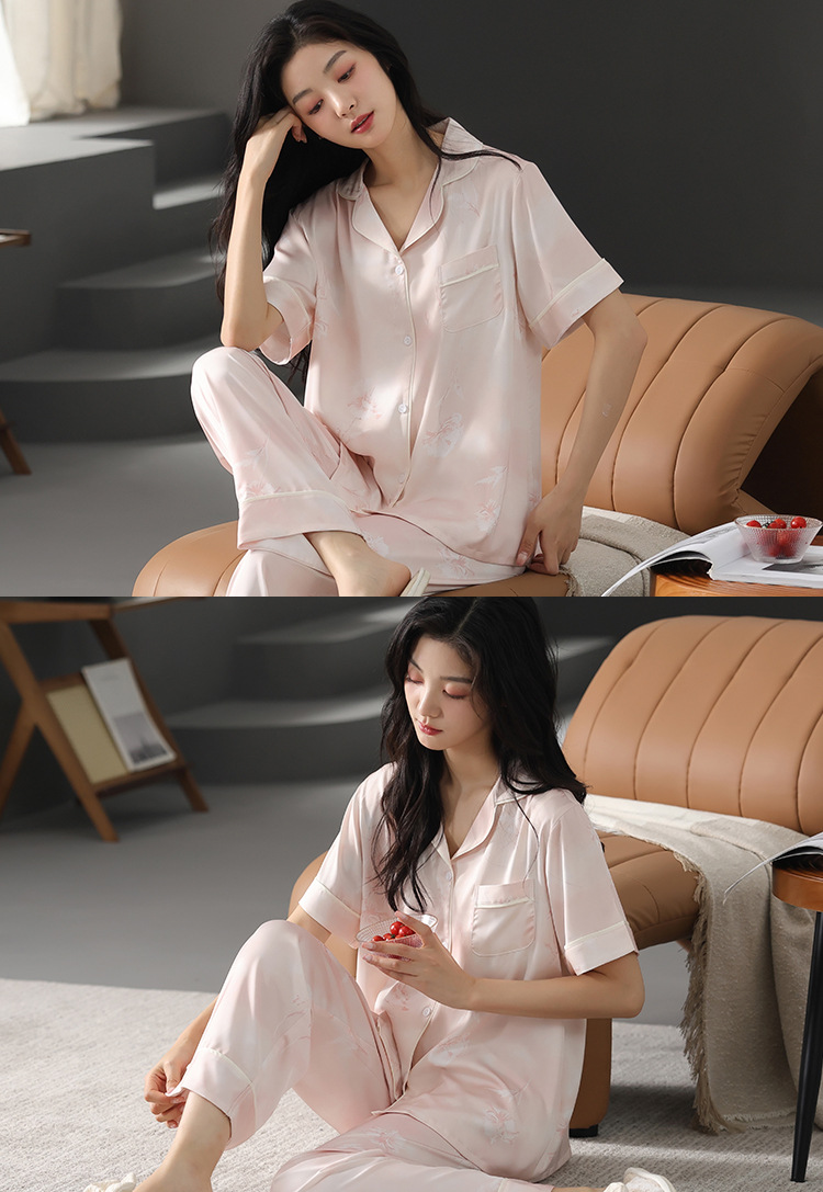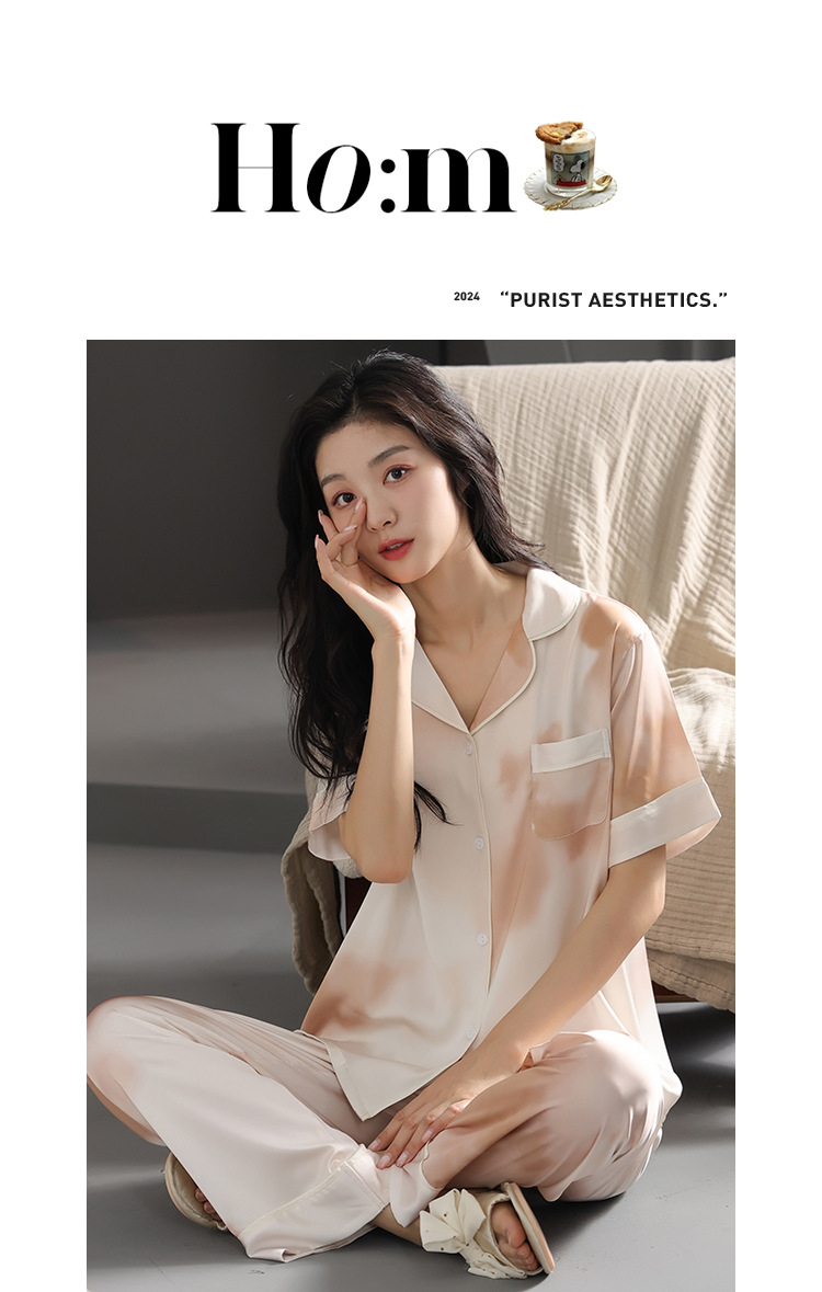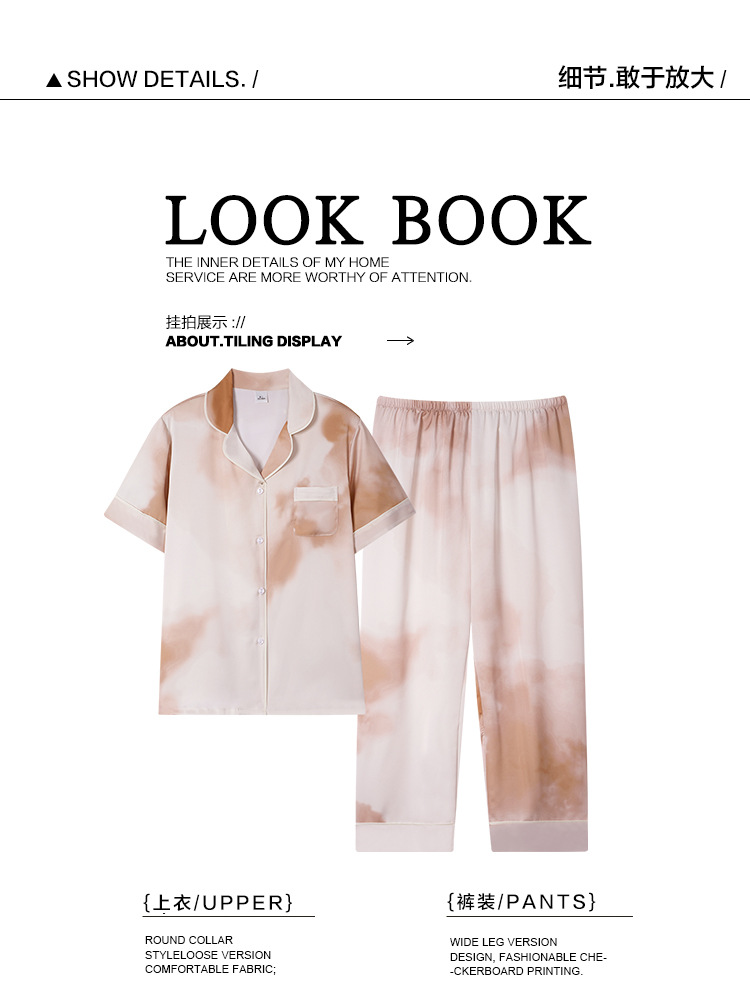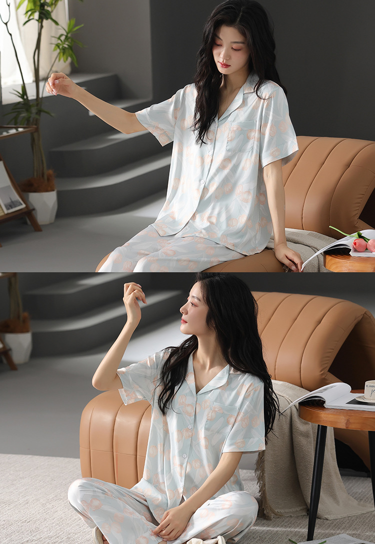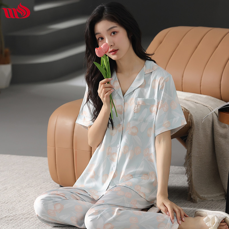 뮬롱 귀족 가족 파자마 여성 여름 아이스 실크 반팔 바지 얇은 여름 여성 시뮬레이션 실크 여름 홈 옷스토어 가기
