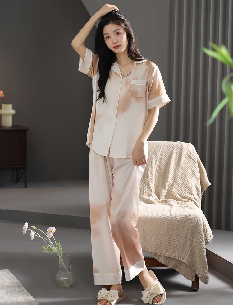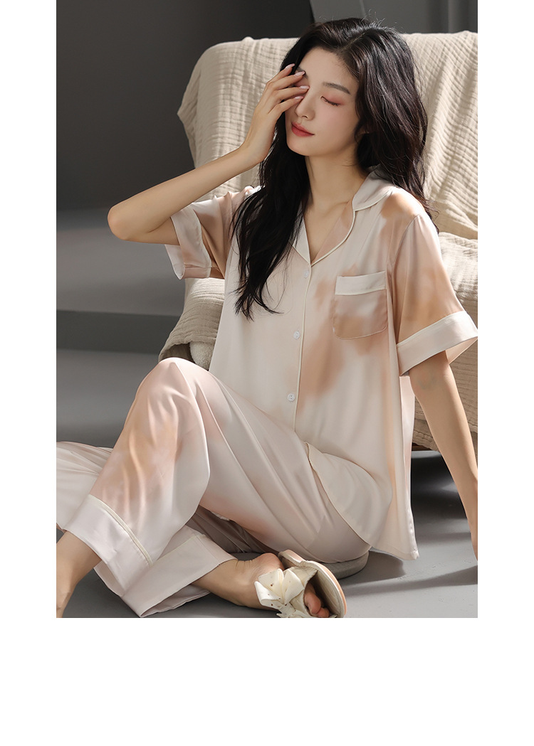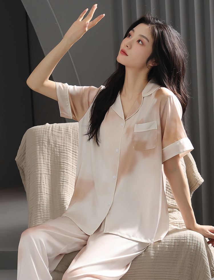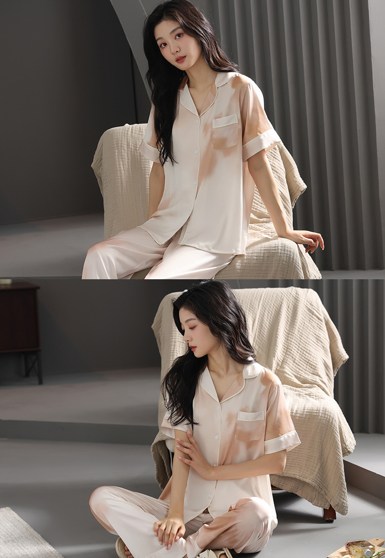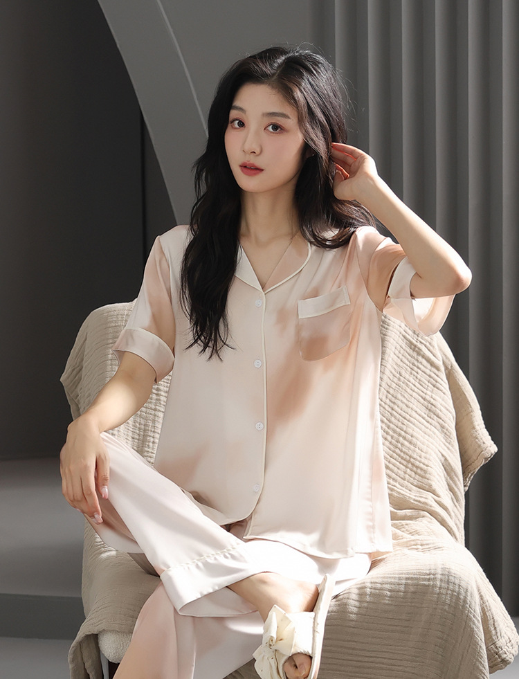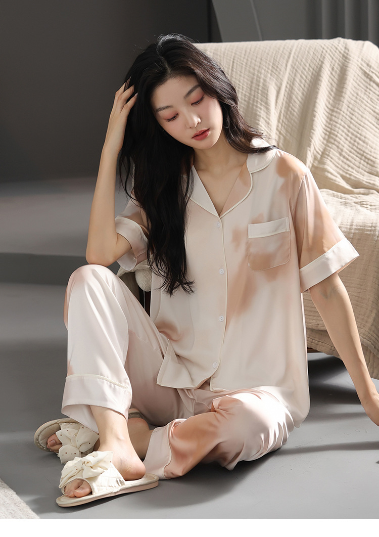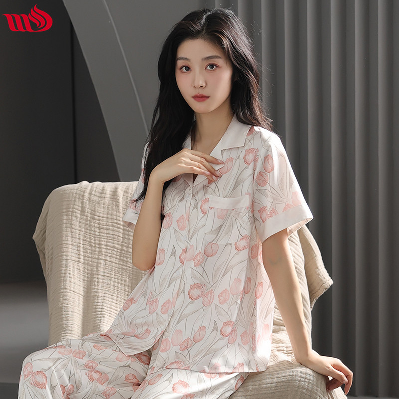 뮬롱 귀족 가족 파자마 여성 여름 아이스 실크 반팔 바지 얇은 여름 여성 시뮬레이션 실크 여름 홈 옷스토어 가기