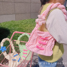 HD345A05日系多巴胺小清新奶油可爱格子软妹少女单肩包小众腋下包