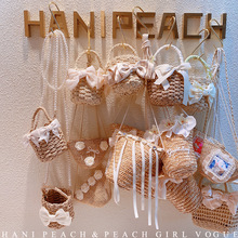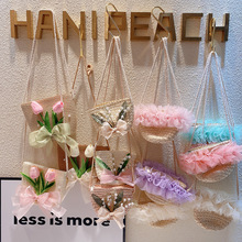 HD3451双蝴蝶结甜美可爱编织镂空草编包包手提包单肩斜挎包ins风