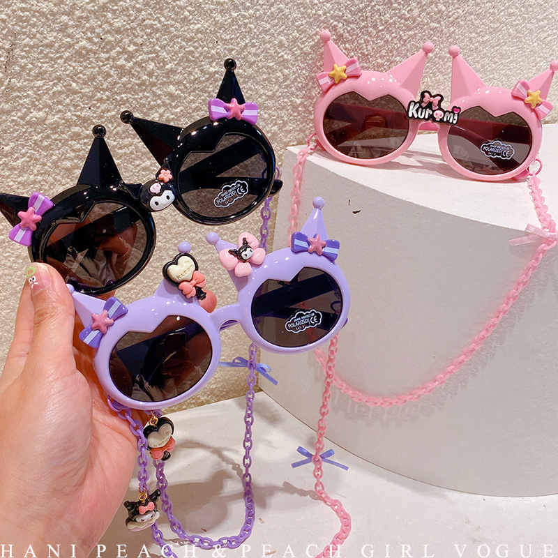 HD4156 작은 악마 만화 귀여운 어린이 선글라스 선글라스 체인 2 피스 니치 햇빛 여름 선글라스