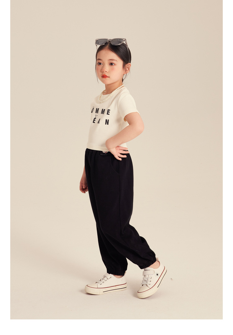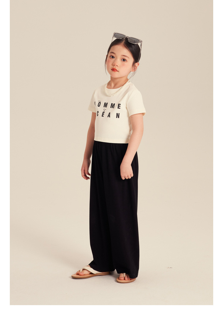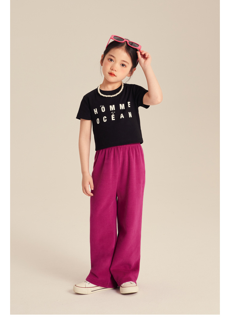 Amybaby Girls 'T 셔츠 2024 새로운 어린이 여름 간단한 패션 캐주얼 올 매치 라운드 넥 쇼트 슬리브 탑스토어 가기