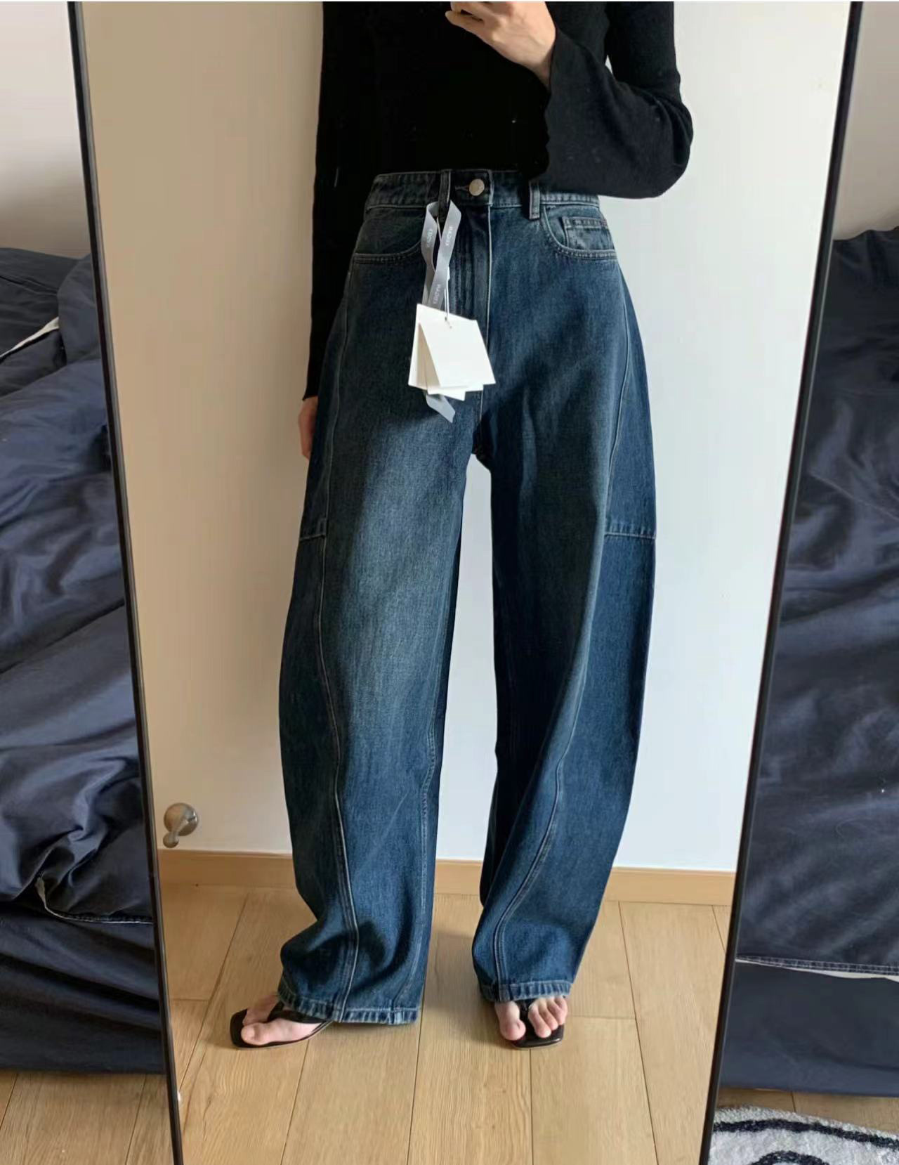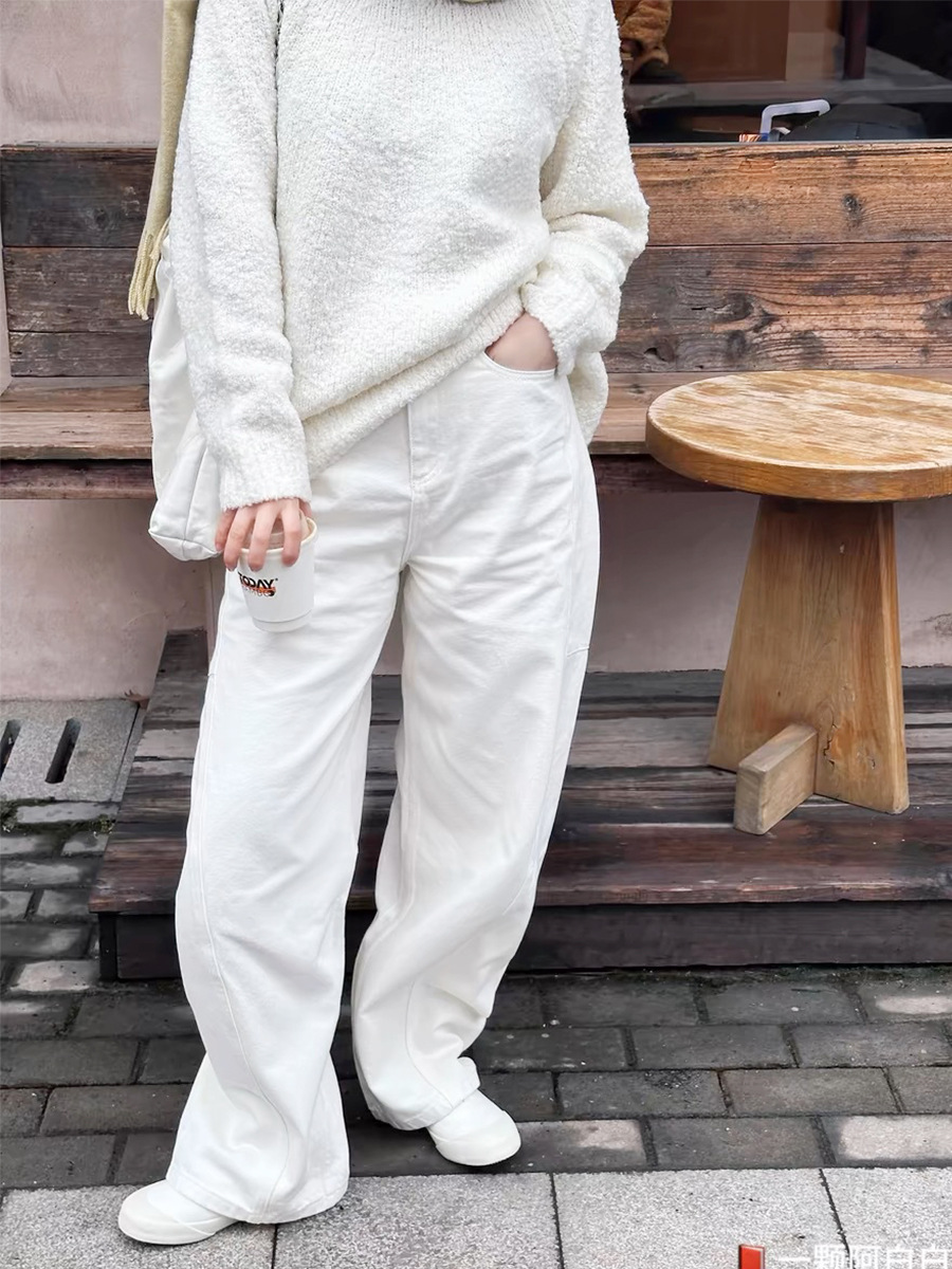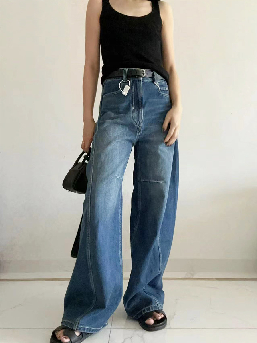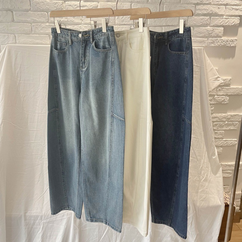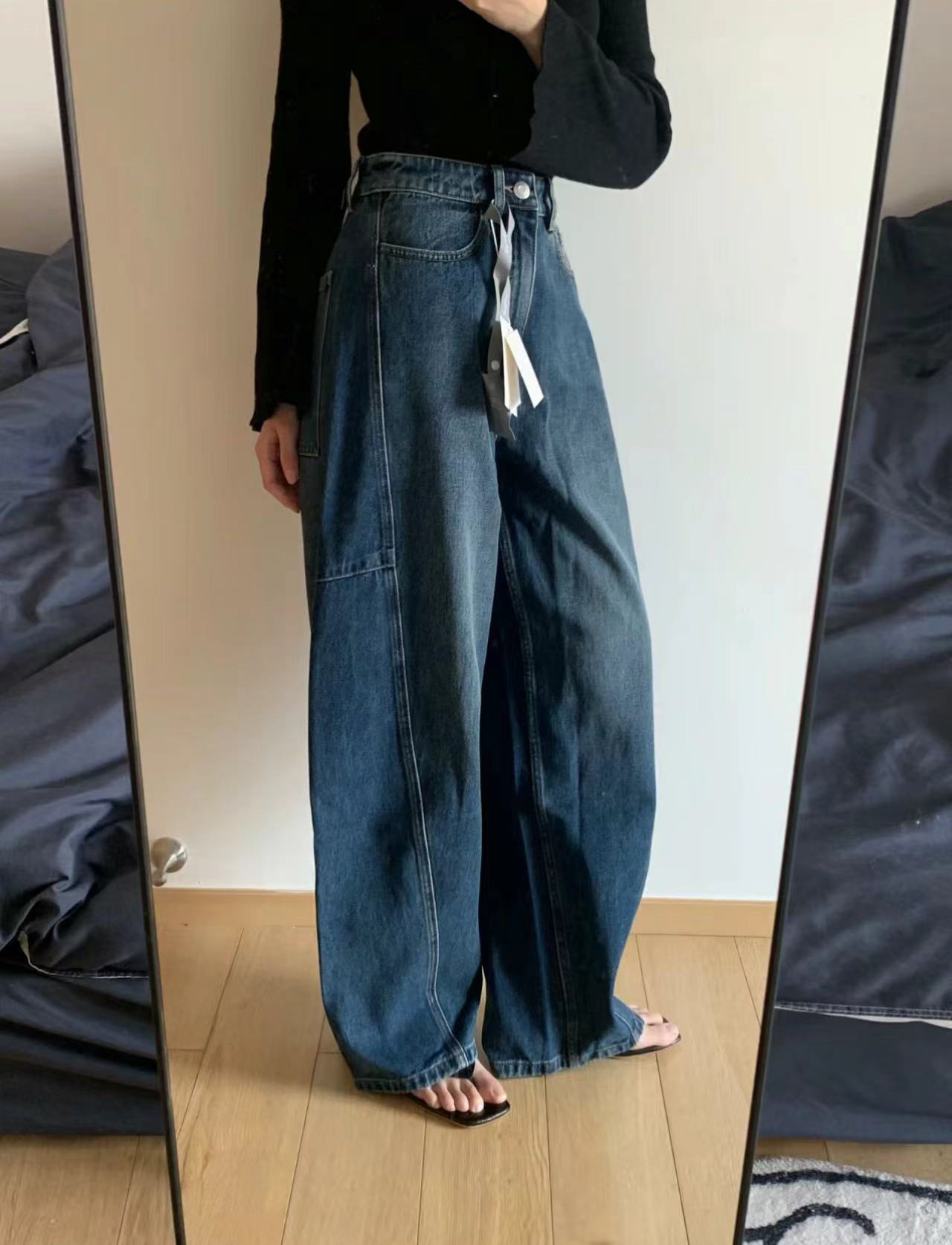 오픈 홈 유행 해체 분할 선 아크 코쿤 청바지 여성 25 봄 여름 느슨한 편안한 스키테 바나나 바지스토어 가기