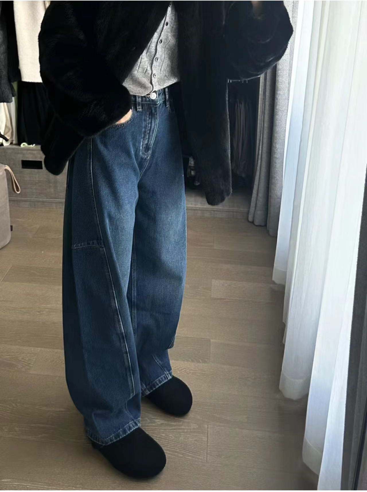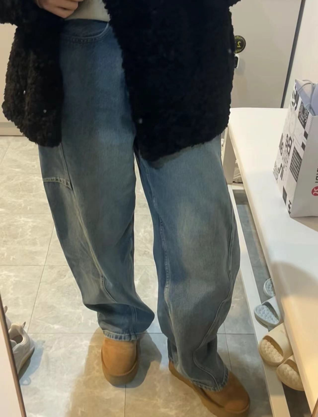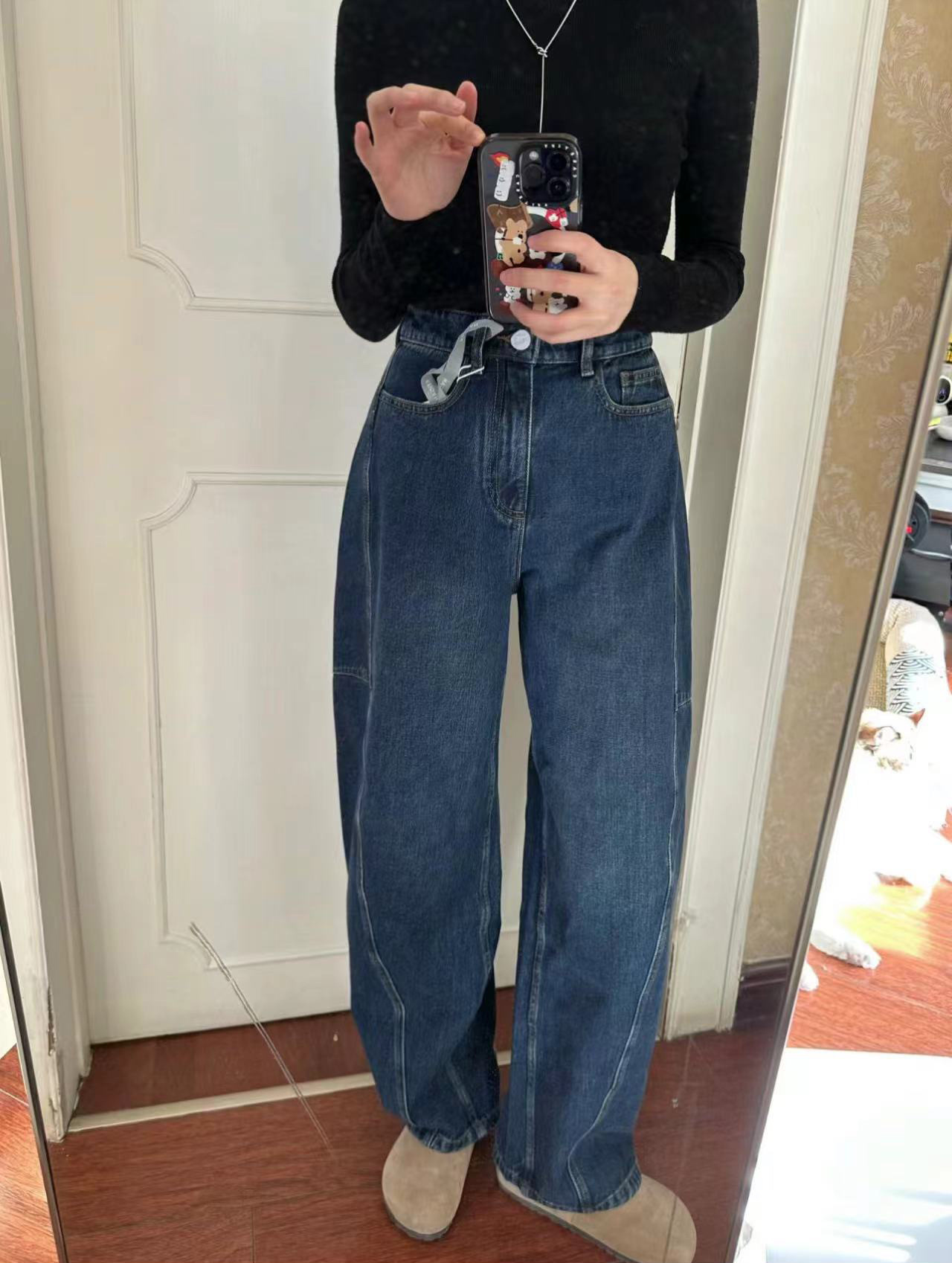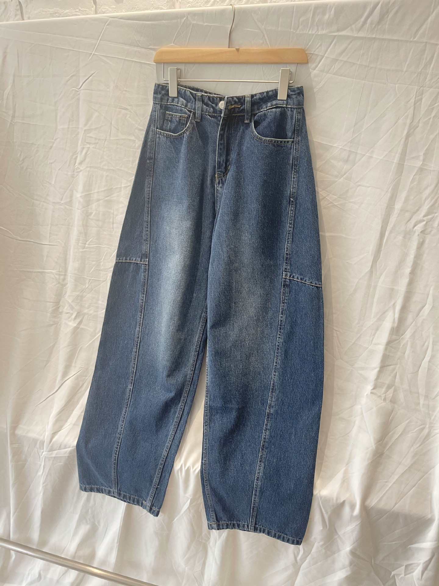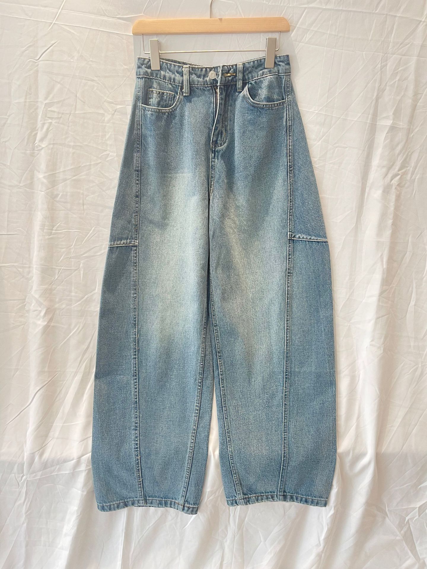 오픈 홈 유행 해체 분할 선 아크 코쿤 청바지 여성 25 봄 여름 느슨한 편안한 스키테 바나나 바지스토어 가기