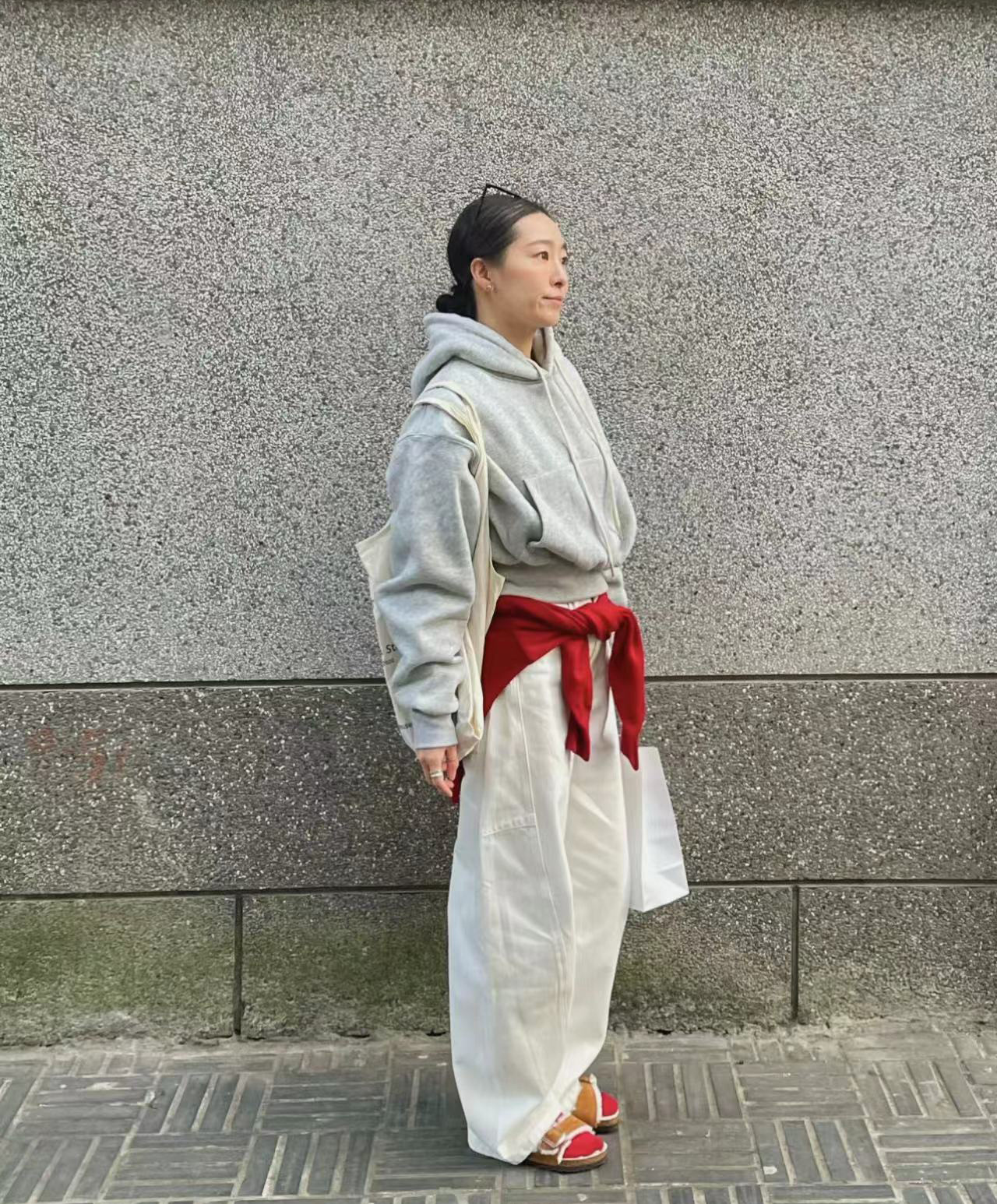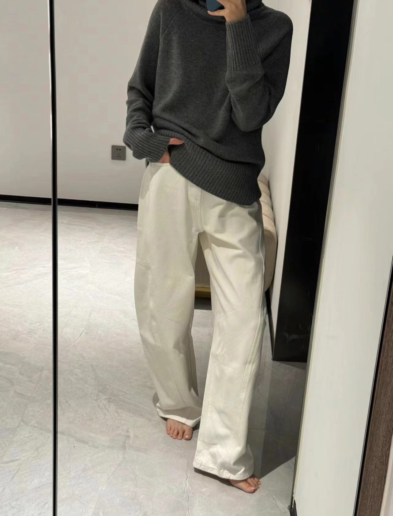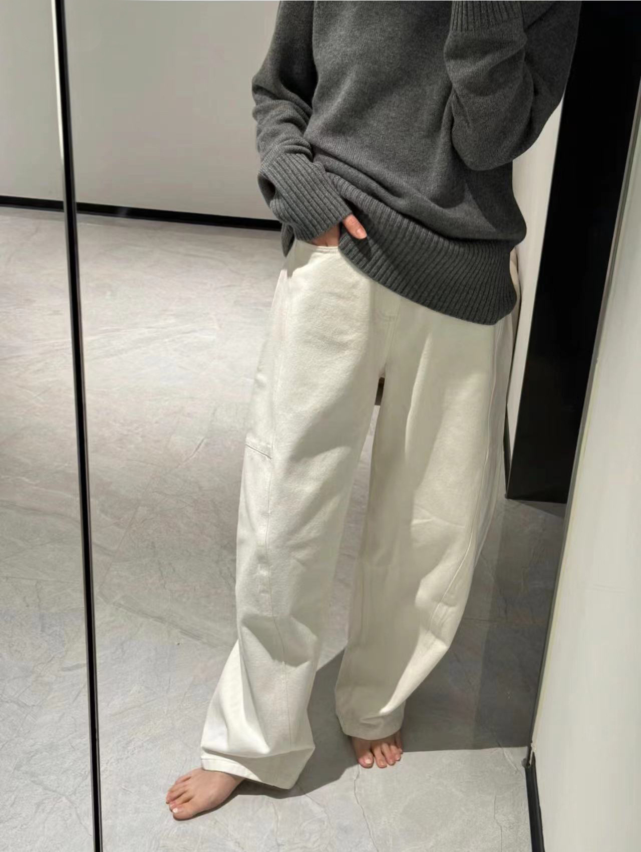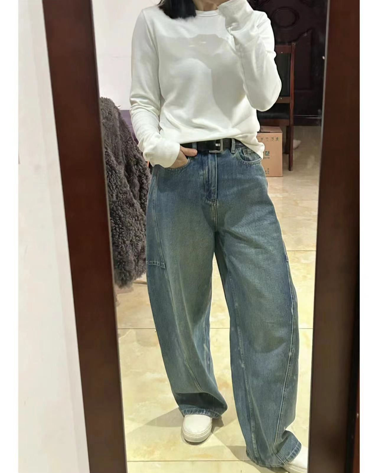 오픈 홈 유행 해체 분할 선 아크 코쿤 청바지 여성 25 봄 여름 느슨한 편안한 스키테 바나나 바지스토어 가기