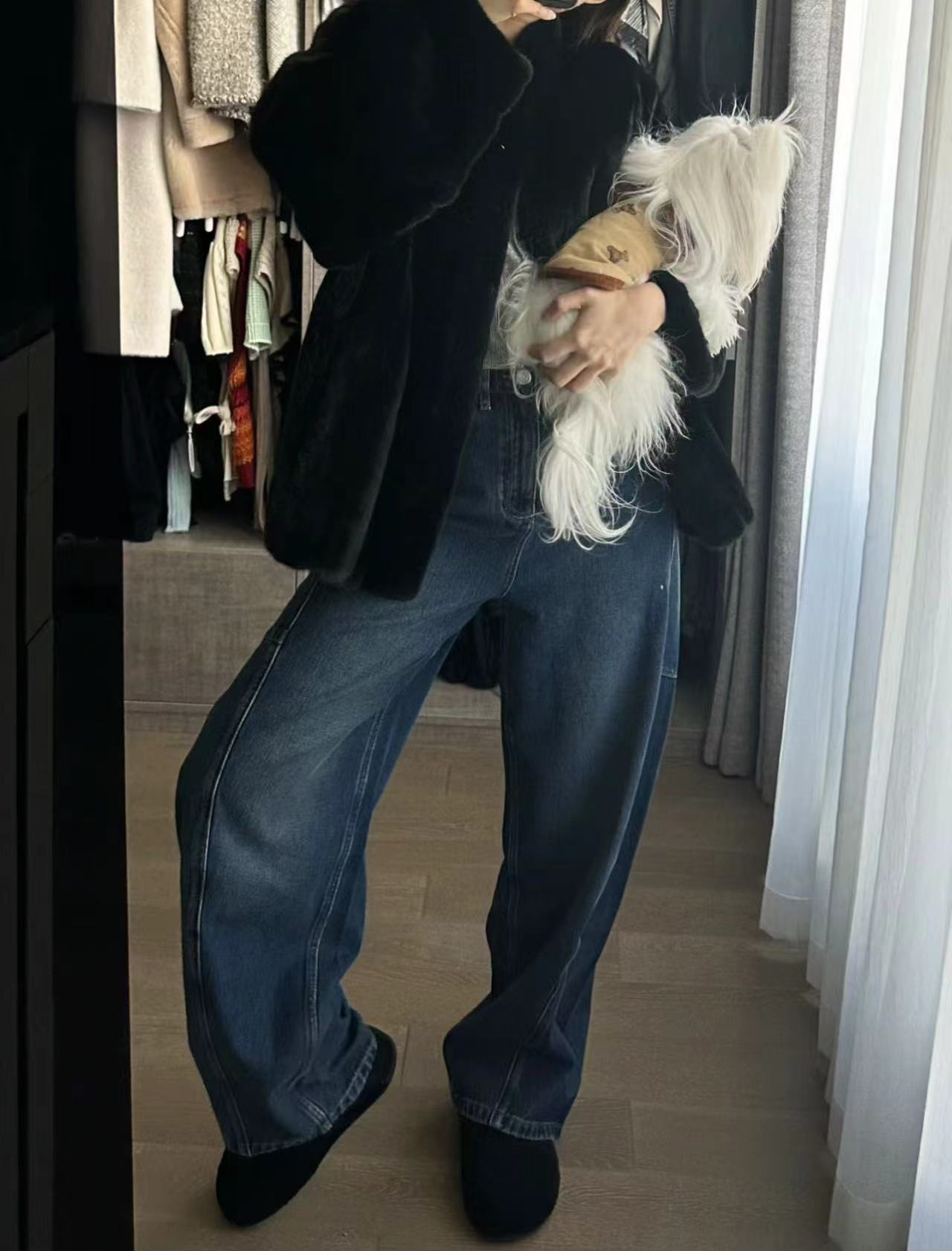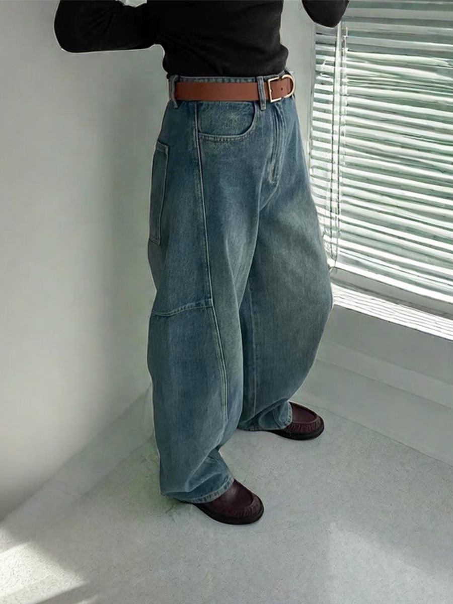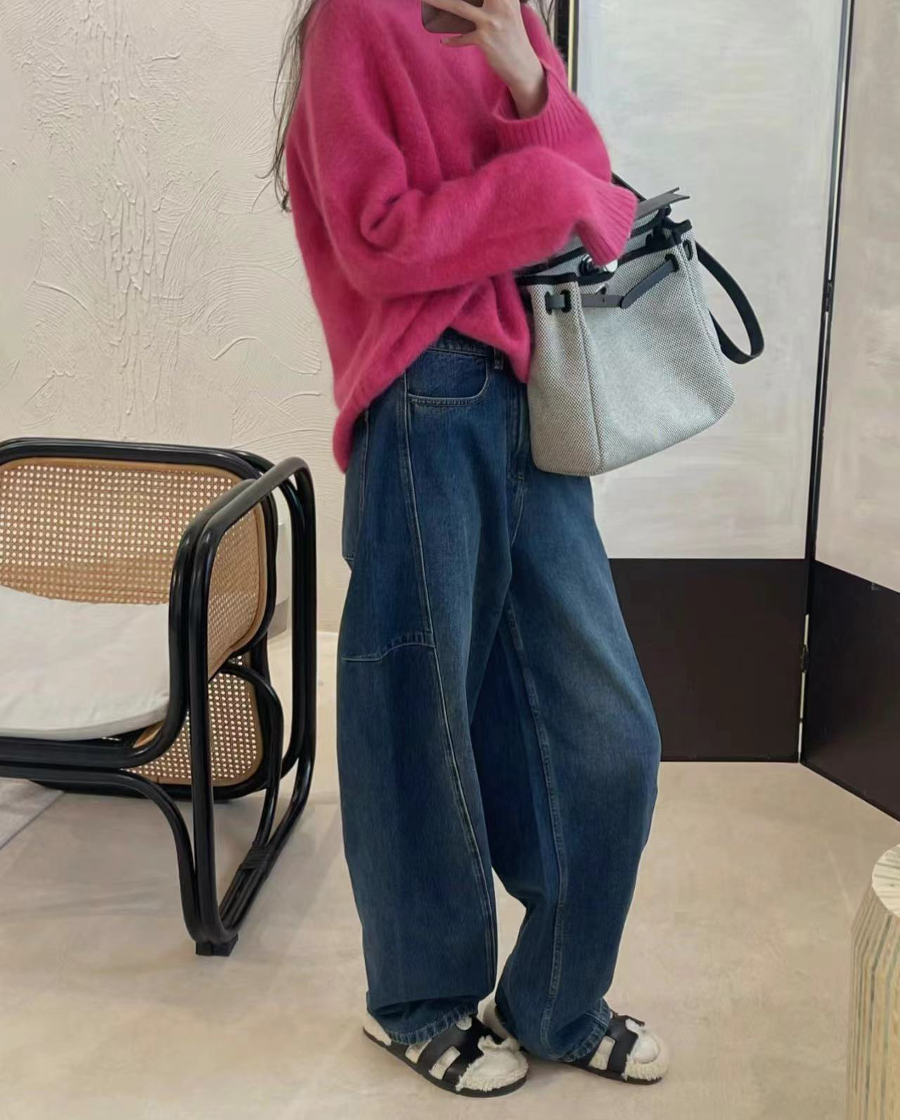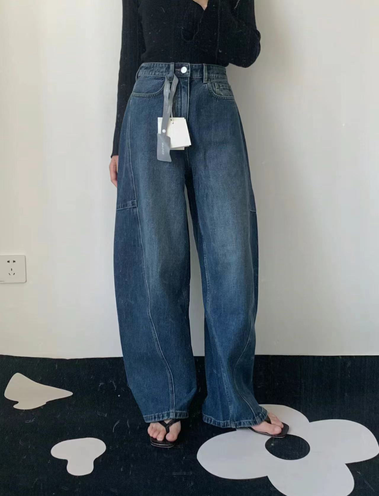 오픈 홈 유행 해체 분할 선 아크 코쿤 청바지 여성 25 봄 여름 느슨한 편안한 스키테 바나나 바지