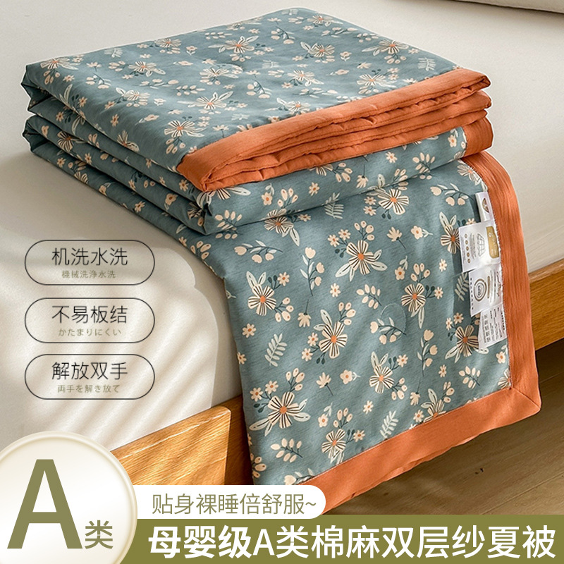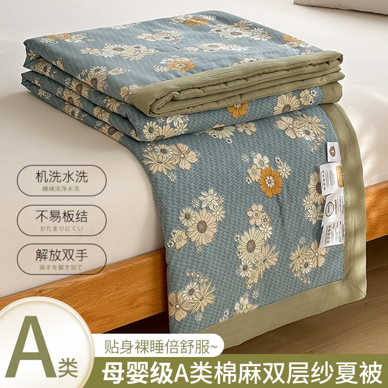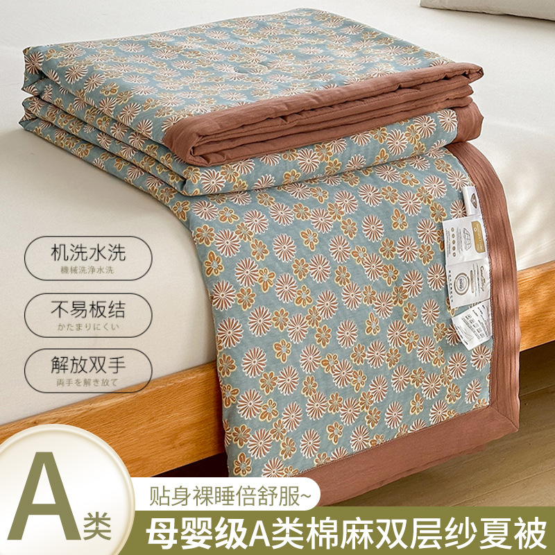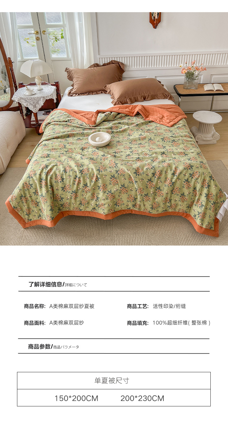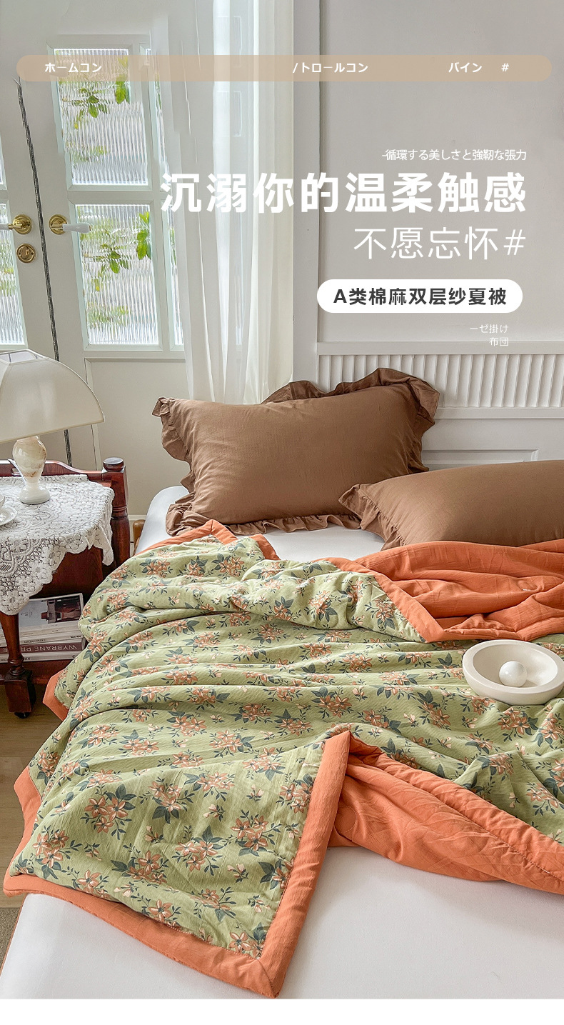 일본식 면 및 린넨 더블 레이어 거즈 여름 이불 여름 시원한 이불 싱글 더블 기계 세탁 가능한 에어컨 이불 여름 얇은 이불 도매스토어 가기